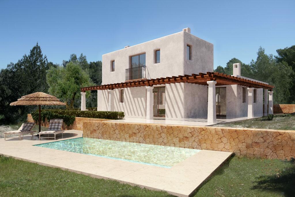Proyecto con Licencia San Agustin hat kürzlich die Baugenehmigung für ein rustikales Einfamilienhaus im mediterranen Stil mit privatem Swimmingpool erhalten. Dieses 15.153 m2 große Grundstück befindet sich in einer ruhigen Wohngegend im Westen Ibizas, nur wenige Gehminuten vom Strand und den Restaurants entfernt.