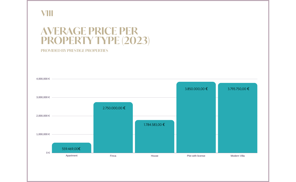Durchschnittliche Verkaufspreise der einzelnen Immobilientypen auf Ibiza