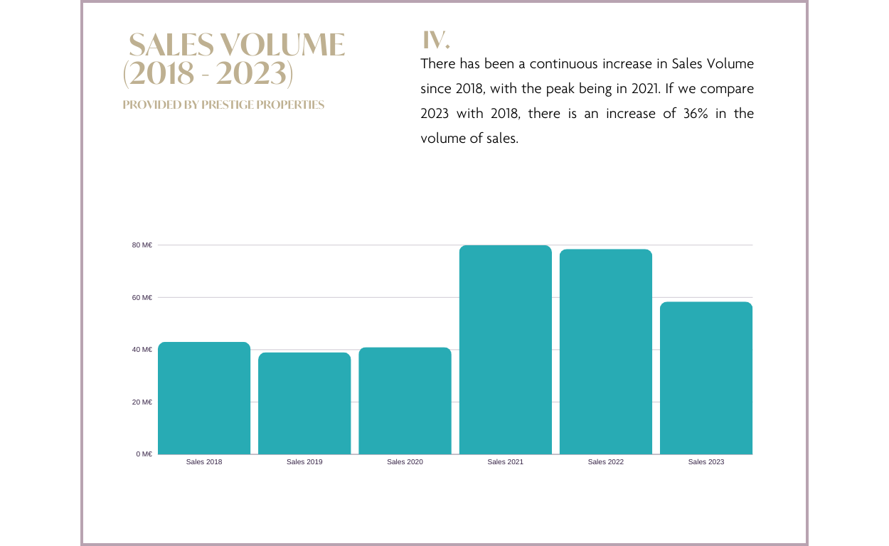 Im Gegensatz zu den Vorjahren, in denen ein Rückgang des Immobilienangebots zu verzeichnen war, hat Prestige Properties im Jahr 2023 eine deutliche Verschiebung der Angebotsdynamik festgestellt. Die Zahl der neuen Immobilien, die bei Prestige Properties gelistet wurden, stieg im Vergleich zu 2022 um 38 %. Es wird erwartet, dass sich dieser Trend bis 2024 fortsetzen wird, was darauf hindeutet, dass die Verkäufer zunehmend versuchen, die günstigen Marktbedingungen zu nutzen. Angesichts der zunehmenden finanziellen Unsicherheit und des leichten Rückgangs der Verkaufspreise werden Verkäufer ermutigt, den Verkauf ihrer Immobilie jetzt in Erwägung zu ziehen, um von dem derzeit hohen Preisniveau zu profitieren. Gleichzeitig bietet das wachsende Angebot an Immobilien für Kaufinteressenten eine größere Auswahl, was den Immobilienmarkt auf Ibiza noch attraktiver macht.