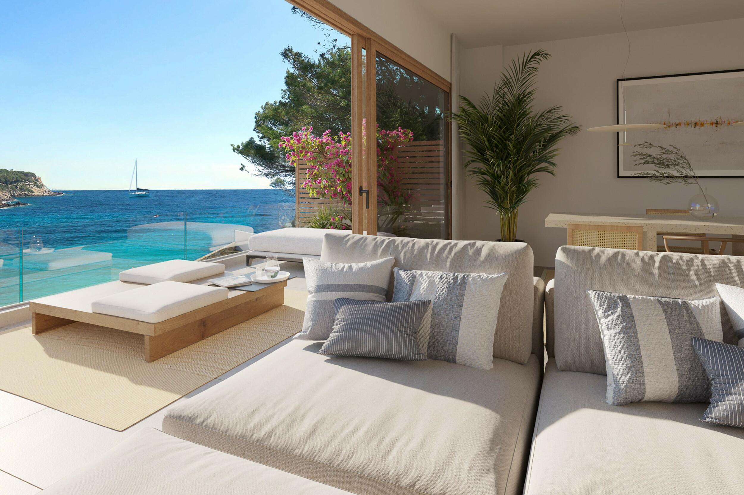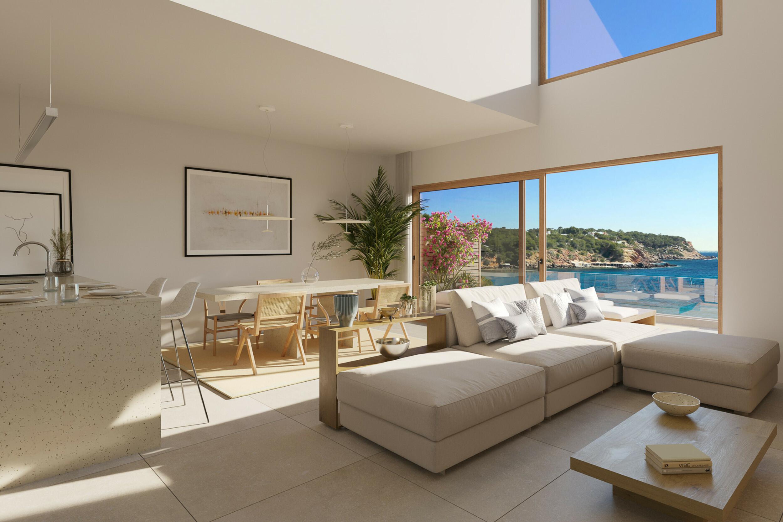 Durch die Süd-Ost-Ausrichtung zum Meer erhalten die Villen ganzjährig viel Licht und genießen einen einzigartigen Blick auf die Bucht von Santa Eulalia.