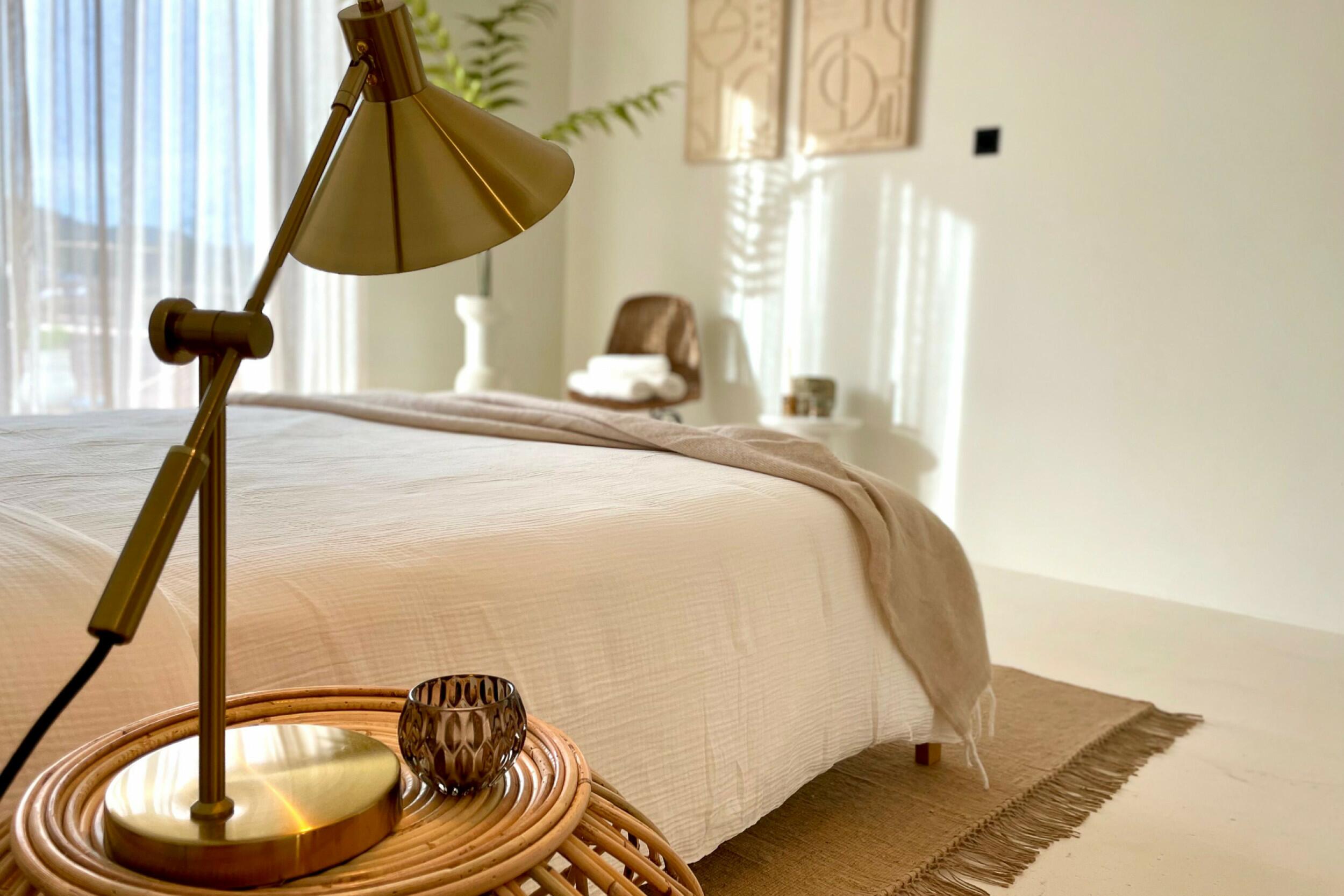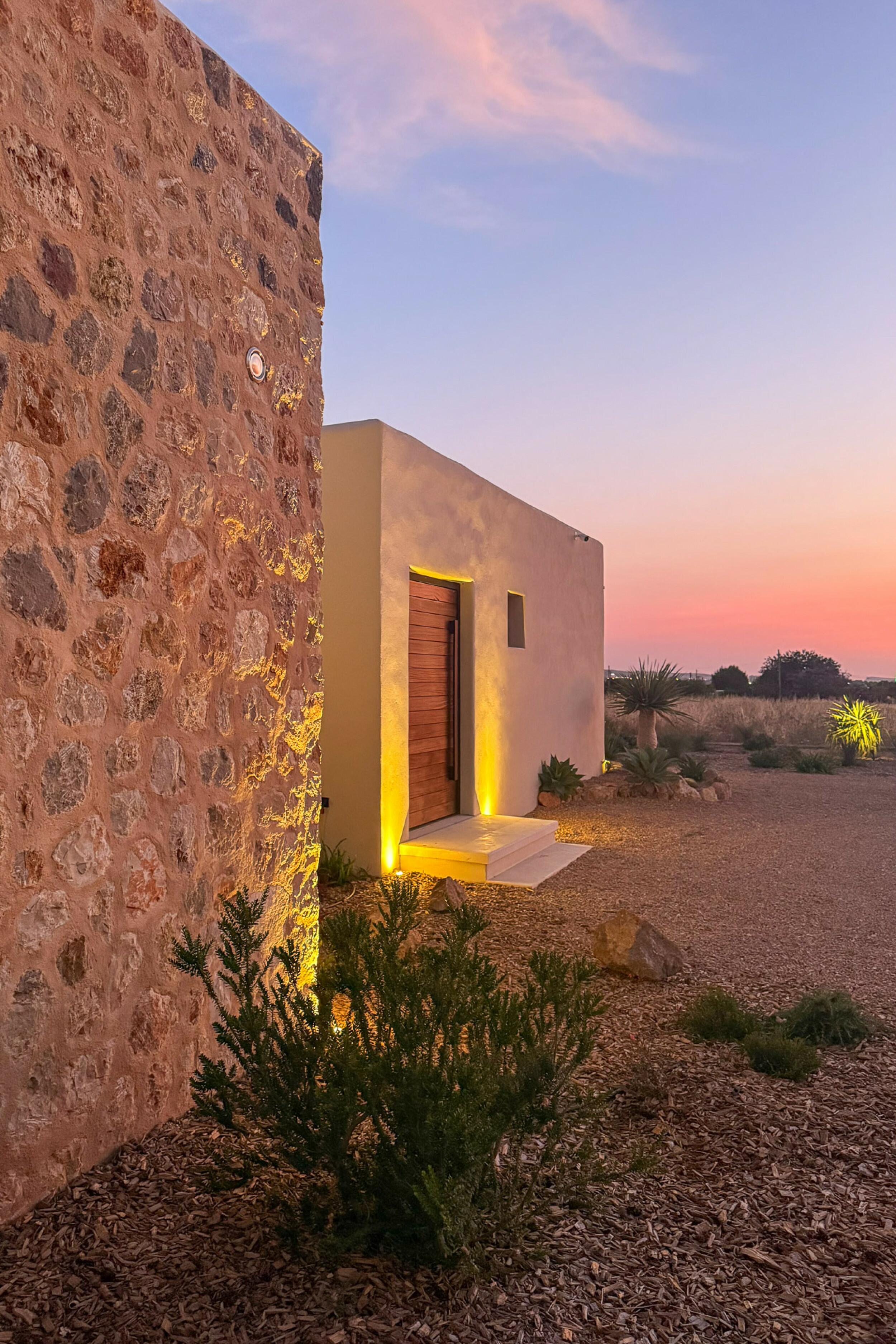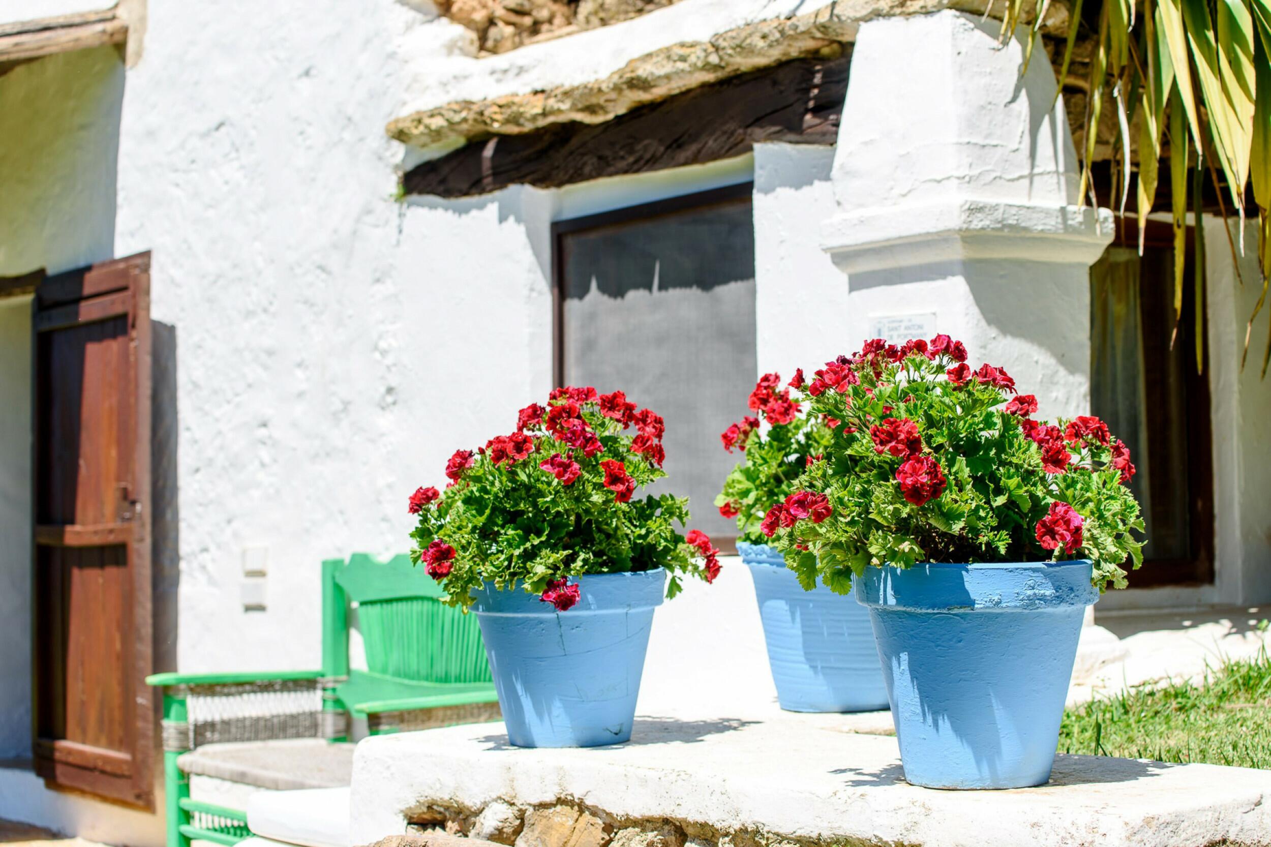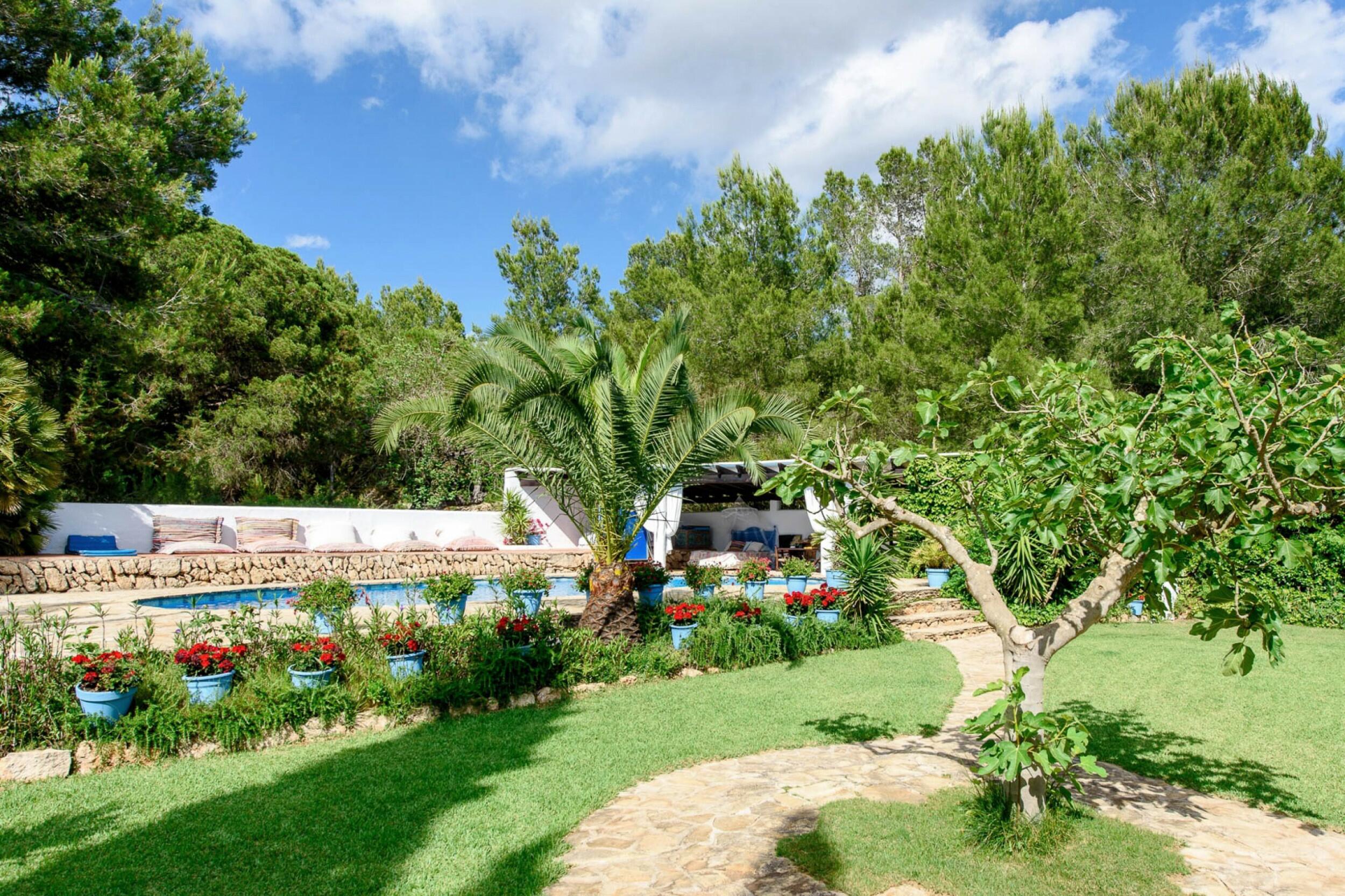 Der Außenbereich dieser einzigartigen Finca ist geprägt von der schlichten Schönheit der natürlichen Landschaft Ibizas und dem grünen Daumen des Eigentümers. Das Anwesen ist umgeben von über 1.000 Jahre alten Olivenbäumen, Mandelbäumen, zahlreichen Sabina-Bäumen, Orangen- und Zitronenbäumen und vielen mehr. Ein beheizter Salzwasser-Pool von 4 x 14 Metern ist ein herausragendes Merkmal der Immobilie, komplett mit einer elektrischen Abdeckung, die die Badesaison bis in den Herbst hinein verlängert. Der Rosengarten und die tropische Landschaftsgestaltung rund um den Poolbereich bieten ein visuell beeindruckendes und erdendes Erlebnis.