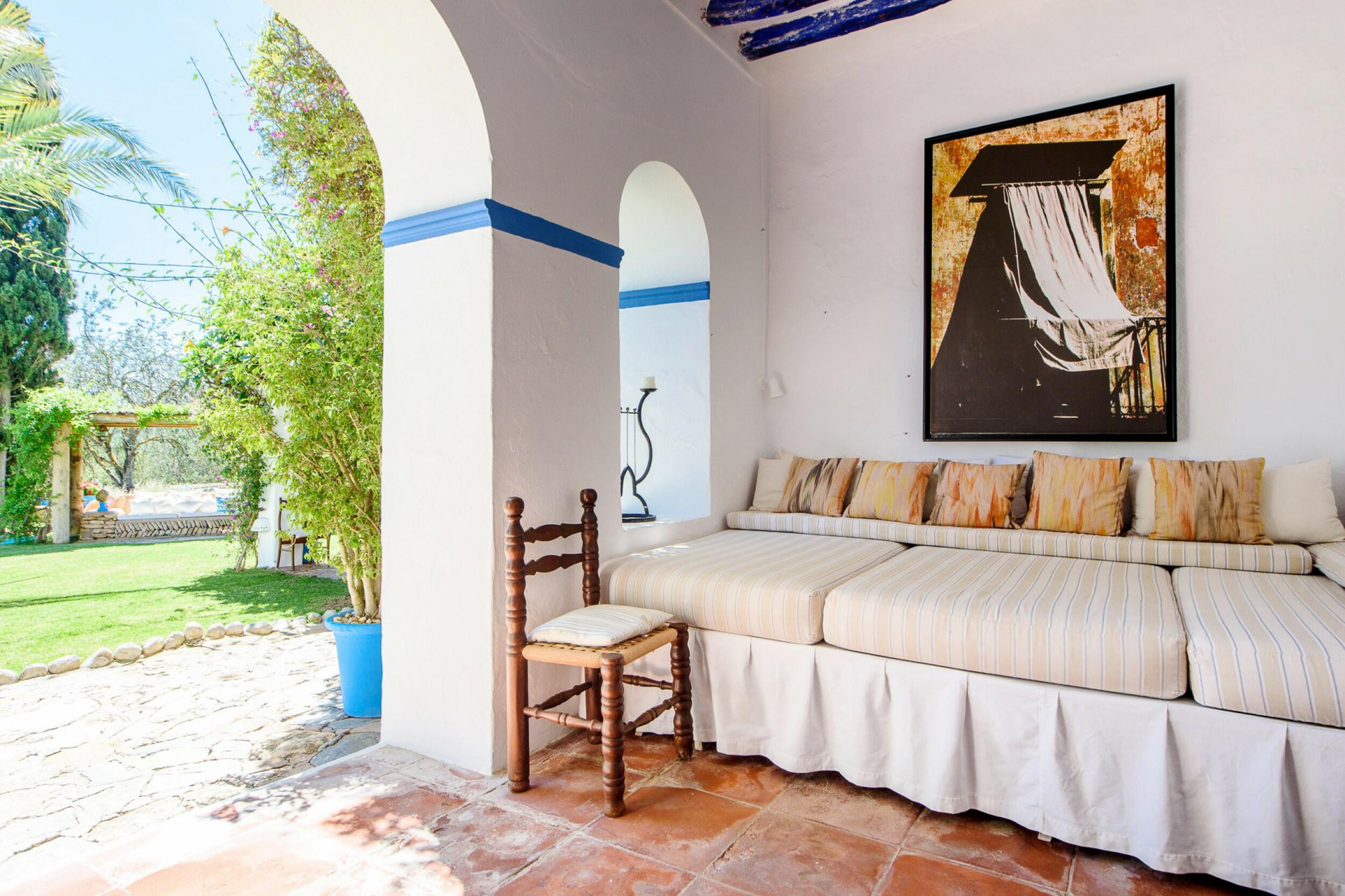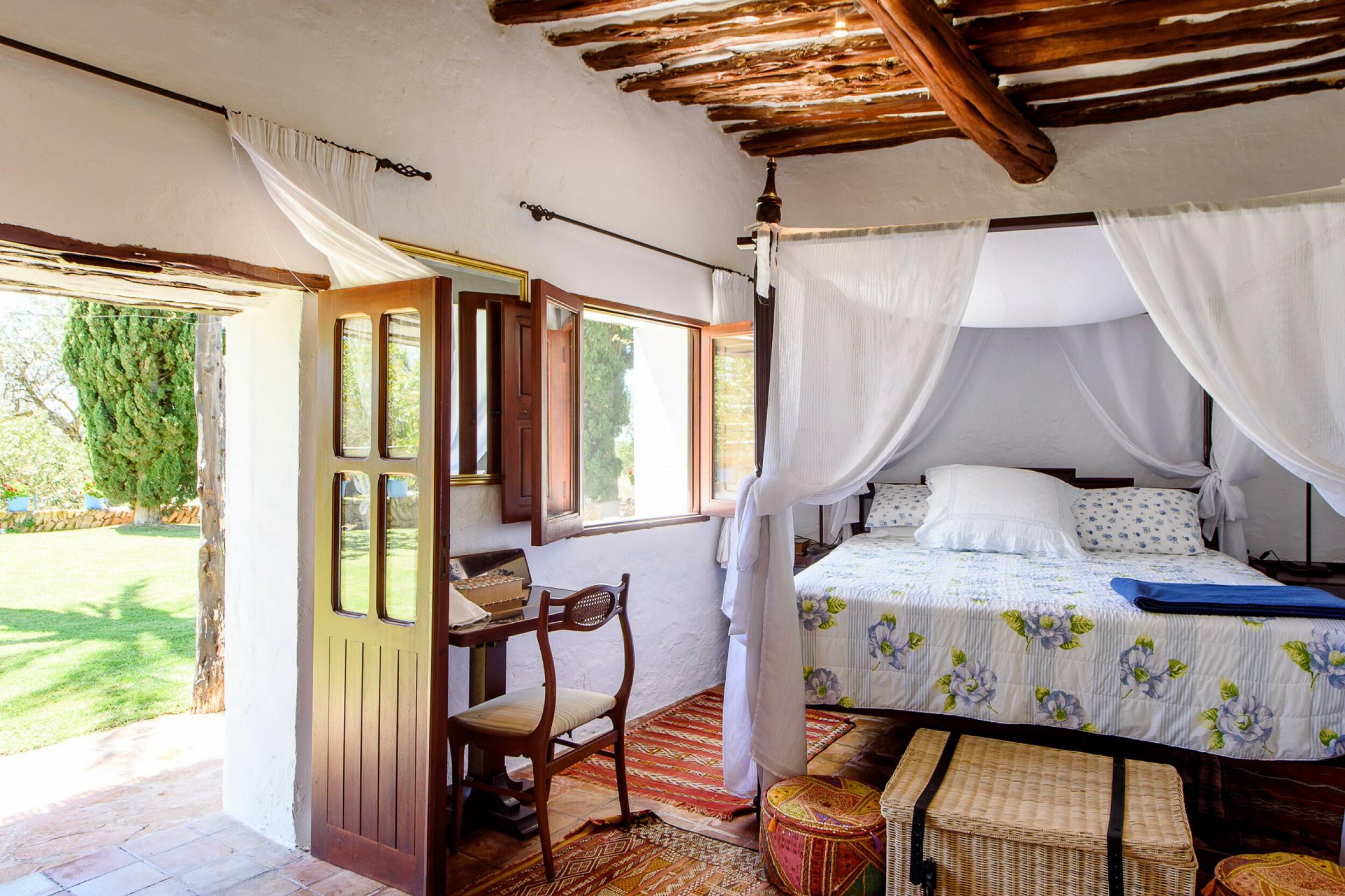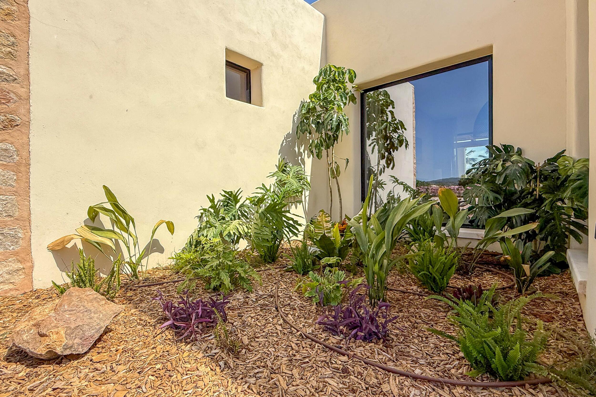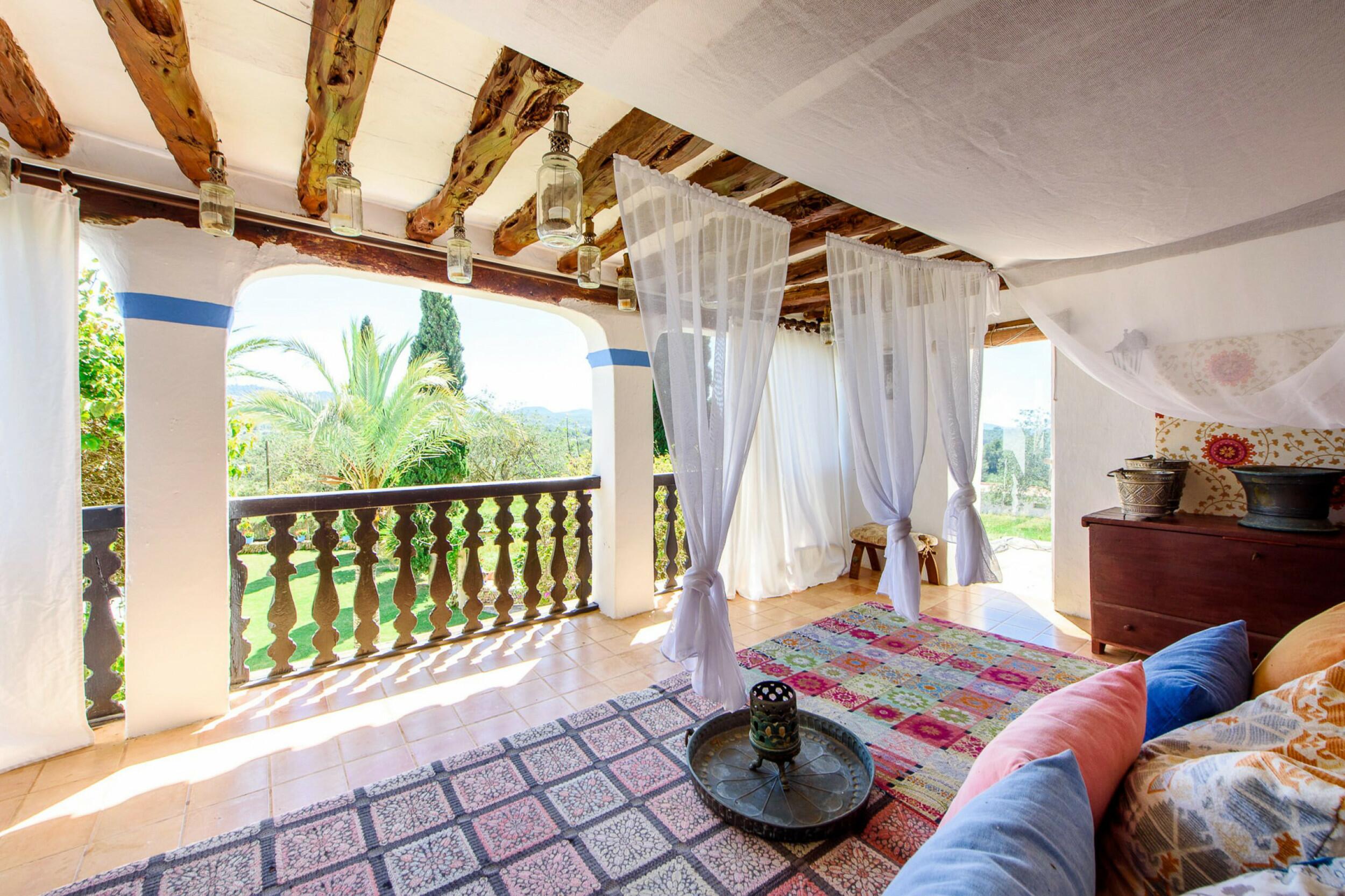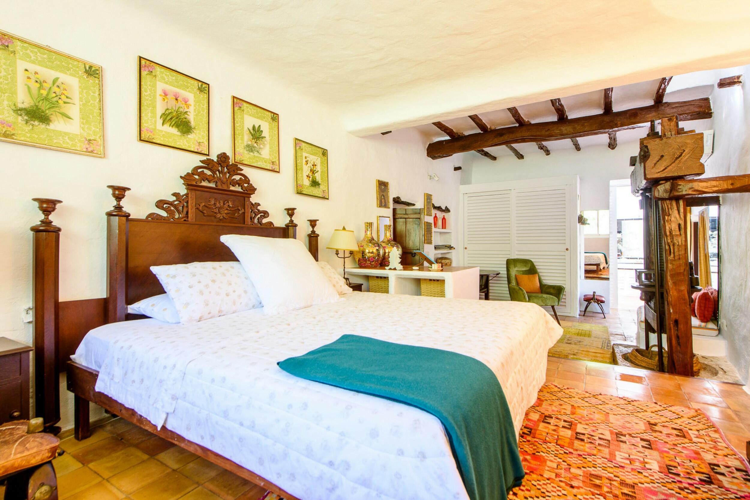 Das Haus ist in zwei Teile untergliedert. Der alte Fincateil hat hohe Decken und alte Steinmauern und verfügt über ein Esszimmer, eine voll ausgestattete Küche und das Hauptschlafzimmer mit begehbarem Kleiderschrank (oder Babyzimmer). Über ein paar Stufen gelangt man in ein Badezimmer mit großer Badewanne und separater Toilette. Im Esszimmer befindet sich ein schwedischer Holzofen. Der neuere, weiße Teil des Hauses wurde 2009 gebaut und besteht aus dem Wohnzimmer, 3 Doppelschlafzimmern und 3 Bädern mit Duschen. Im Wohnzimmer gibt es einen Holzkamin. Alle Räume öffnen sich zur wunderschönen Landschaft Ibizas, mit mehreren Sonnenterrassen rund um das Haus.