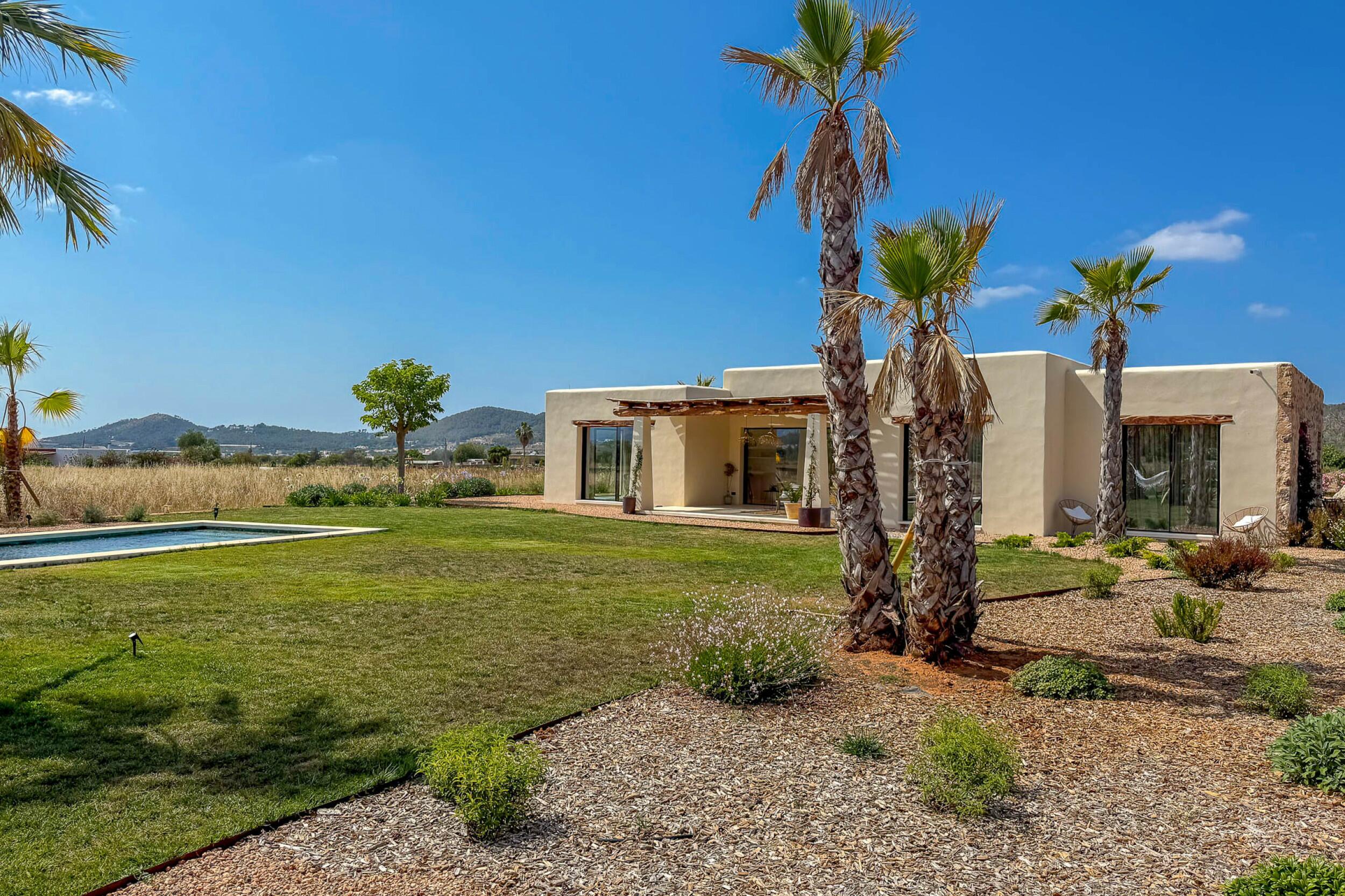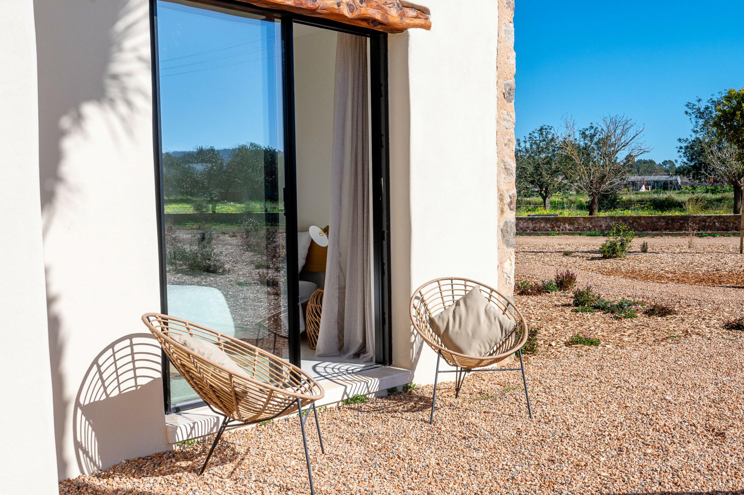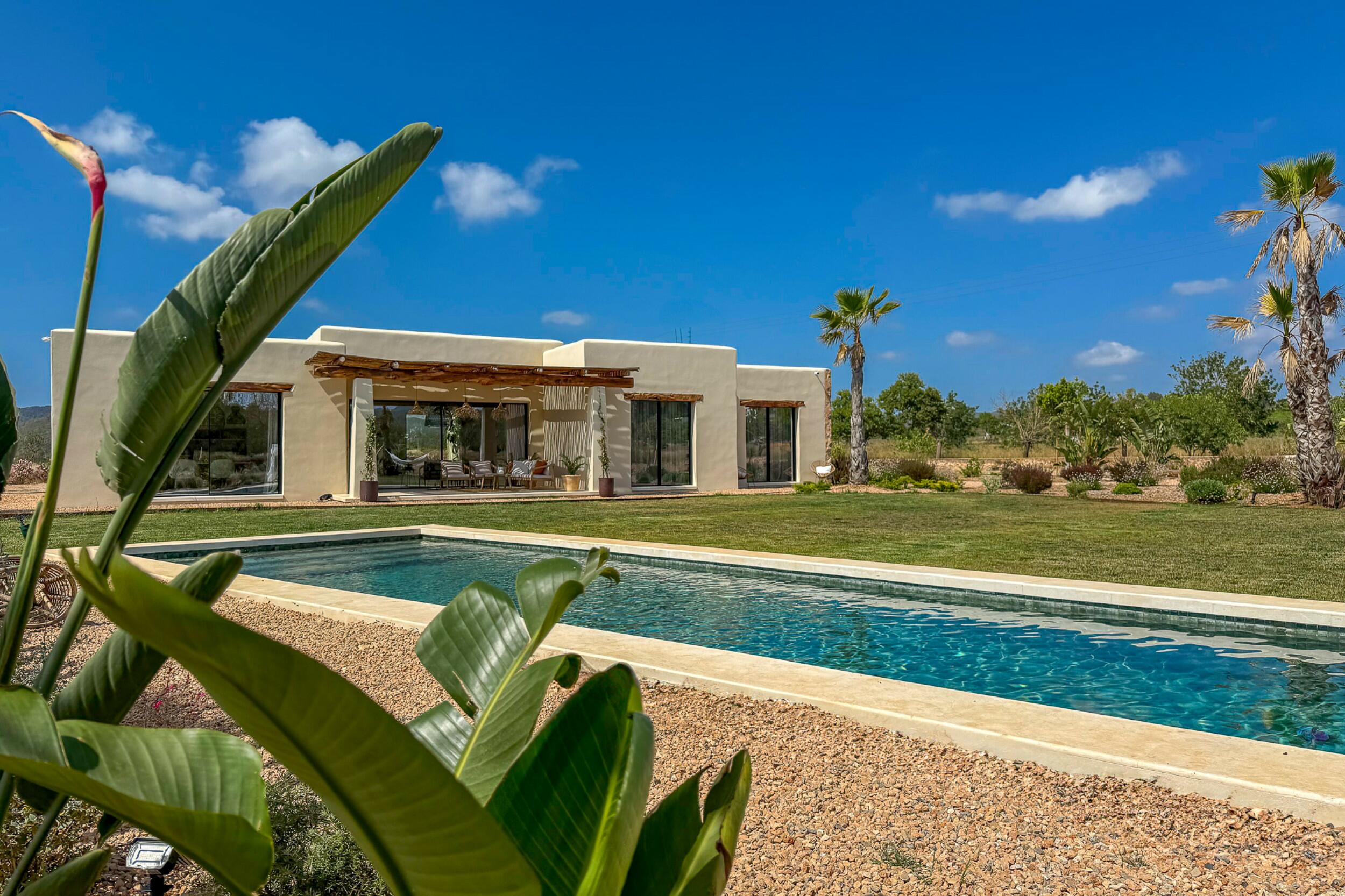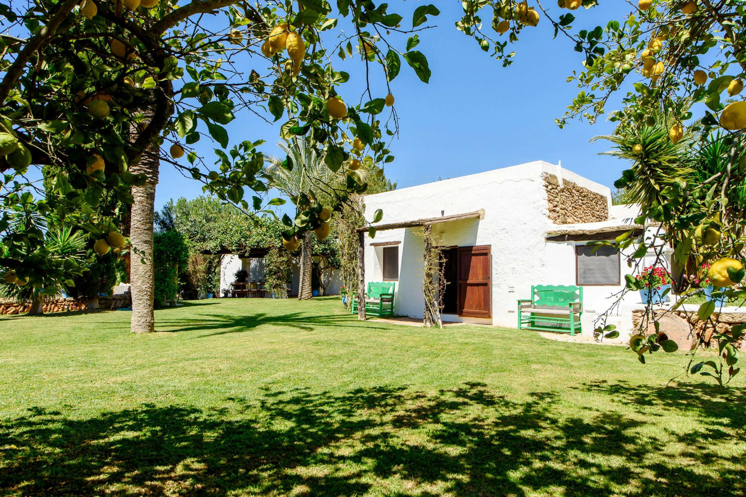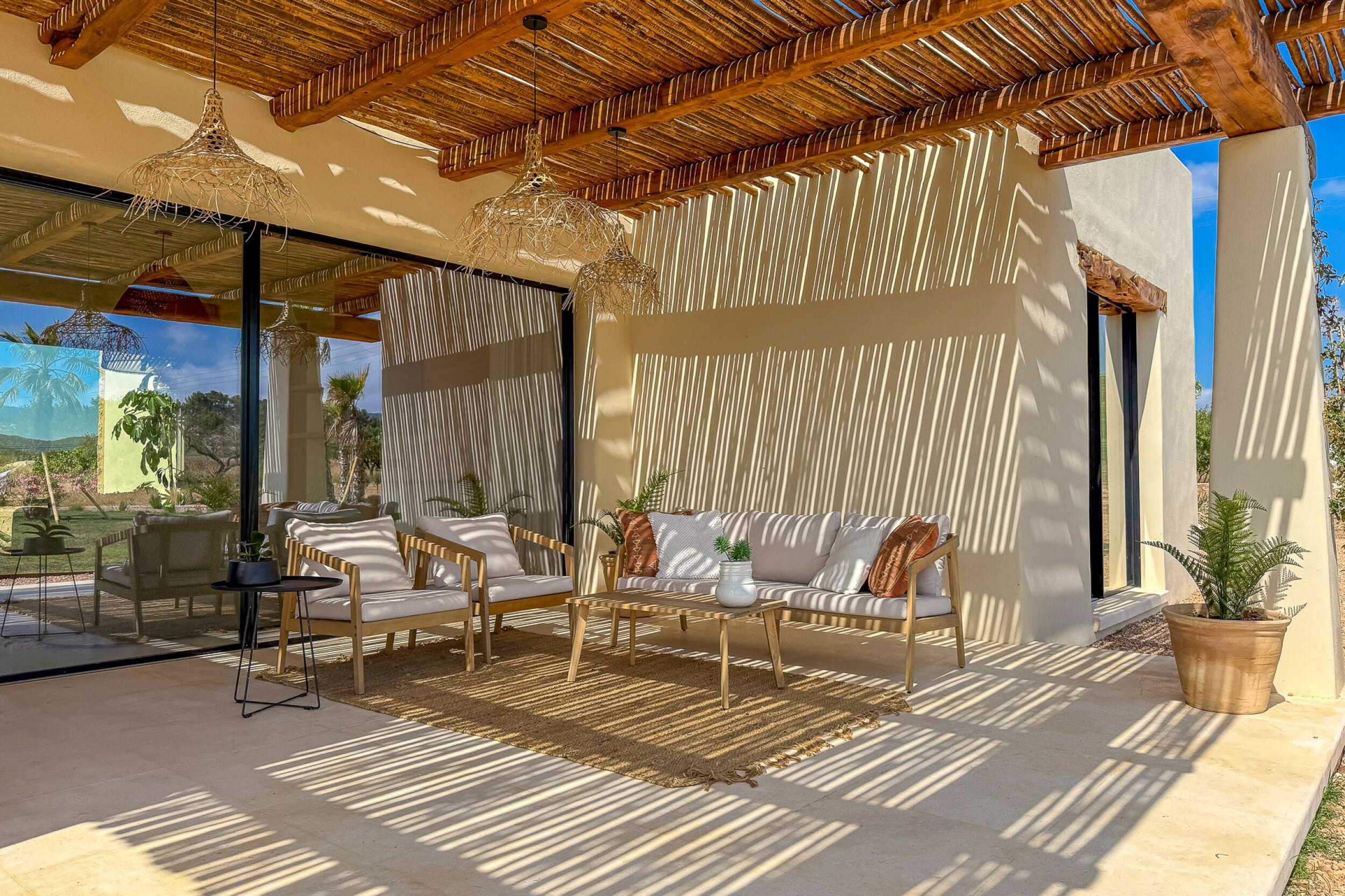 Das Haus ist in zwei Teile untergliedert. Der alte Fincateil hat hohe Decken und alte Steinmauern und verfügt über ein Esszimmer, eine voll ausgestattete Küche und das Hauptschlafzimmer mit begehbarem Kleiderschrank (oder Babyzimmer). Über ein paar Stufen gelangt man in ein Badezimmer mit großer Badewanne und separater Toilette. Im Esszimmer befindet sich ein schwedischer Holzofen. Der neuere, weiße Teil des Hauses wurde 2009 gebaut und besteht aus dem Wohnzimmer, 3 Doppelschlafzimmern und 3 Bädern mit Duschen. Im Wohnzimmer gibt es einen Holzkamin. Alle Räume öffnen sich zur wunderschönen Landschaft Ibizas, mit mehreren Sonnenterrassen rund um das Haus.