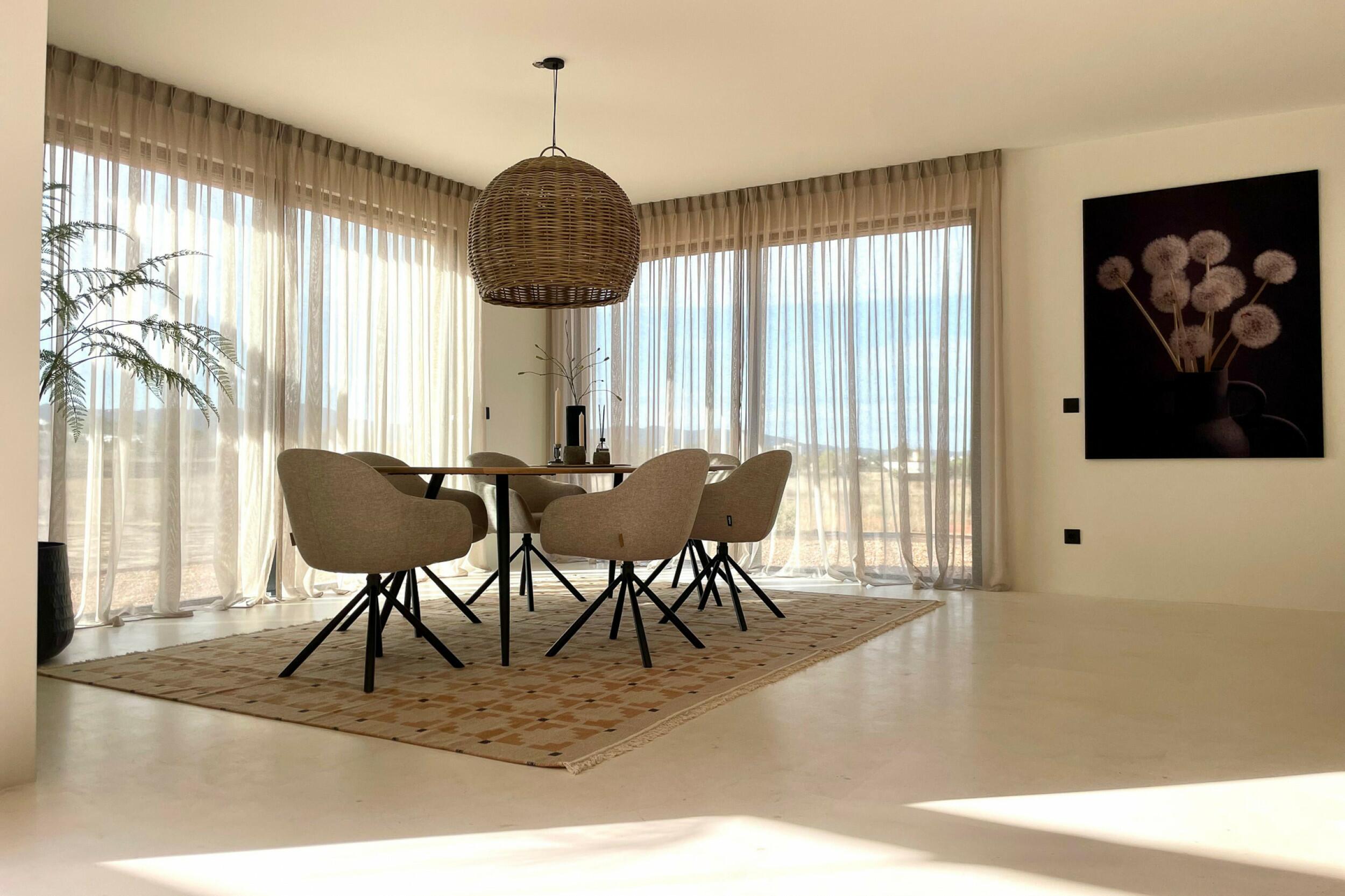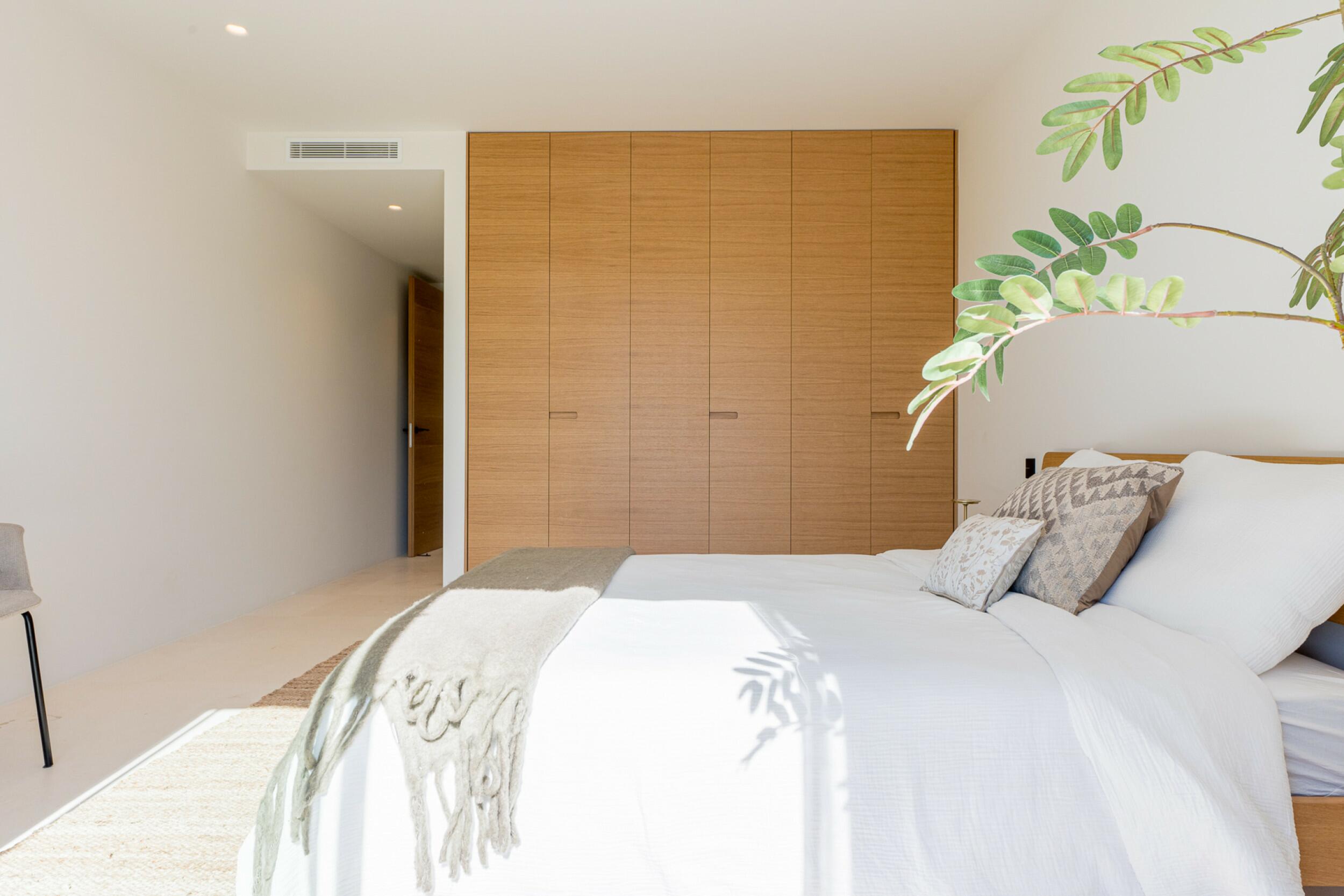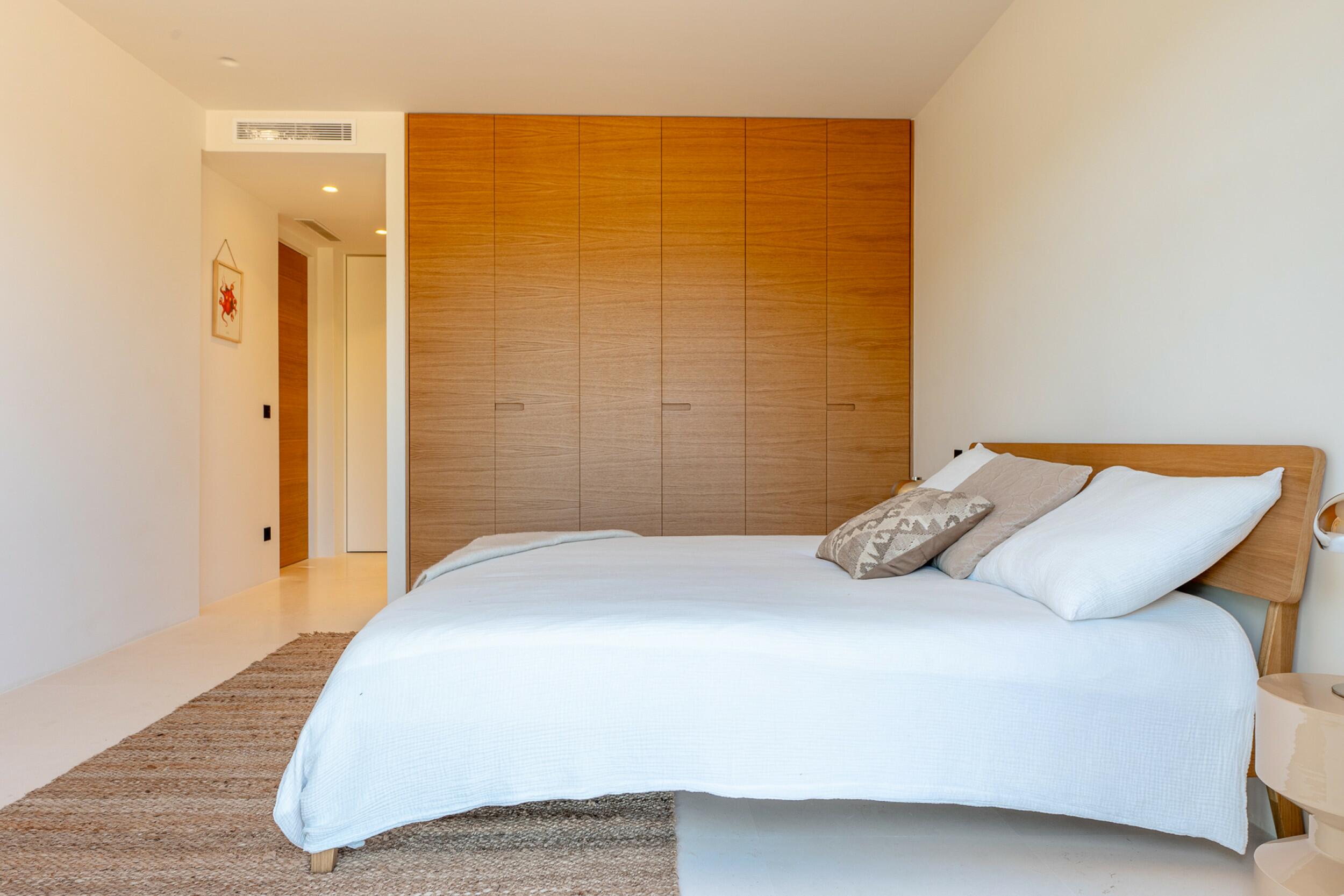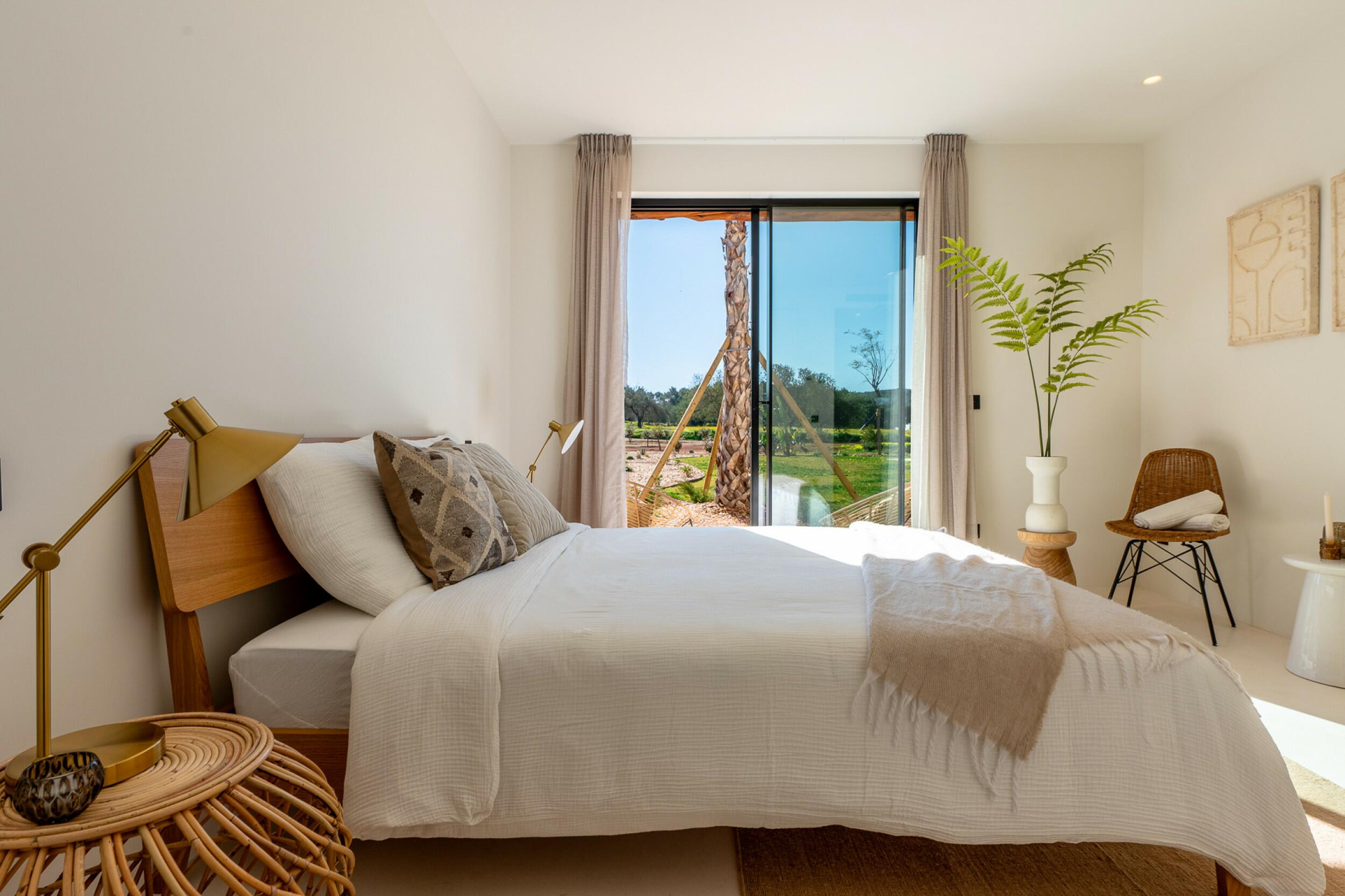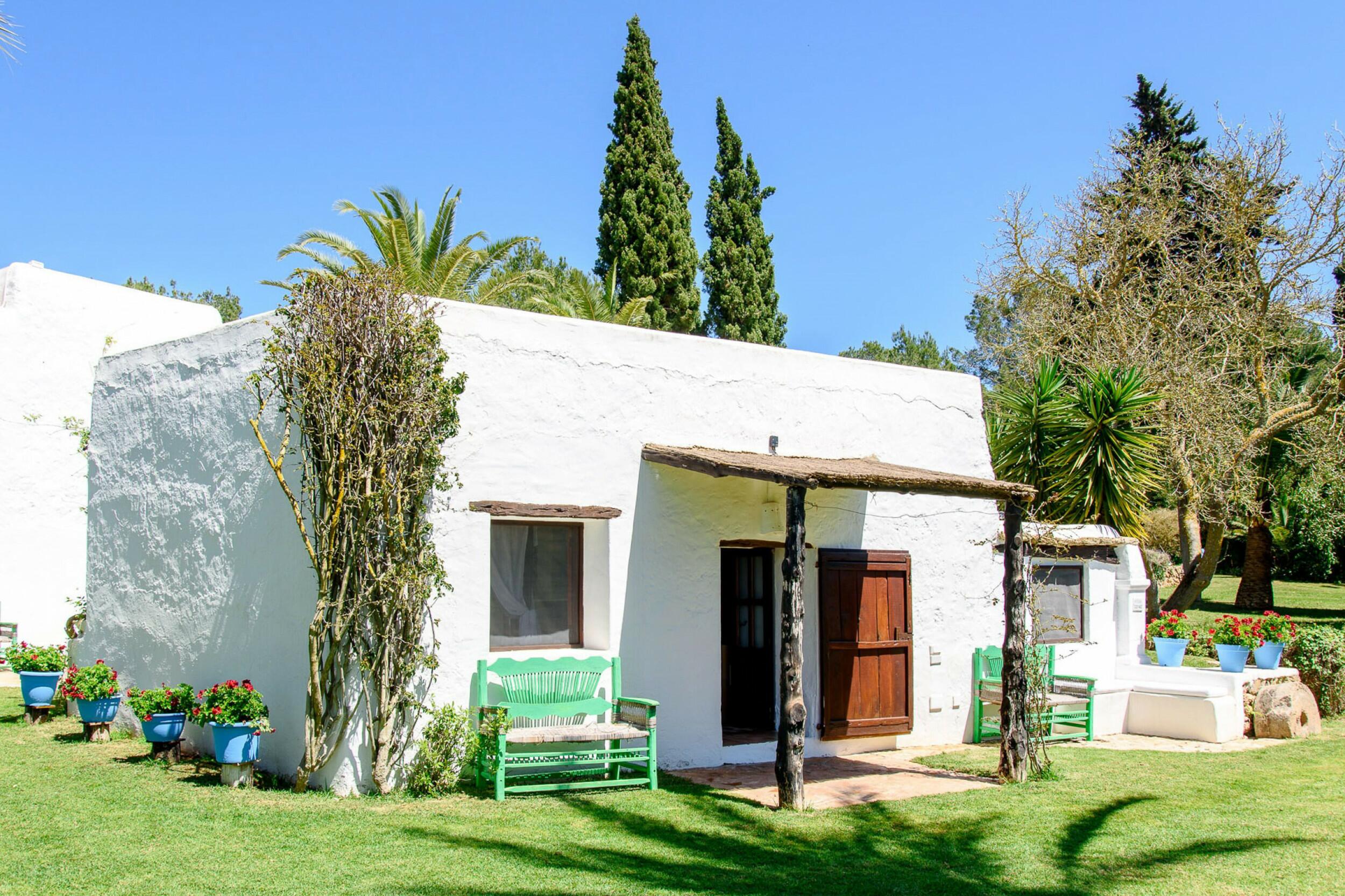 Das Haus ist in zwei Teile untergliedert. Der alte Fincateil hat hohe Decken und alte Steinmauern und verfügt über ein Esszimmer, eine voll ausgestattete Küche und das Hauptschlafzimmer mit begehbarem Kleiderschrank (oder Babyzimmer). Über ein paar Stufen gelangt man in ein Badezimmer mit großer Badewanne und separater Toilette. Im Esszimmer befindet sich ein schwedischer Holzofen. Der neuere, weiße Teil des Hauses wurde 2009 gebaut und besteht aus dem Wohnzimmer, 3 Doppelschlafzimmern und 3 Bädern mit Duschen. Im Wohnzimmer gibt es einen Holzkamin. Alle Räume öffnen sich zur wunderschönen Landschaft Ibizas, mit mehreren Sonnenterrassen rund um das Haus.