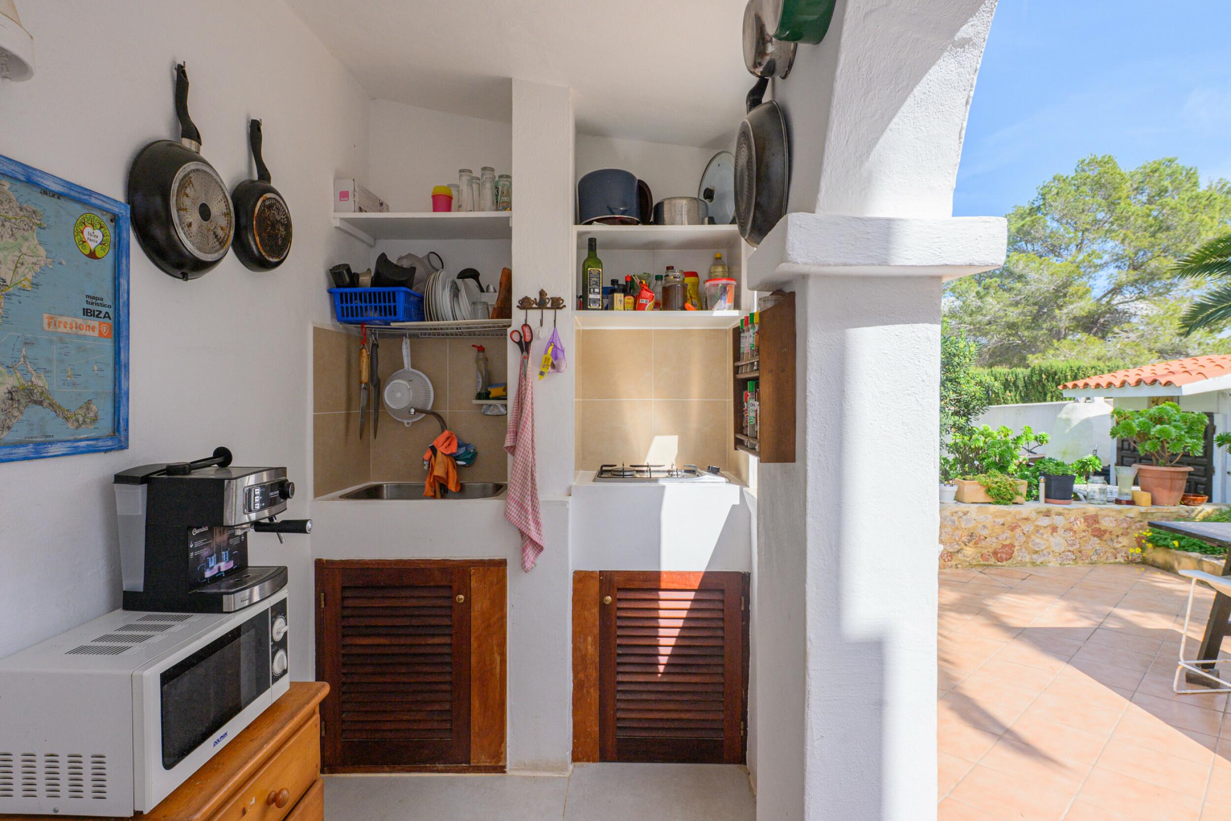 Die Immobilie ist renovierungsbedürftig, so dass die zukünftigen Besitzer sie nach ihren Vorlieben und ihrem Stil gestalten können. Mit einer soliden Struktur und einem charmanten Design, das die ibizenkische Architektur hervorhebt, hat diese Villa enormes Potenzial, ein luxuriöser Rückzugsort zu werden.