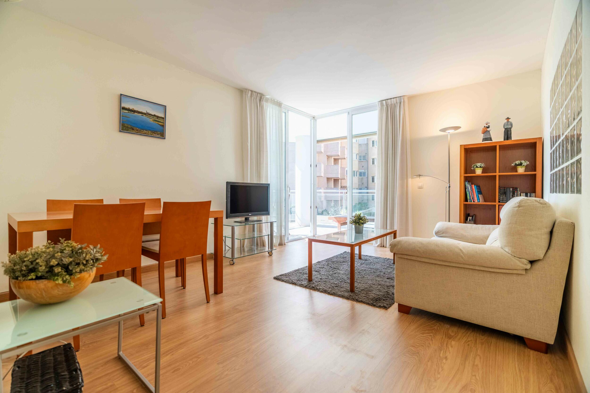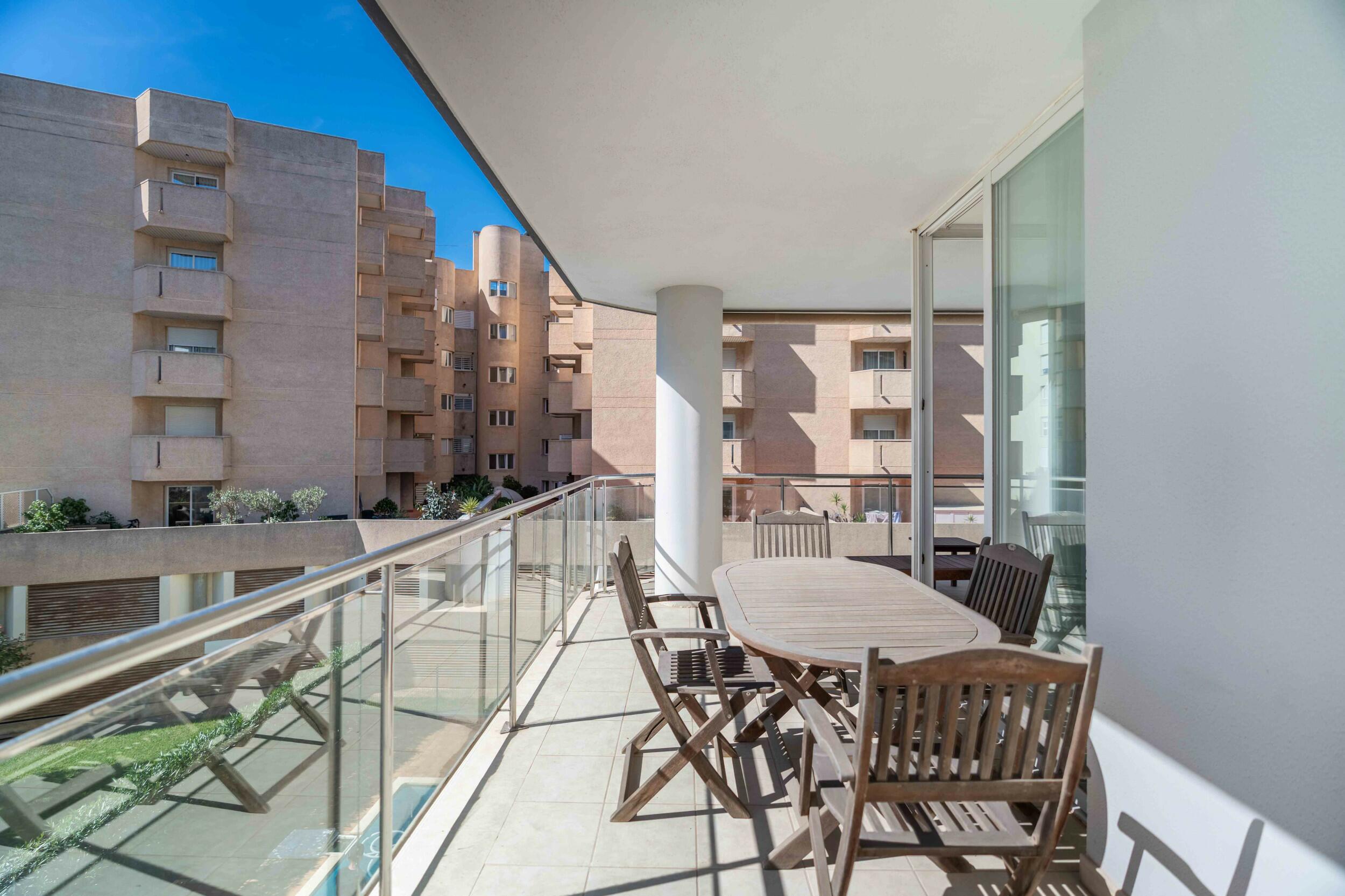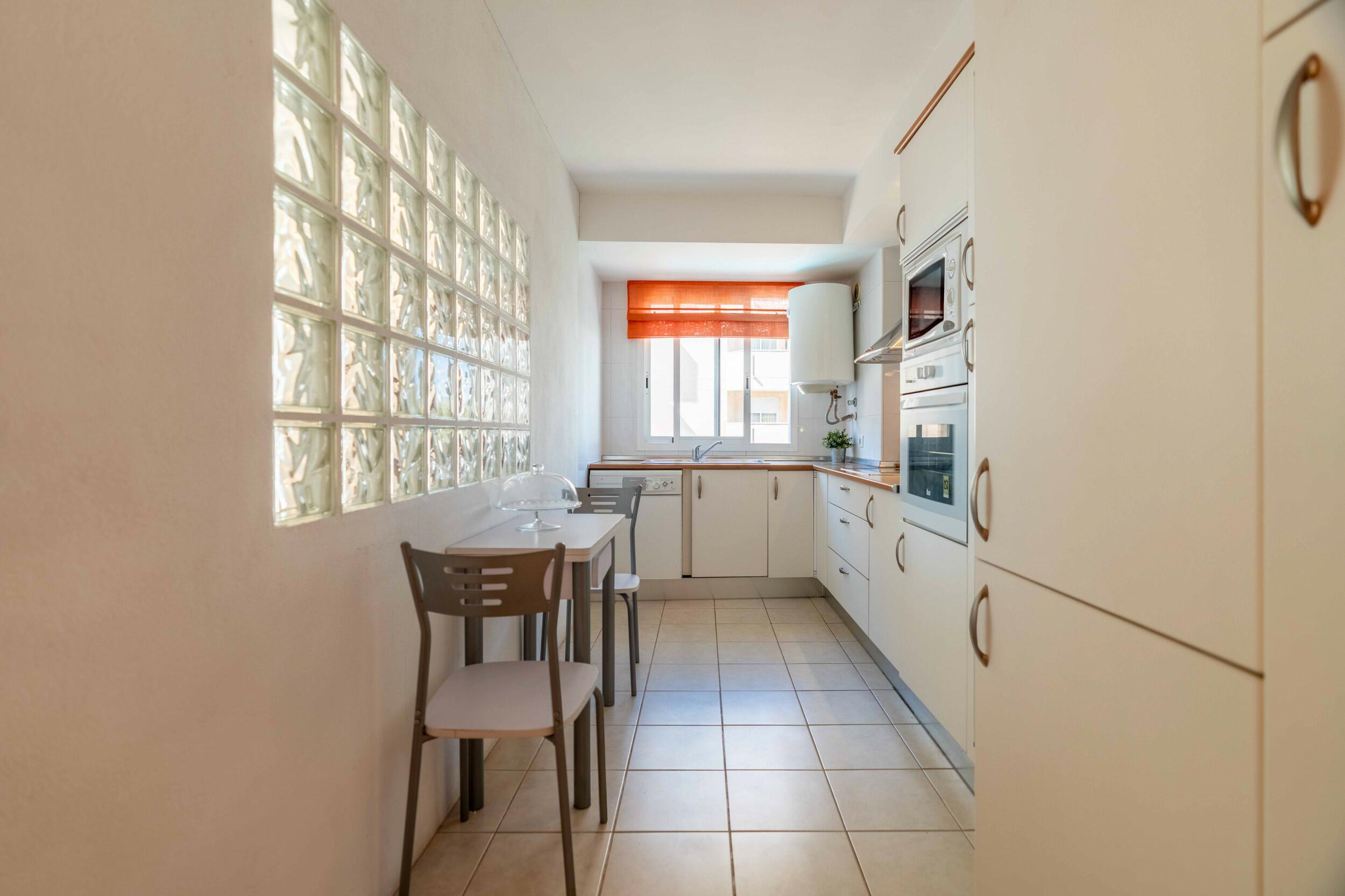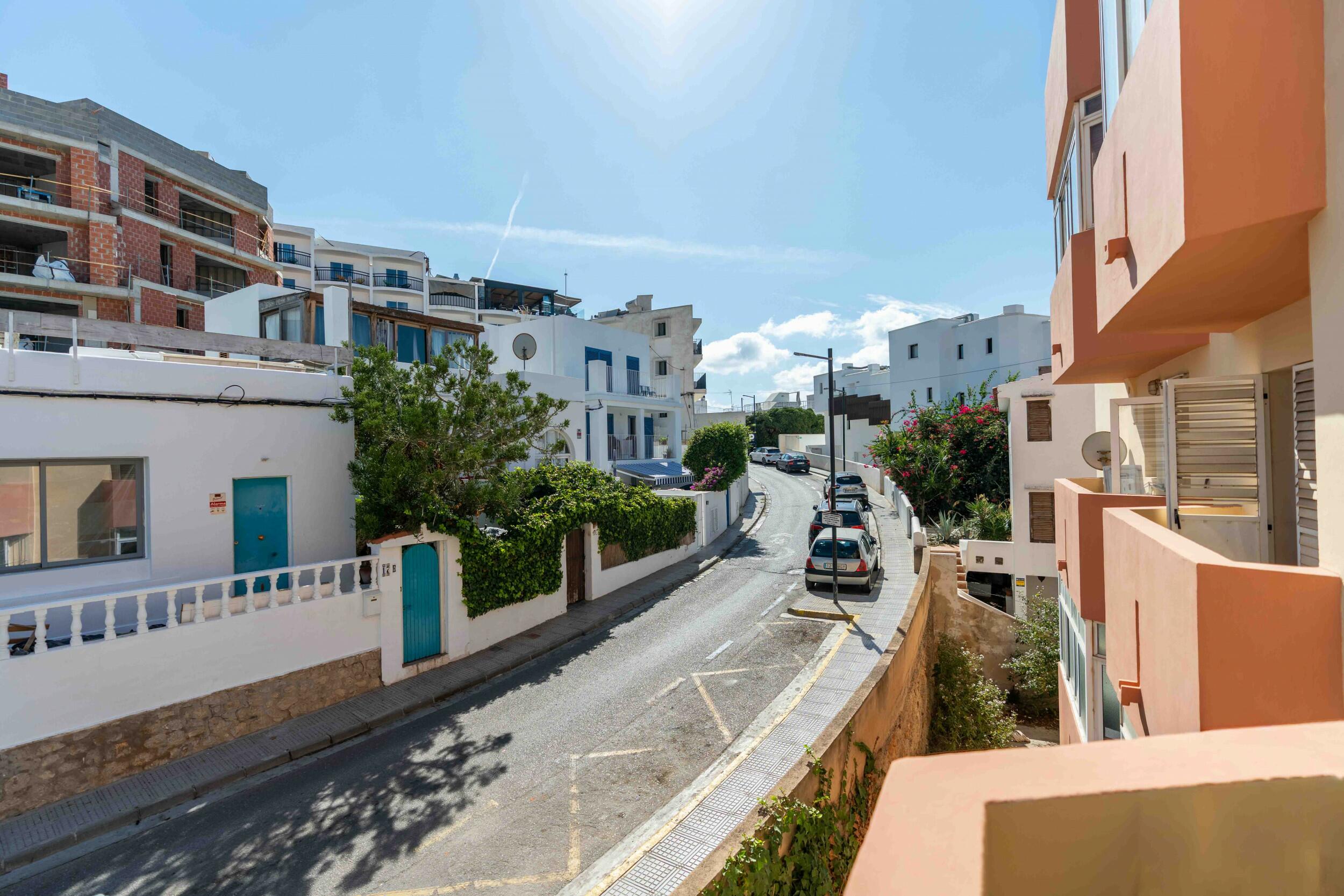 Die Wohnung liegt in einer zentralen Gegend, umgeben von allen Annehmlichkeiten, Schulen und touristischen Attraktionen. Außerdem ist sie nur 8 Minuten vom Flughafen entfernt. Die berühmten Strände der Stadt sind zu Fuß zu erreichen, und eine Vielzahl von lokalen Geschäften und Restaurants sind nur wenige Gehminuten entfernt. Die Wohnung ist nach Südwesten ausgerichtet und bietet einen Blick auf das Meer und Dalt Vila, die Altstadt Ibizas, was eine angenehme Umgebung schafft.