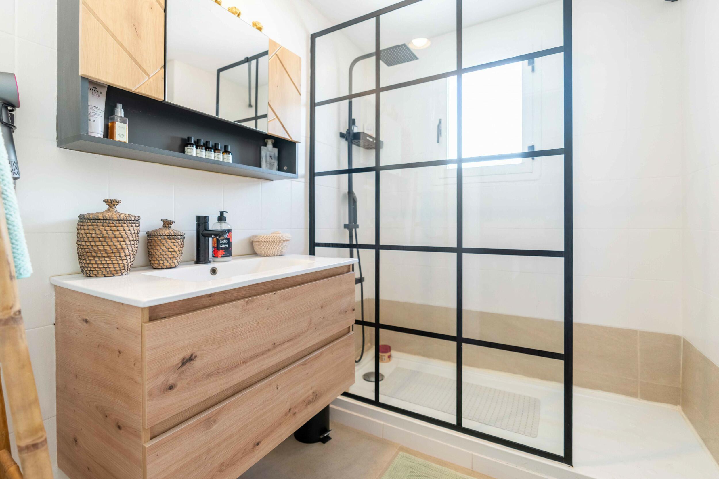 Die Immobilie ist an das Strom- und Wassernetz angeschlossen, so dass eine ständige Versorgung gewährleistet ist. Die Klimaanlage sorgt für Heizung und Kühlung, so dass das ganze Jahr über ein angenehmes Raumklima herrscht. Der Hochgeschwindigkeits-Glasfaser-Internetanschluss sorgt zudem für eine einwandfreie Verbindung. Die Renovierung umfasste neue Bodenbeläge im Innen- und Außenbereich, den Einbau von Doppelverglasung und eine vollständige Erneuerung der Elektro- und Sanitärinstallationen. Durch die Verwendung von Holz und Naturfasern wurde ein warmes, elegantes und modernes Ambiente geschaffen.