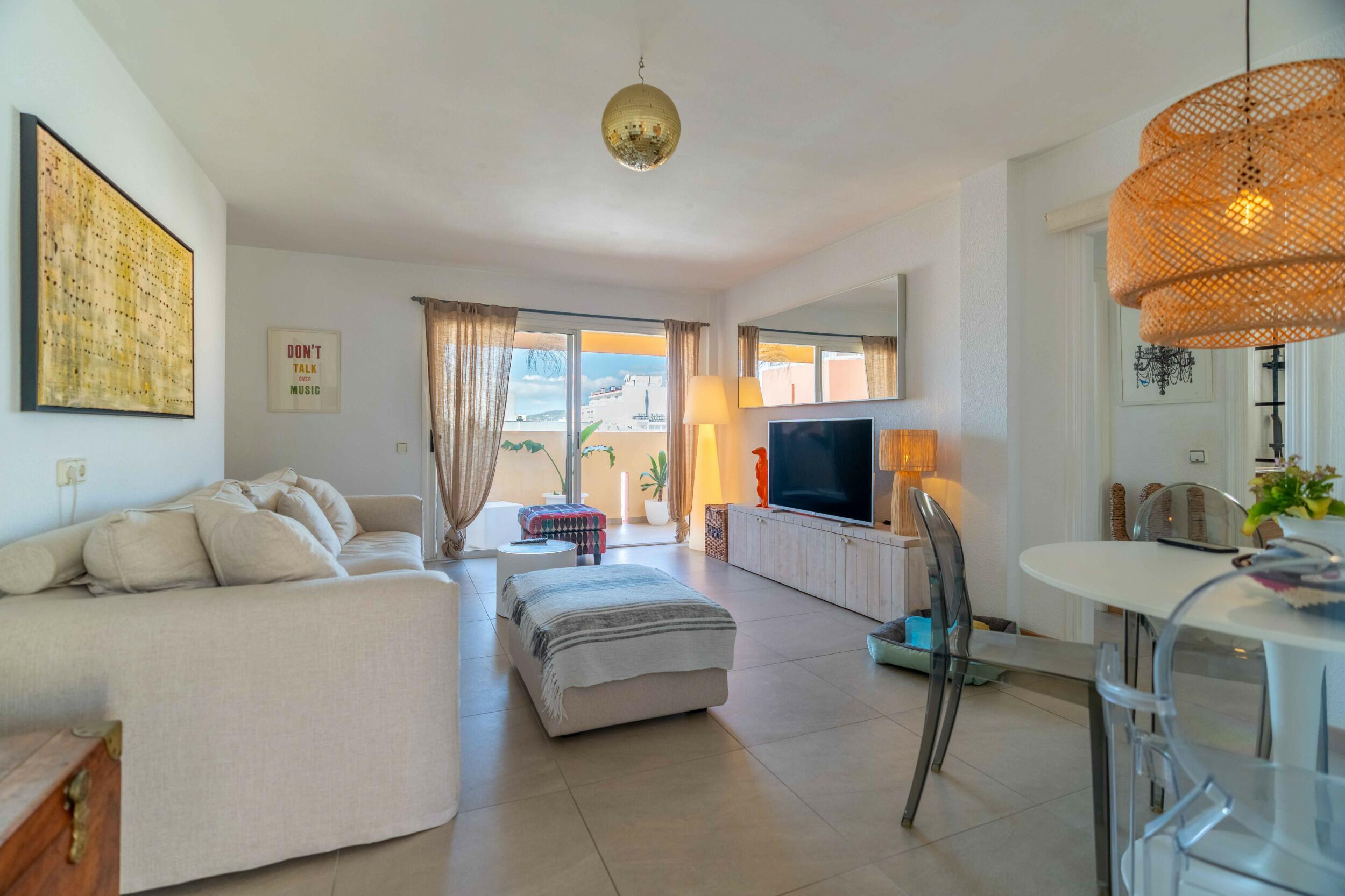 "Apartamento Mimbre" zum Verkauf mit Prestige Properties Ibiza, ist eine elegante renovierte Wohnung, im siebten Stock eines Gebäudes mit Aufzug gelegen, bietet Ruhe und Exklusivität mit nur zwei direkten Nachbarn. Sie verfügt über zwei helle Doppelschlafzimmer, eine moderne Einbauküche und ein geräumiges Wohnzimmer. Die Süd-West-Ausrichtung bietet einen Blick auf das Meer und Dalt Vila, während die zentrale Lage einen einfachen Zugang zu Stränden, Dienstleistungen und dem Flughafen ermöglicht. Ausgestattet mit Klimaanlage, Glasfaserkabel und hochwertigen Oberflächen ist es ein modernes und komfortables Haus im Herzen von Ibiza.