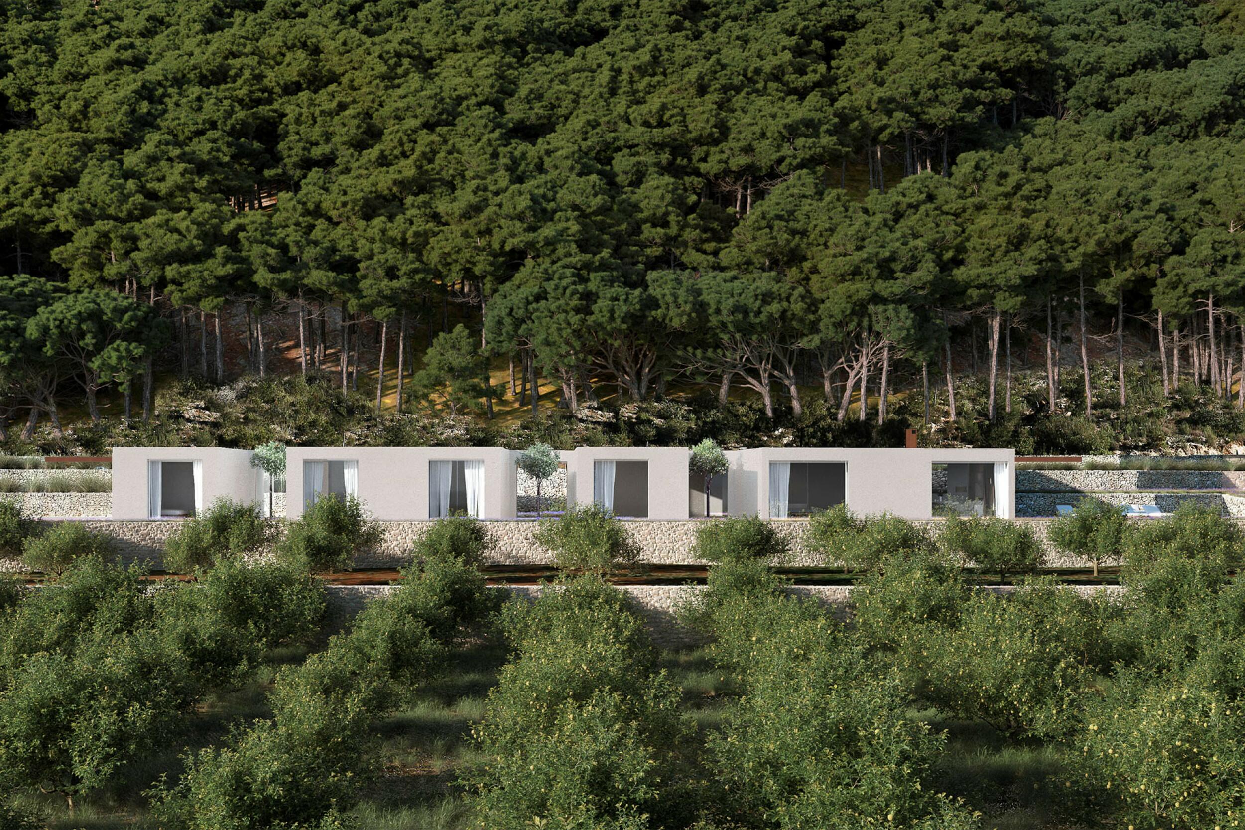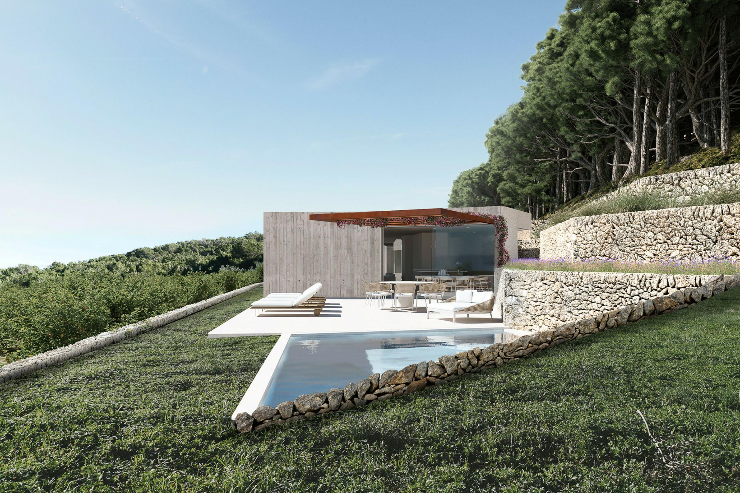 Der Außenbereich des Hauses ist so gestaltet, dass man die Natur und das mediterrane Klima in vollen Zügen genießen kann. Es verfügt über: einen 28 m² großen rechteckigen Swimmingpool, der von Steinterrassen und sonnigen Bereichen umgeben ist, eine Veranda, die ideal zum Entspannen im Freien ist, einen schönen Garten mit einheimischen Pflanzen und Terrassen voller Obstbäume und mehrere Chill-out-Bereiche und Terrassen mit freiem Blick.