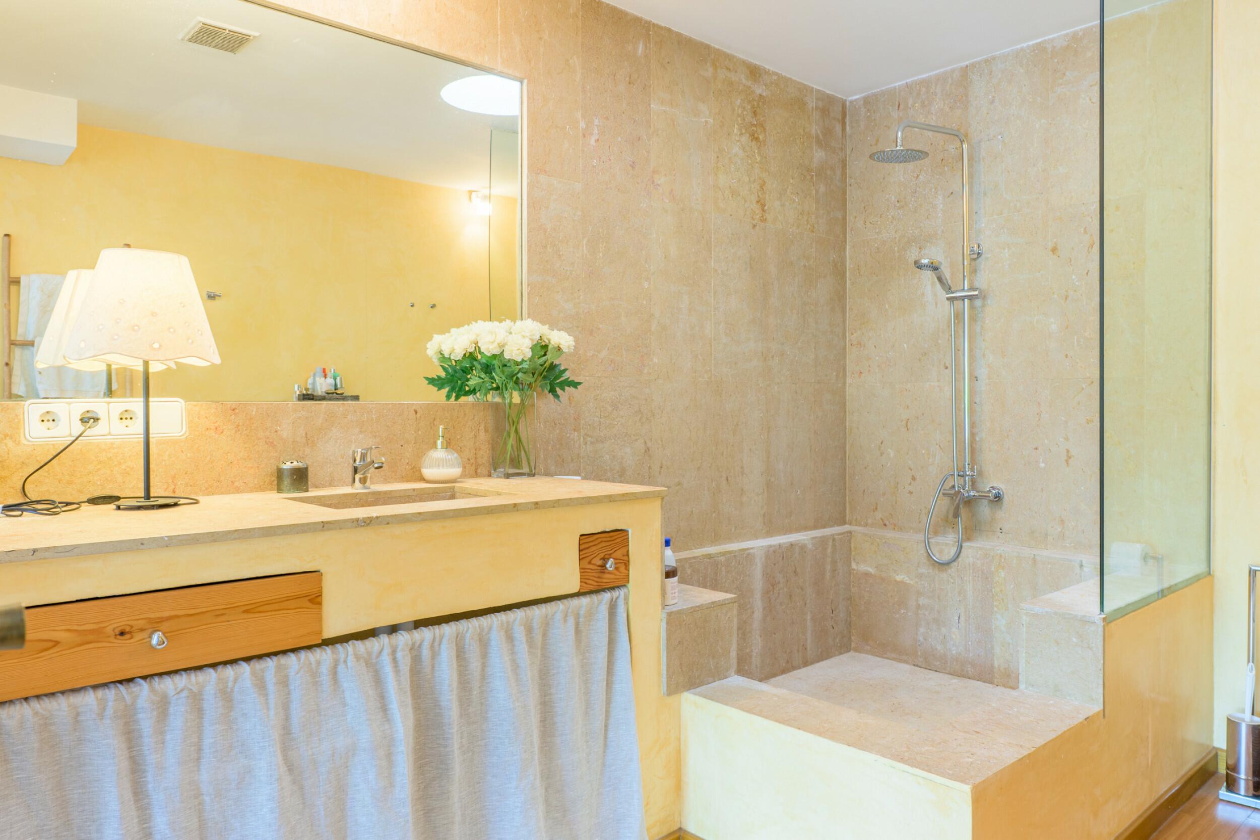 Das Apartment verfügt über eine durchdachte Raumaufteilung, die sowohl Komfort als auch Funktionalität bietet. Eine voll ausgestattete Küche geht nahtlos in den geräumigen offenen Wohn- und Essbereich über, der direkt auf die große Terrasse führt und ein harmonisches Innen-Außen-Wohnerlebnis schafft. Die vier Schlafzimmer verfügen über eingebaute Holzschränke, wobei die Master-Suite im oberen Stockwerk von einer eigenen Klimaanlage, zusätzlicher Privatsphäre und einem verfeinerten Ambiente profitiert. Die drei Badezimmer sind mit stilvollen Mikrozementwänden ausgestattet, die dem Gesamtdesign einen modernen Touch verleihen.