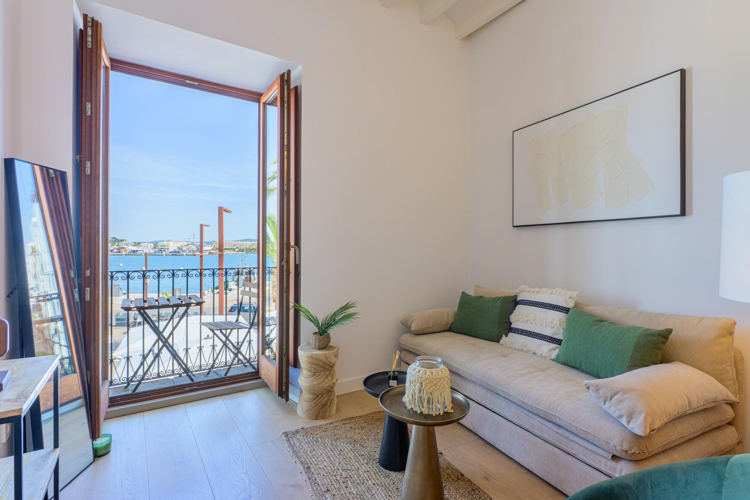 "Apartamento Luna", zum exklusiven Verkauf bei Prestige Properties Ibiza, liegt in einer ruhigen Wohngegend, die das ganze Jahr über bewohnt ist und nur wenige Schritte vom Strand entfernt. Dieses moderne Apartment in Playa d’en Bossa verbindet großzügiges Wohnen drinnen und draußen mit mühelosem Zugang zur Stadt Ibiza und den besten Annehmlichkeiten der Insel.