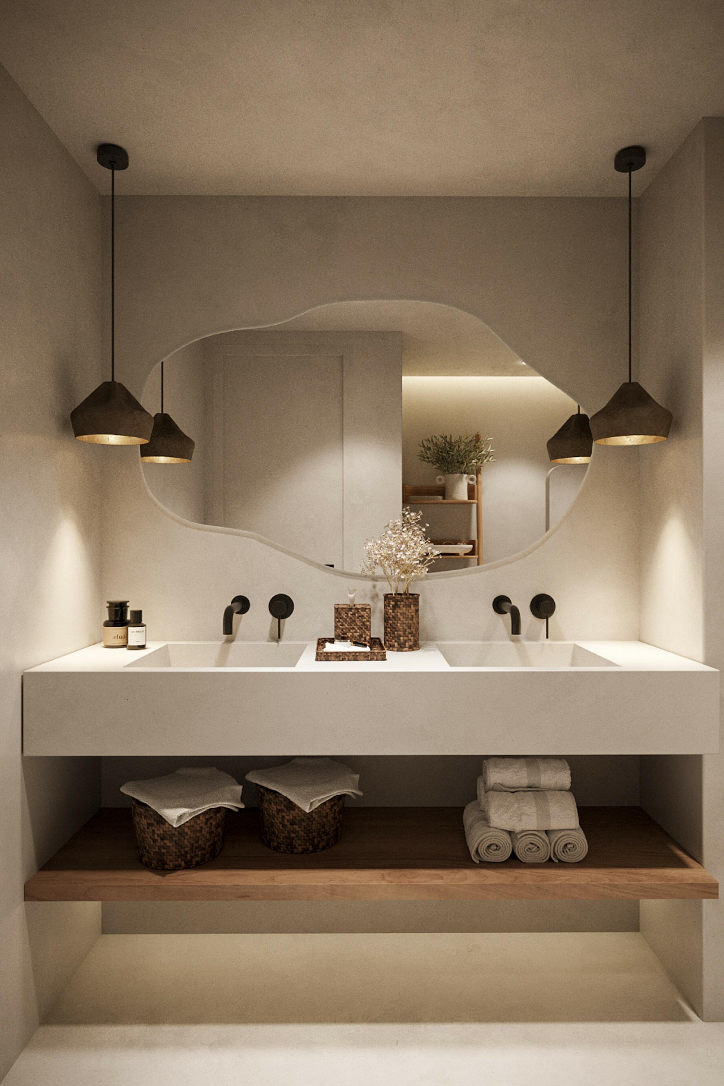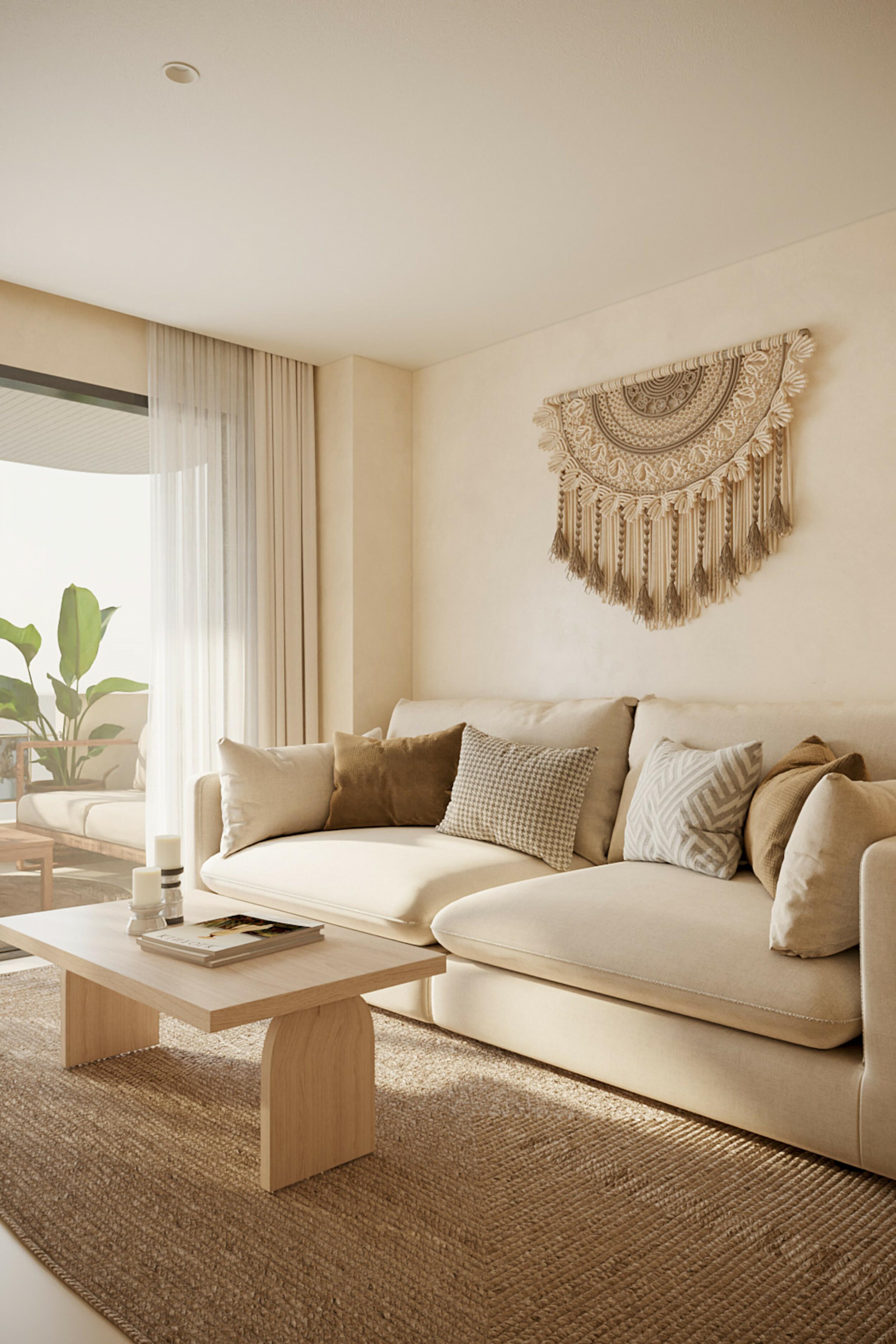 Das Anwesen erstreckt sich über eine Gesamtfläche von ca. 103 m², die über einen gut durchdachten offenen Grundriss verteilt ist. Beim Betreten des Apartments vermittelt das nahtlose Design, die sanfte neutrale Farbpalette und natürliche Materialien ein Gefühl der Ruhe. Die Wohn- und Essbereiche gehen mühelos in die offene Küche über und bilden das Herzstück des Hauses. Zwei ruhige Schlafzimmer befinden sich privat im hinteren Bereich und werden von zwei stilvollen Badezimmern mit begehbaren Duschen und Mikrozementoberflächen ergänzt.