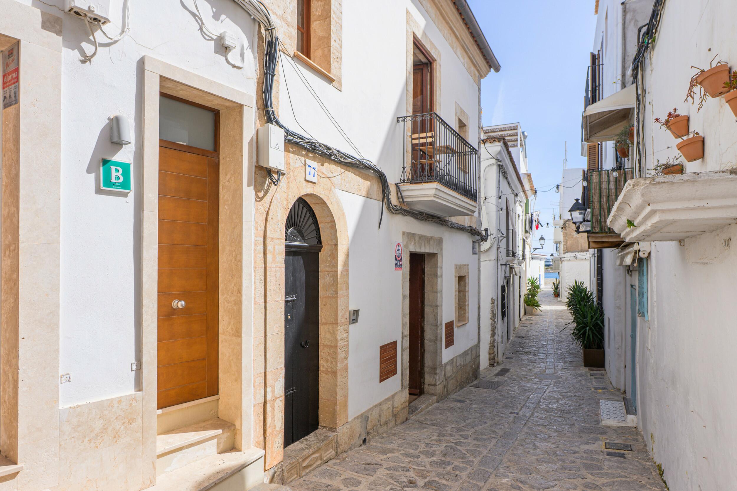 "Apartamento Caliza" zum Verkauf mit Prestige Properties Ibiza, dieses elegante Apartment befindet sich im Herzen der historischen La Marina von Ibiza-Stadt, einem der bekanntesten und begehrtesten Viertel der Insel. In einer erstklassigen Straße innerhalb der alten Marina gelegen, genießt die Immobilie eine lebendige, aber dennoch kultivierte Umgebung, umgeben von dem Charme traditioneller Architektur und einer lebhaften Atmosphäre.