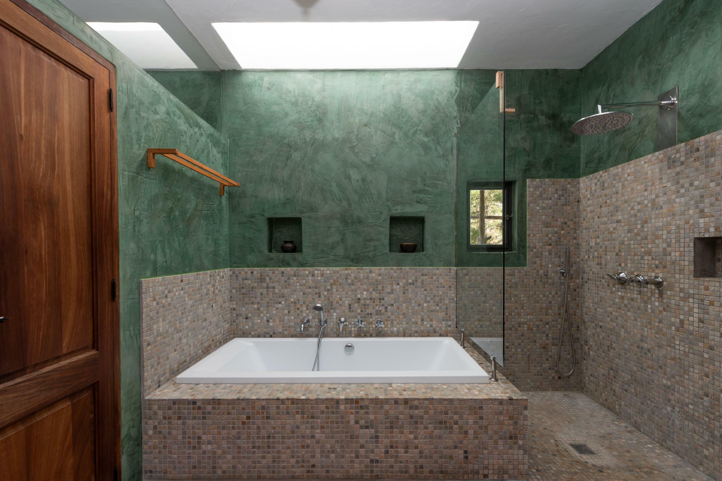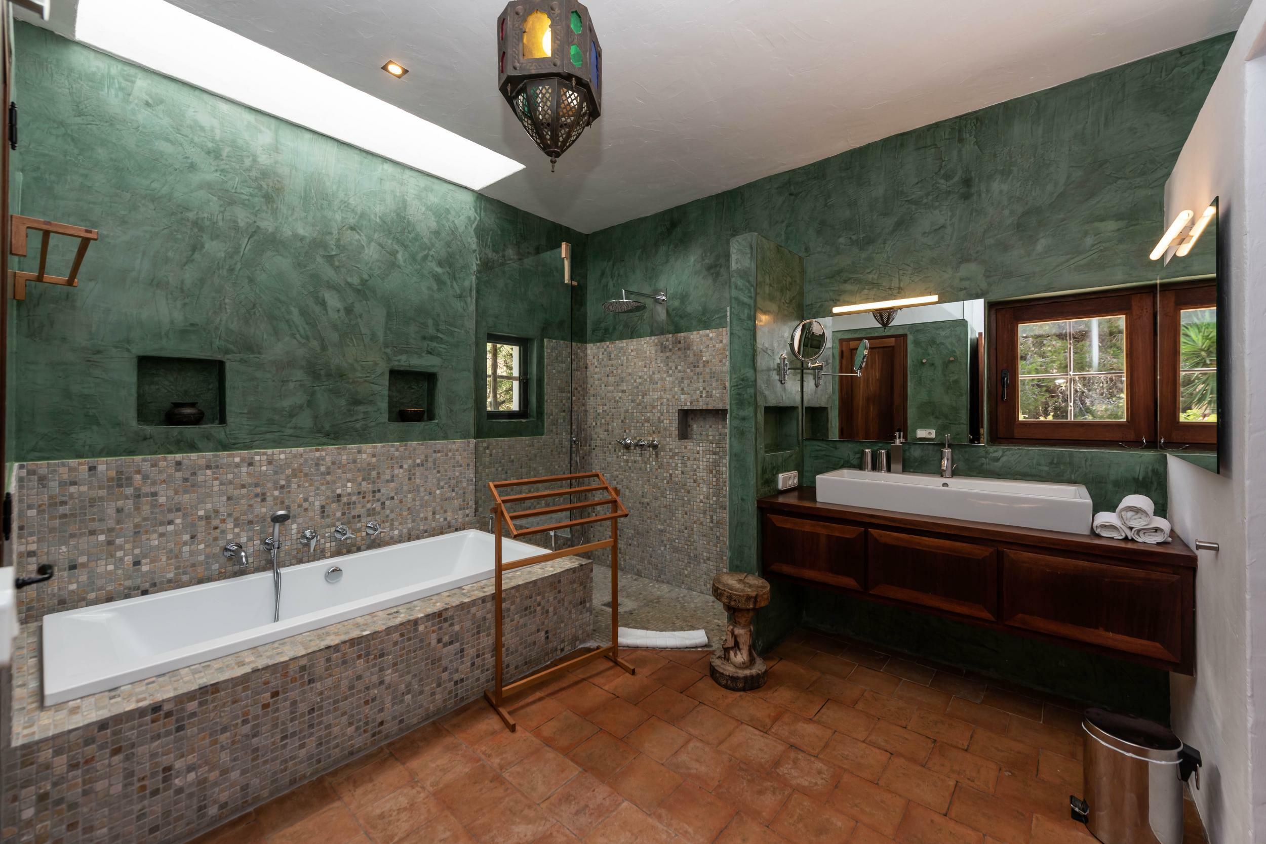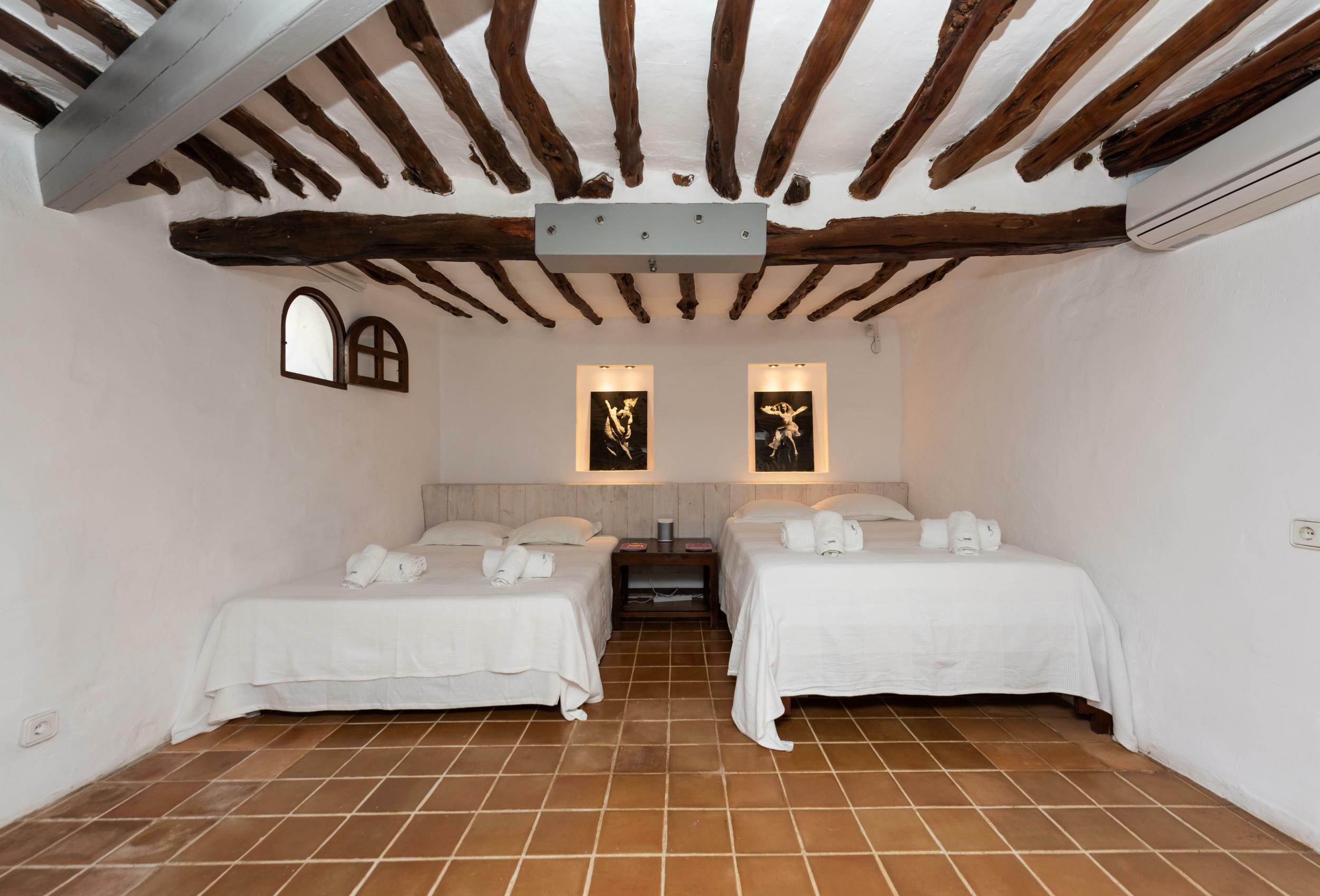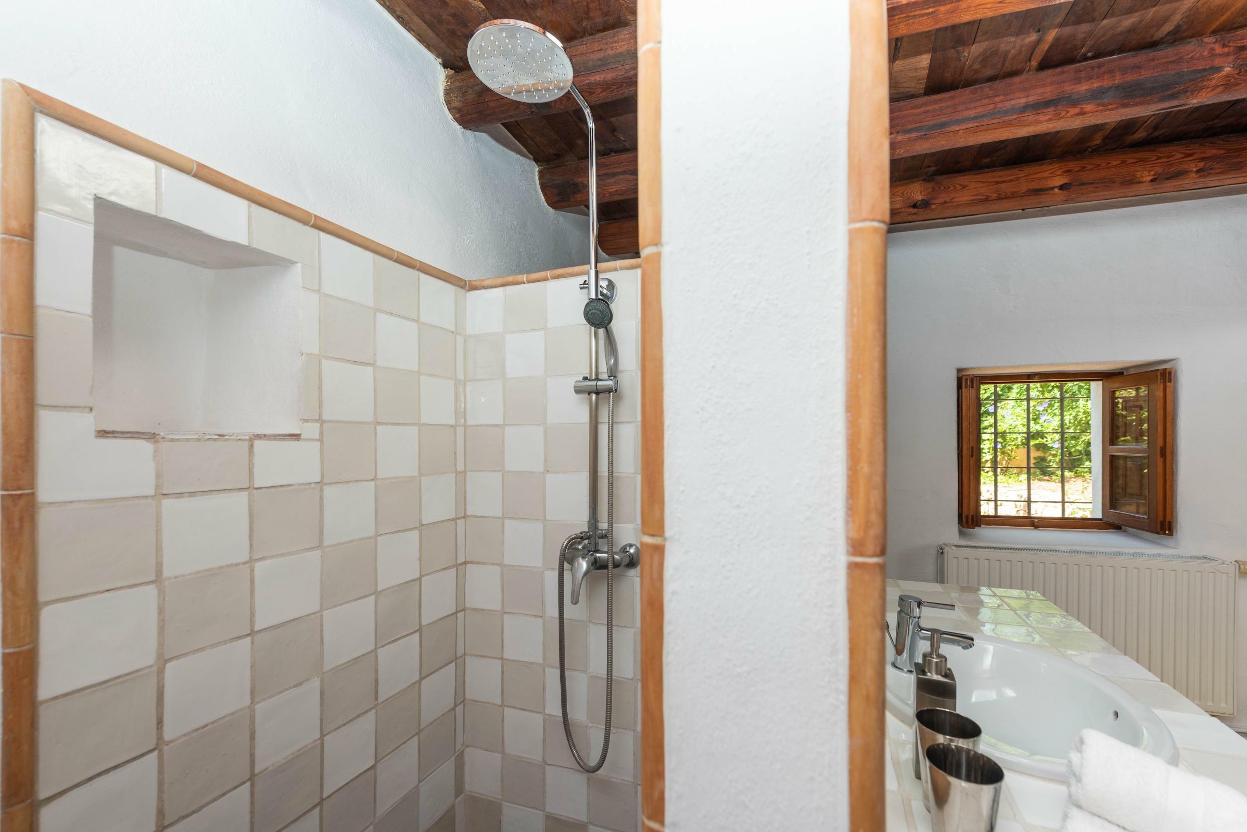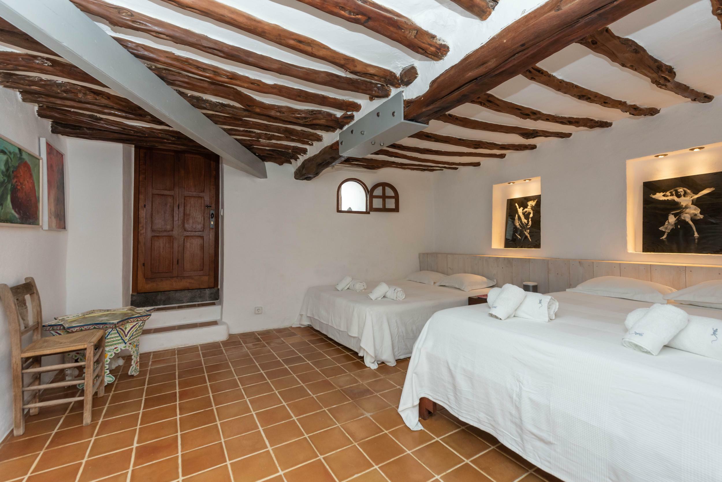 Im Erdgeschoss befindet sich ein Doppelschlafzimmer mit Kingsize-Bett, freistehender Badewanne, en-suite Badezimmer mit zwei Regenduschen und Waschbecken, mit direktem Zugang zur Poolterrasse und zum Garten. Im Obergeschoss befindet sich das Hauptschlafzimmer mit Meer- und Talblick, einem Kingsize-Bett, einem eigenen Bad, einer privaten Terrasse und Zugang zur Dachterrasse. Im unteren Erdgeschoss befinden sich zwei Doppelschlafzimmer, eines mit Kingsize-Bett und eigenem Bad und das andere mit eigenem Bad und privater Terrasse, die leicht zur Poolterrasse zugänglich ist.