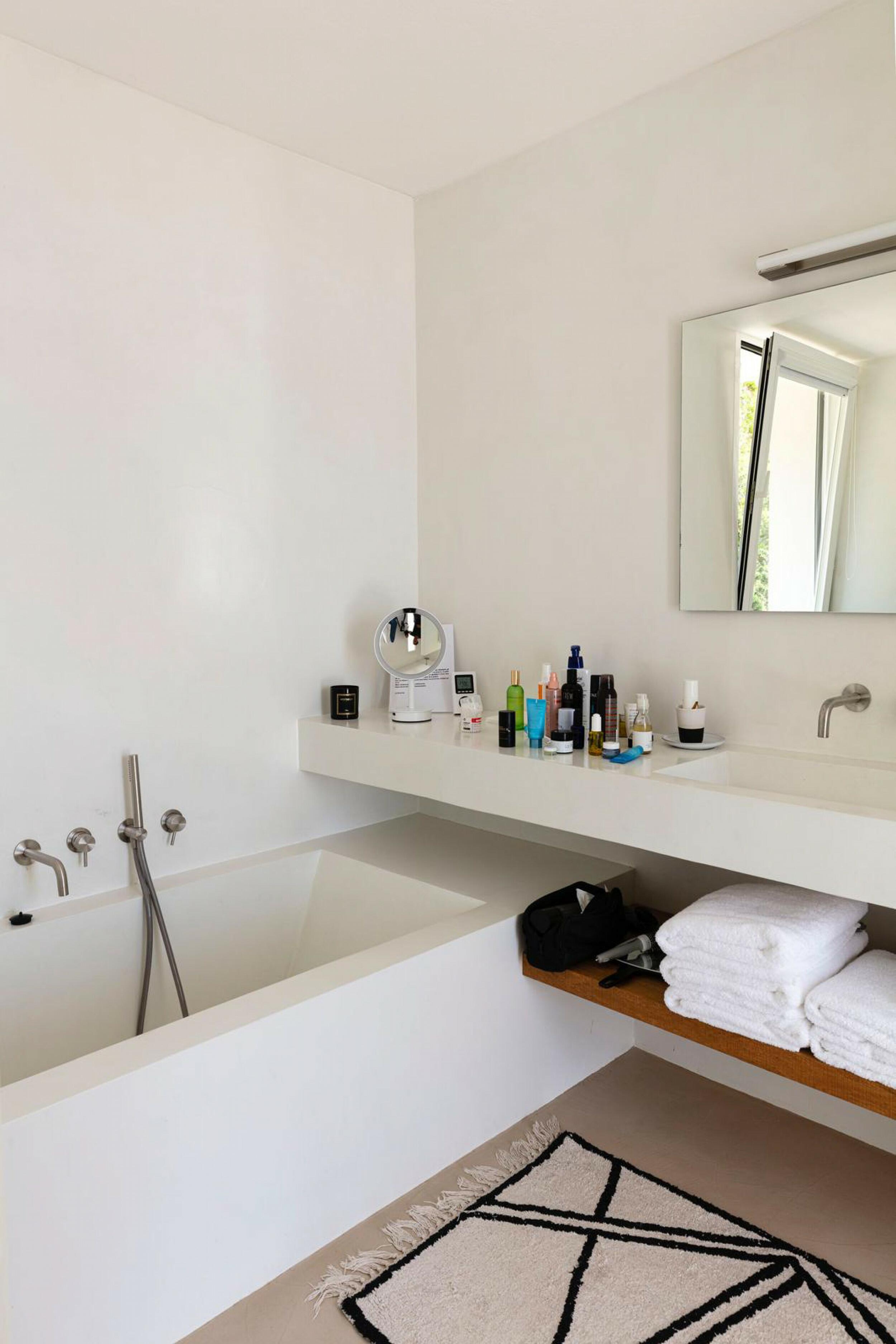 Die sechs klimatisierten Suiten der Villa bieten Platz für bis zu 12 Gäste. Sie überzeugen mit einer eleganten, natürlichen Einrichtung aus weißen Wänden und Holzmöbeln. Jedes Zimmer verfügt über ein eigenes Bad mit hochwertigen Pflegeprodukten und direkten Zugang zu einer Terrasse oder dem Garten. Die Master-Suite bietet zudem eine freistehende Badewanne mit Panoramablick auf die Hügel.