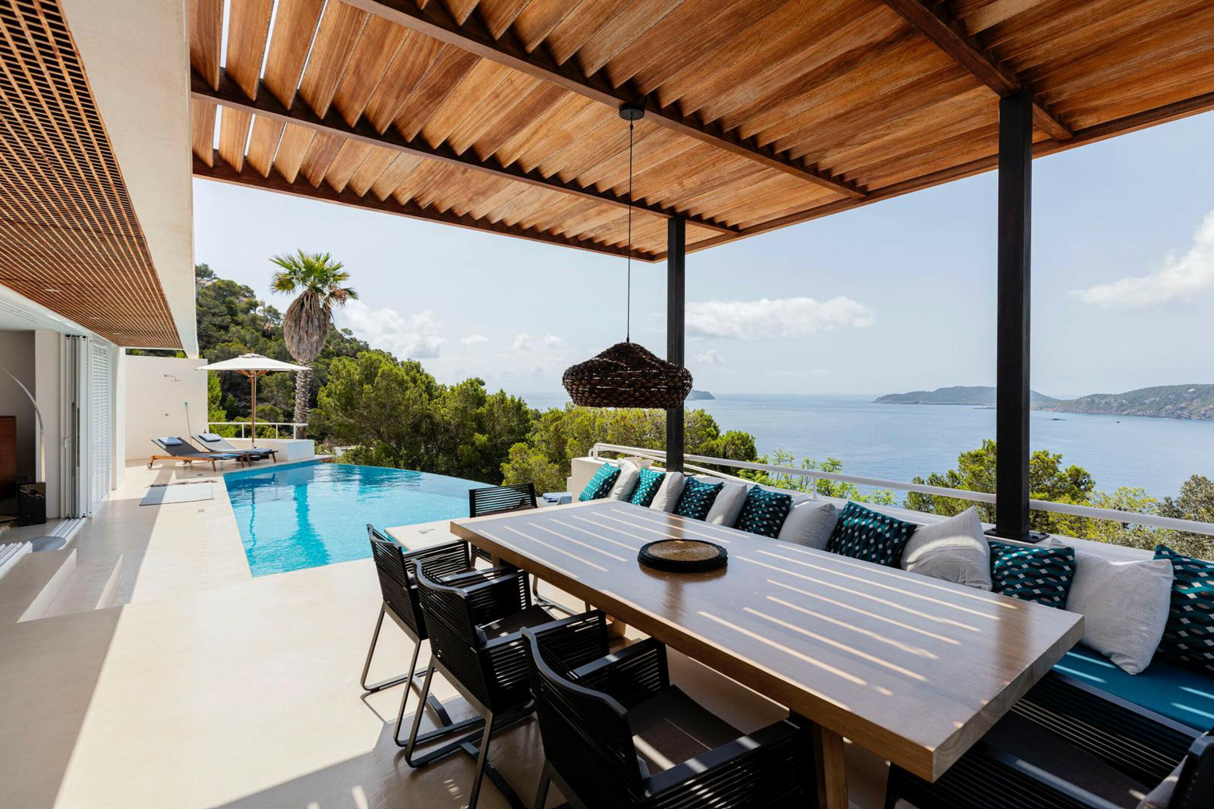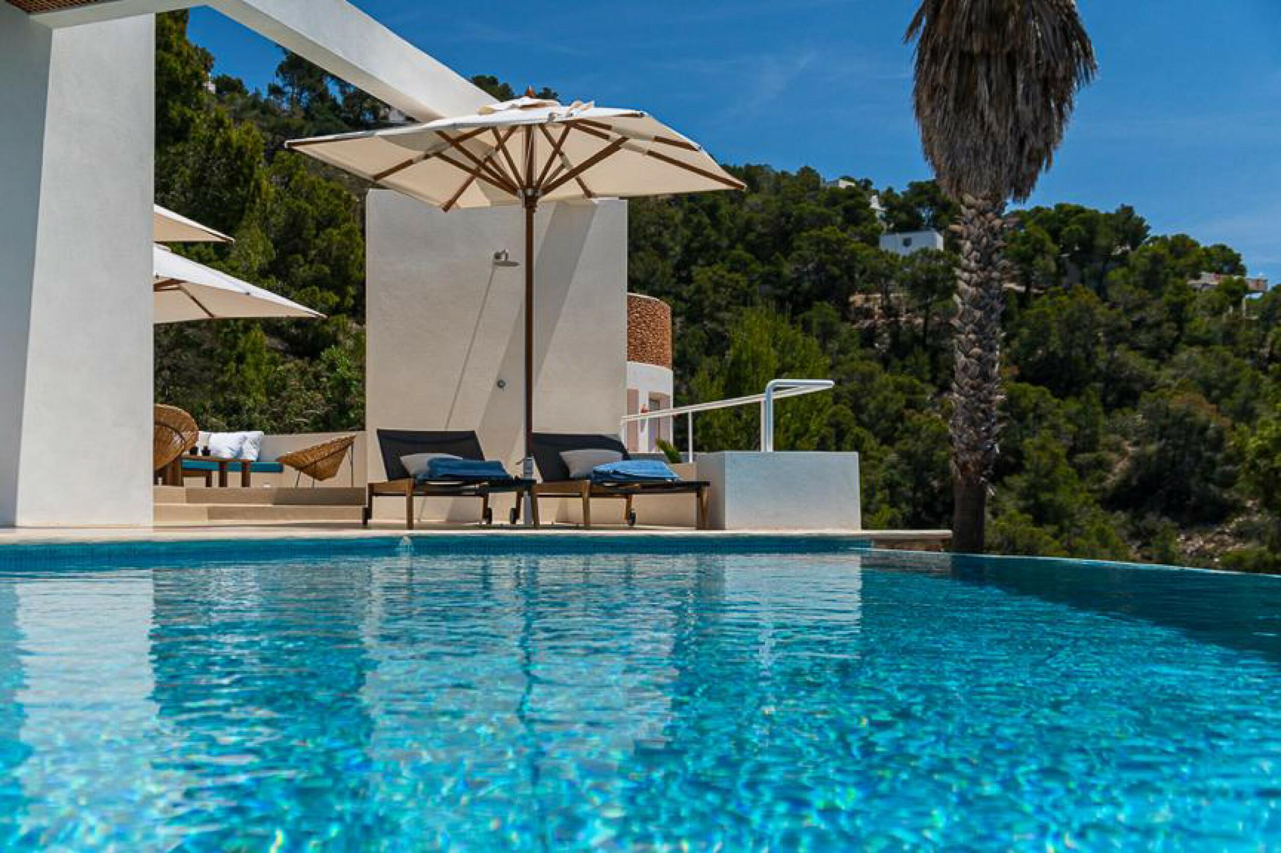 Mit Blick auf die üppige, hügelige Landschaft Nord-Ibizas ist diese luxuriöse Familienvilla wirklich außergewöhnlich.