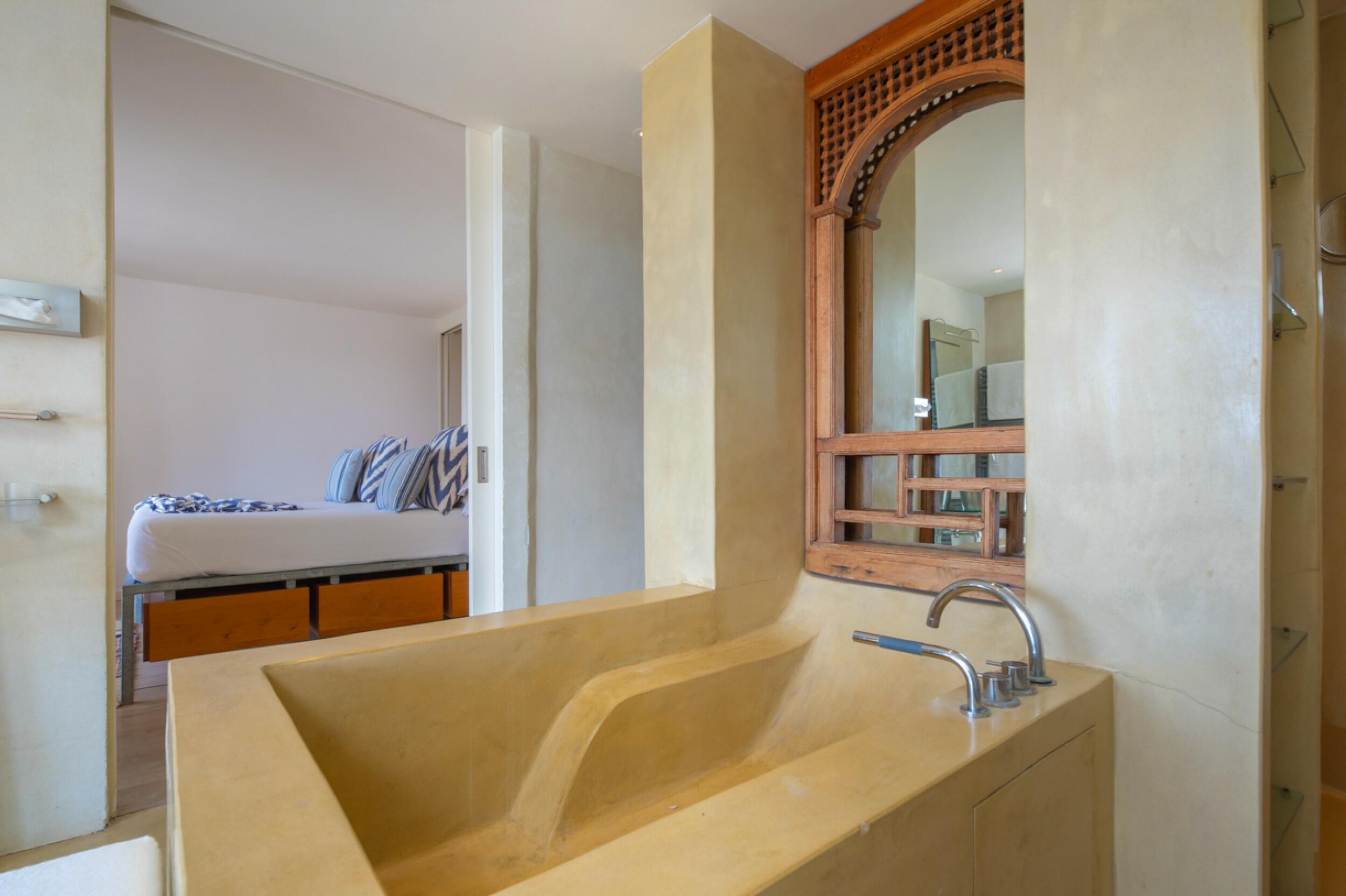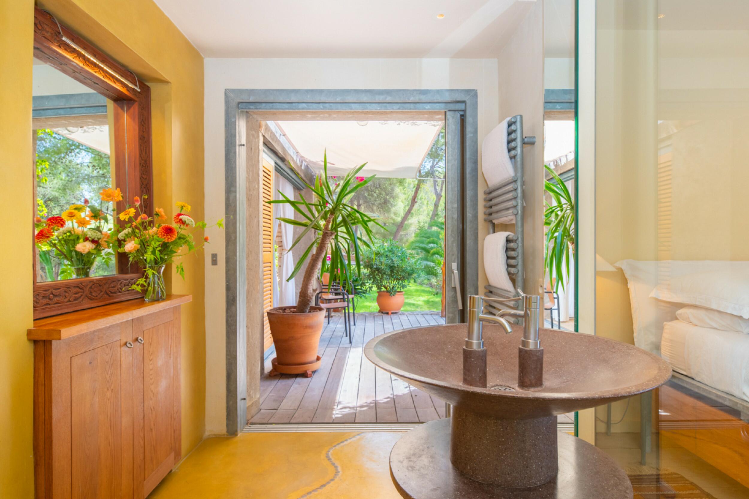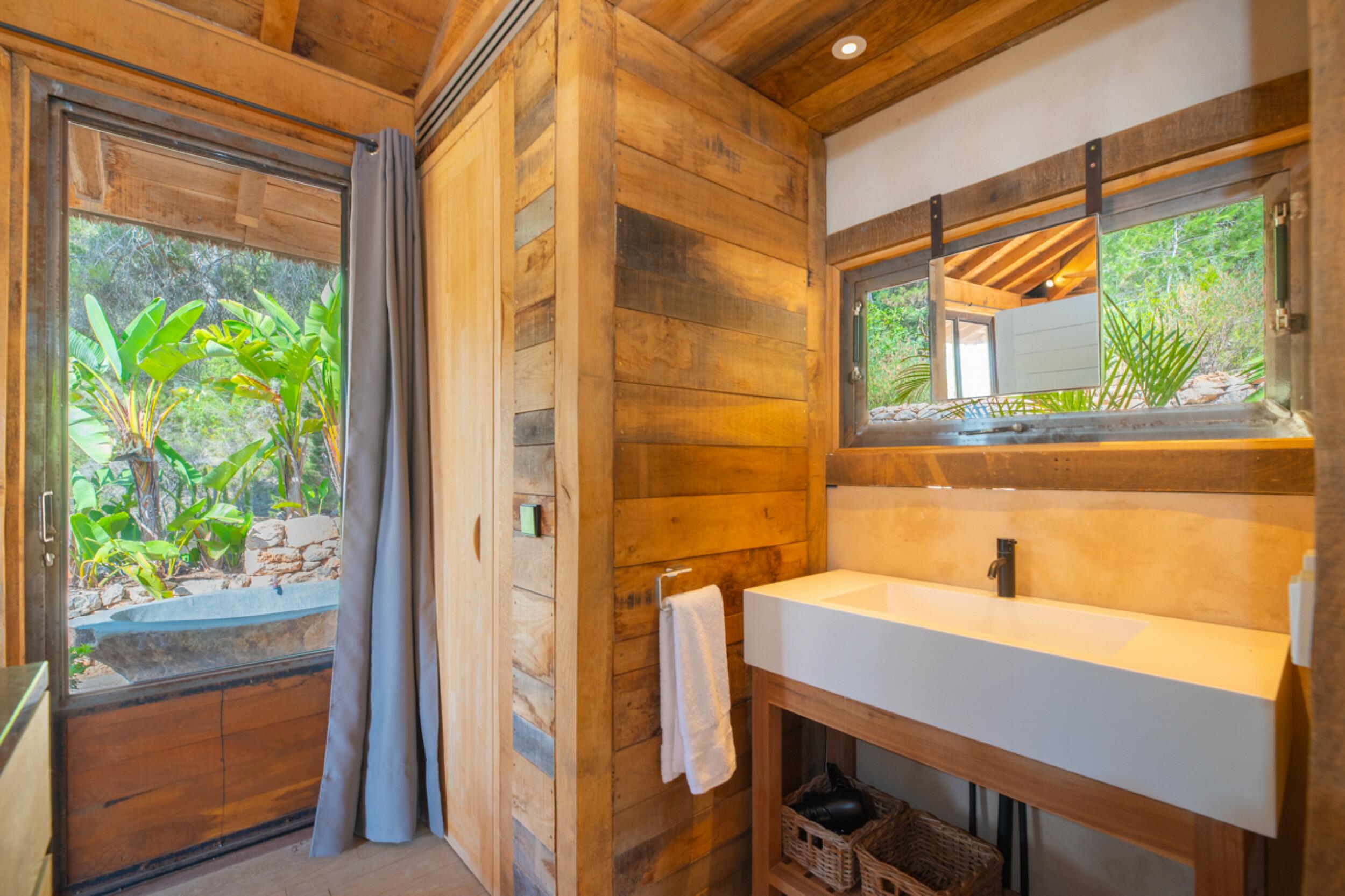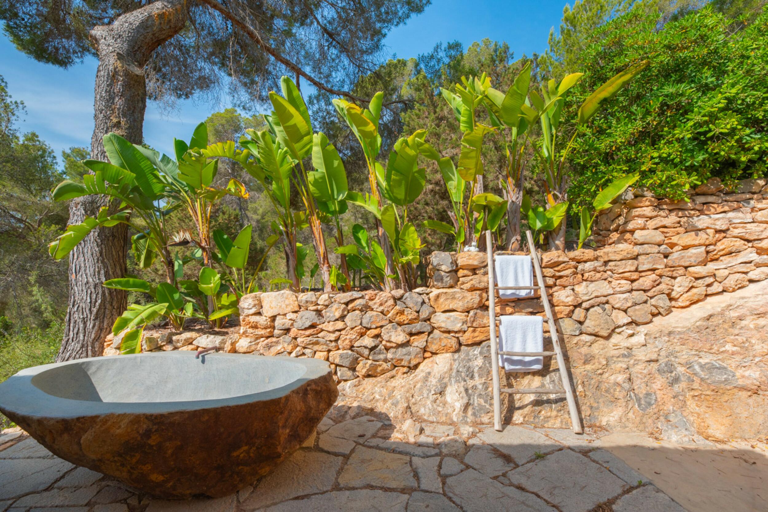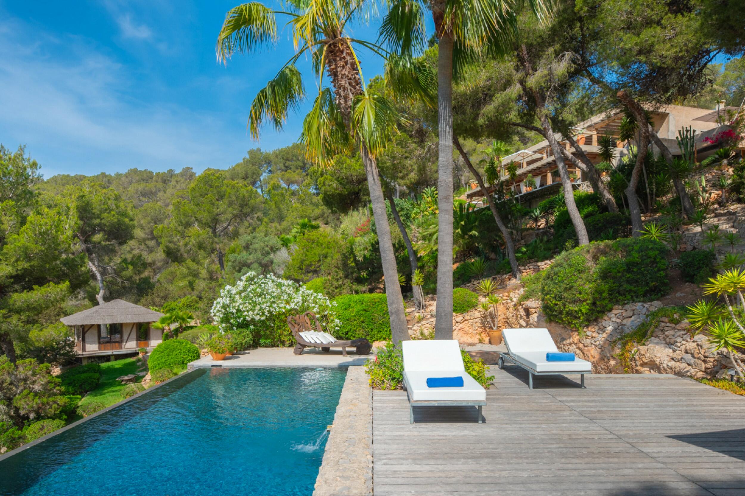 Luxusvilla im Tropenstil mit Jacuzzi und Meerblick in Es Cubells