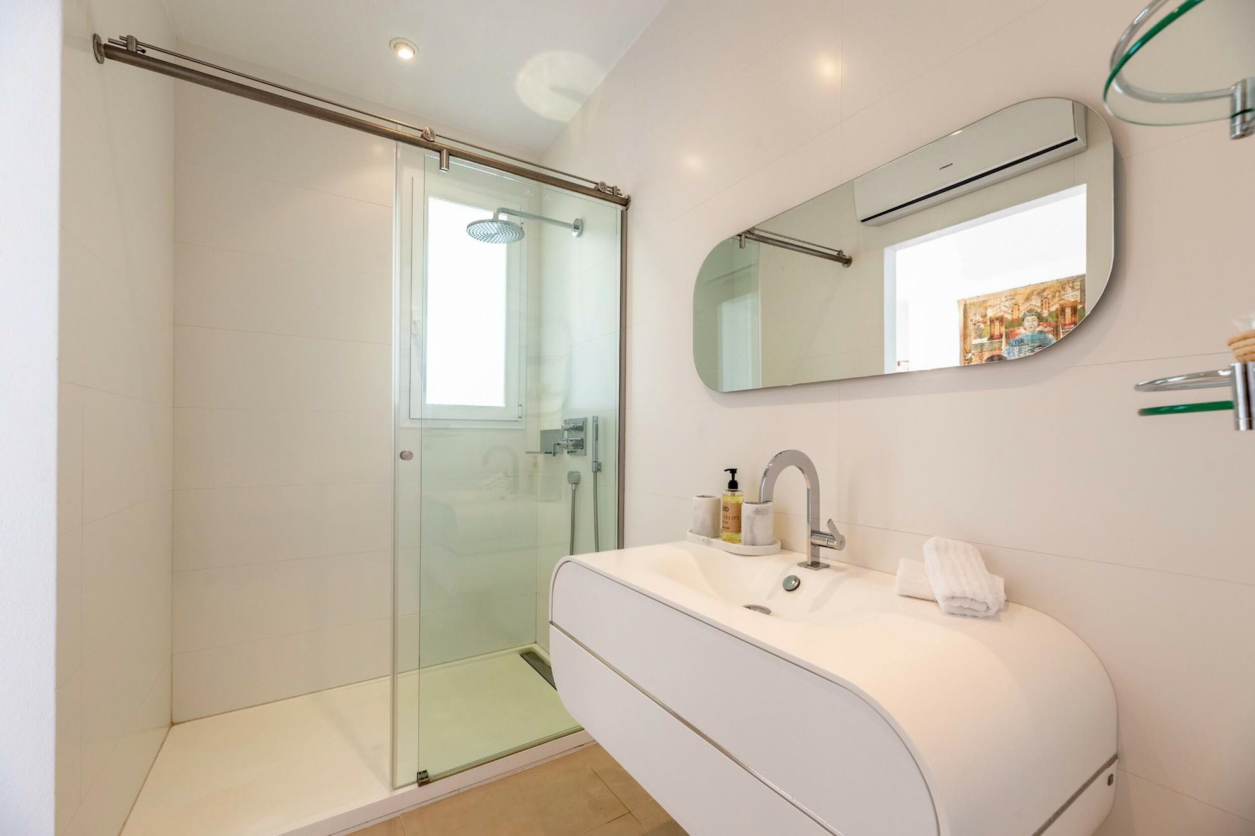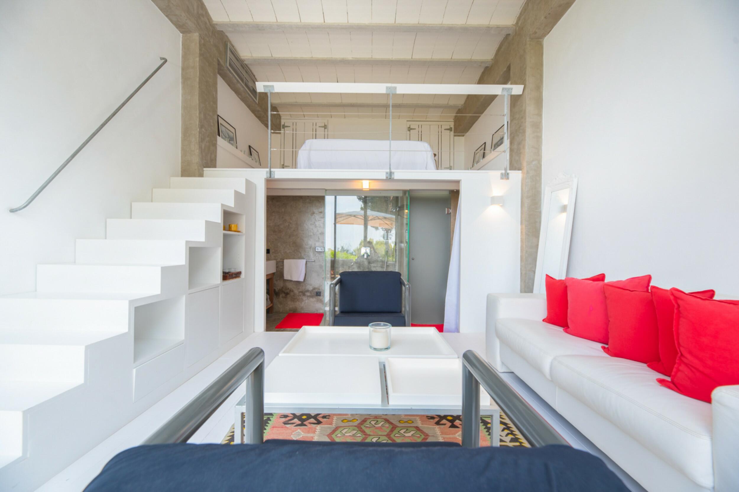 Moderne mediterrane Designvilla in Es Cubells mit Meerblick & 18 m Pool