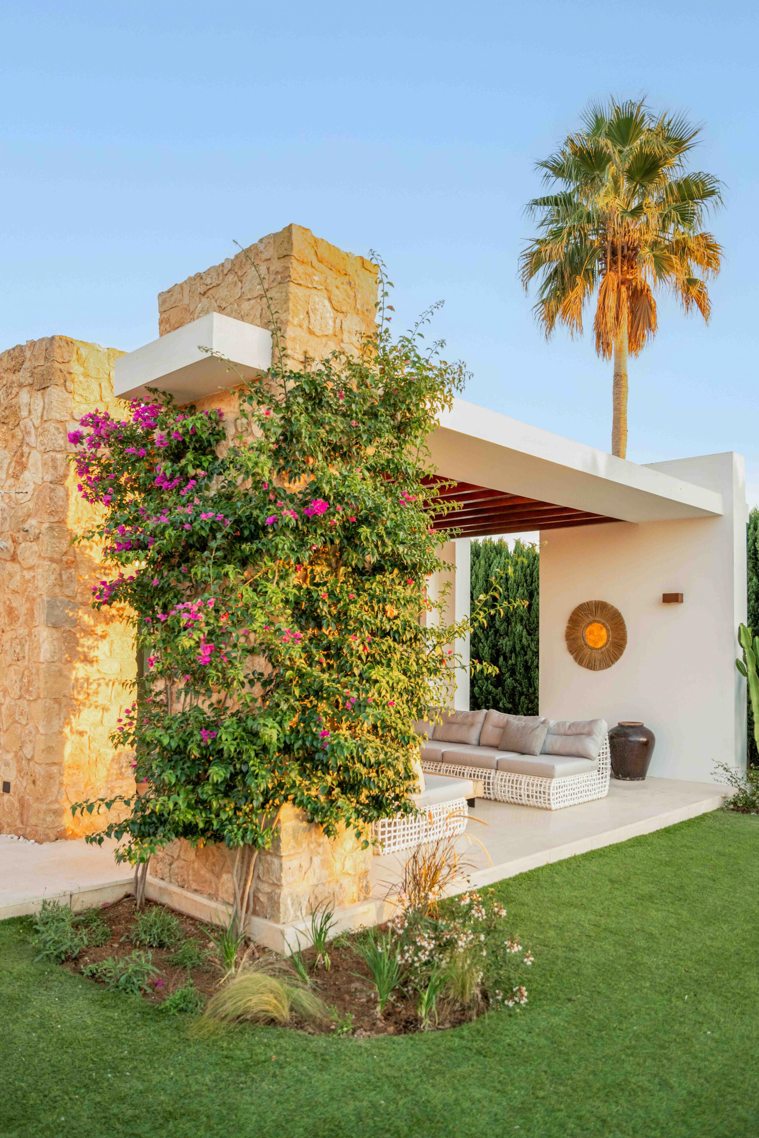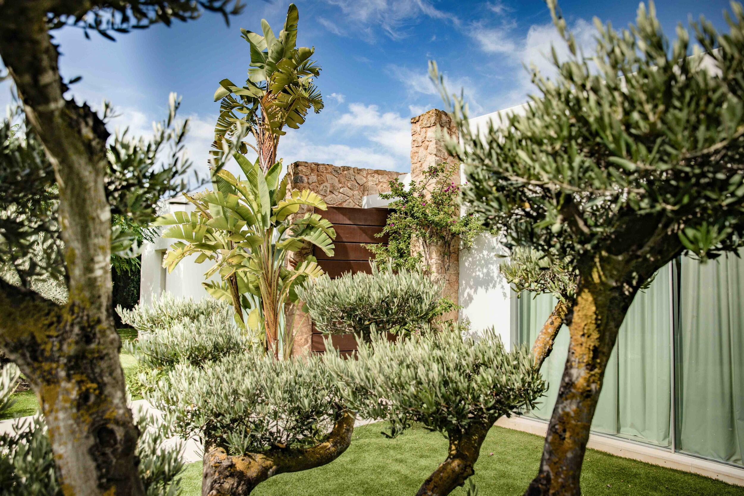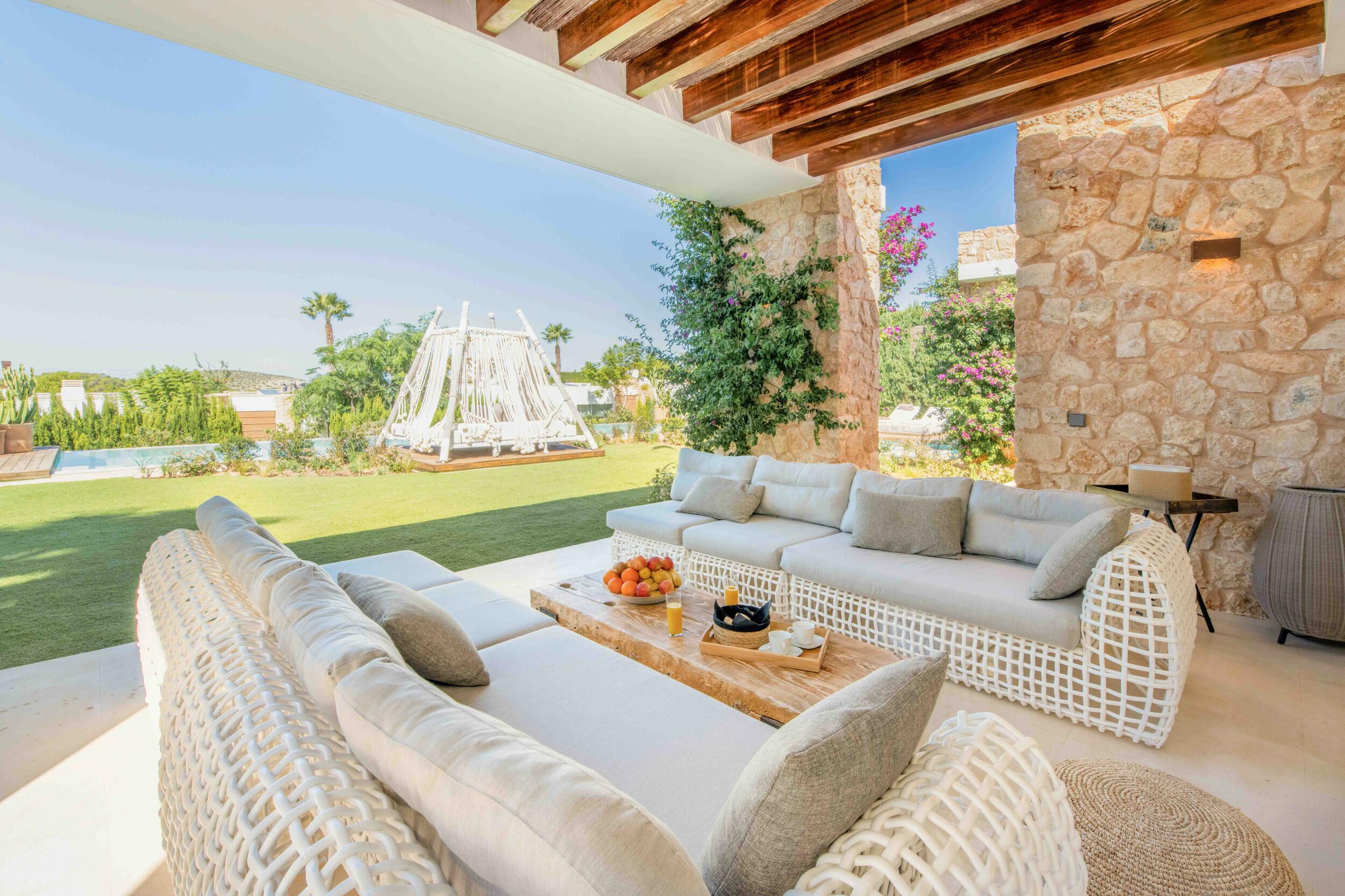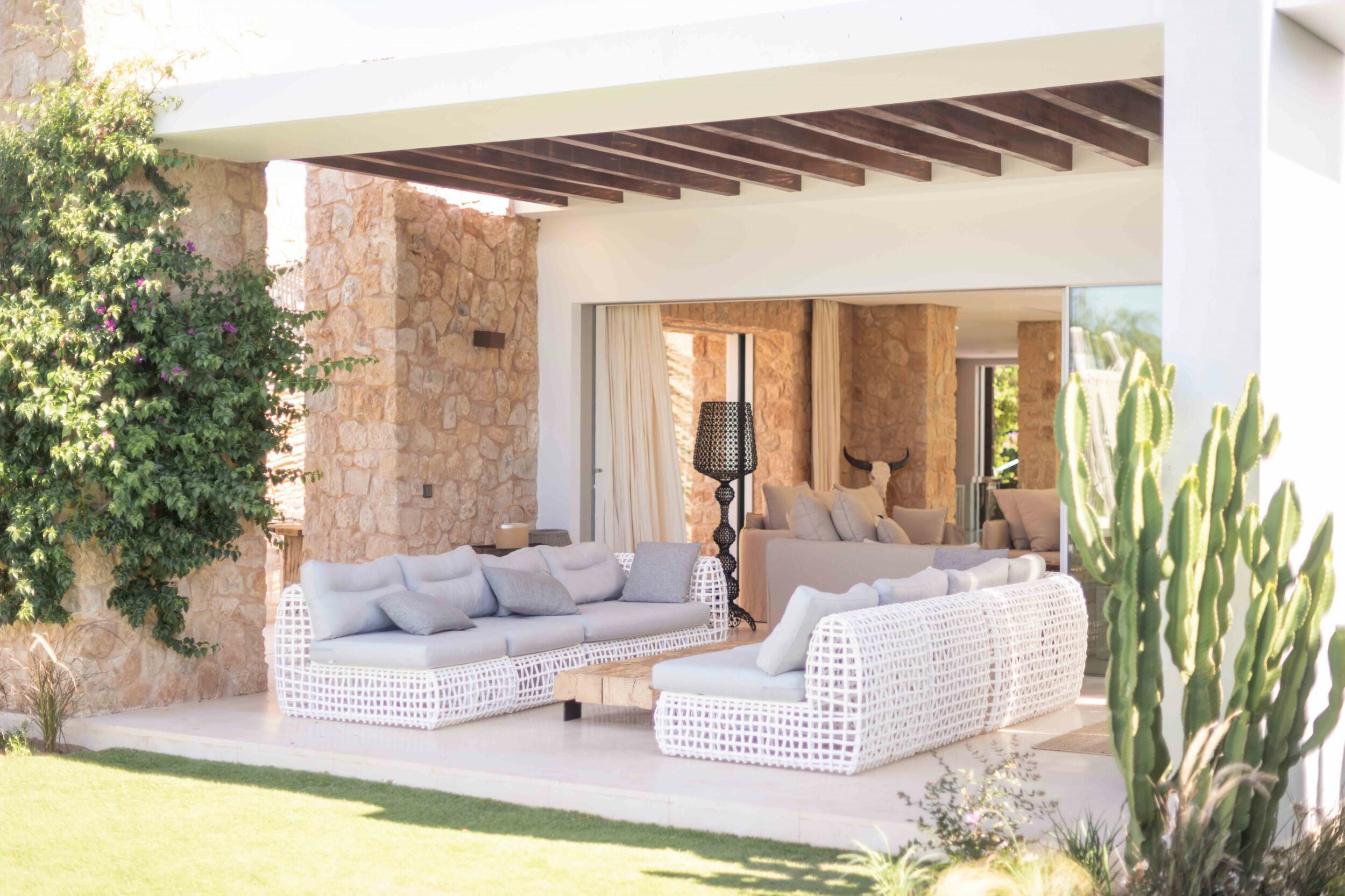 Eine wunderschön eingerichtete ibizenkische Villa in einem üppigen Garten
