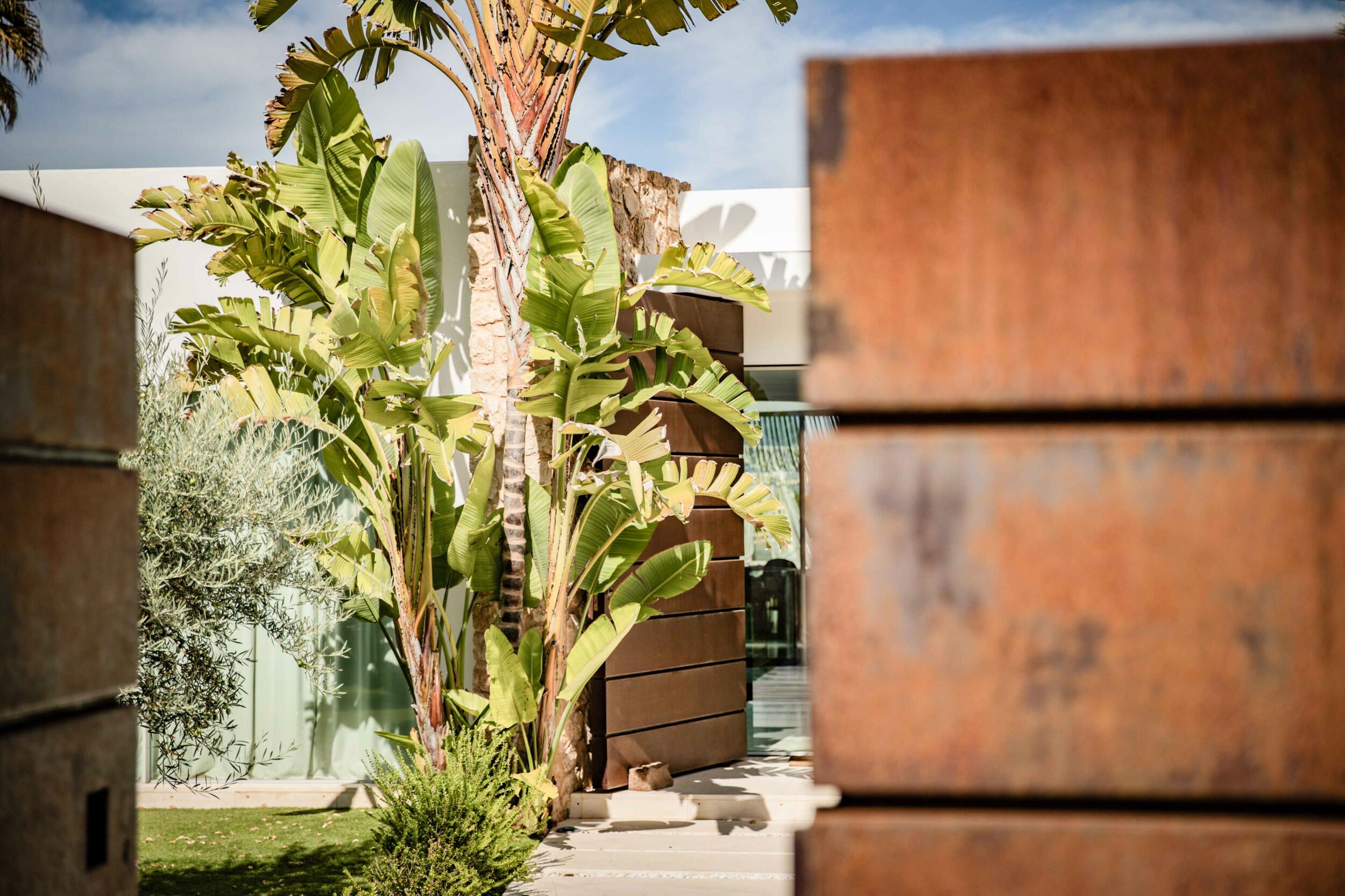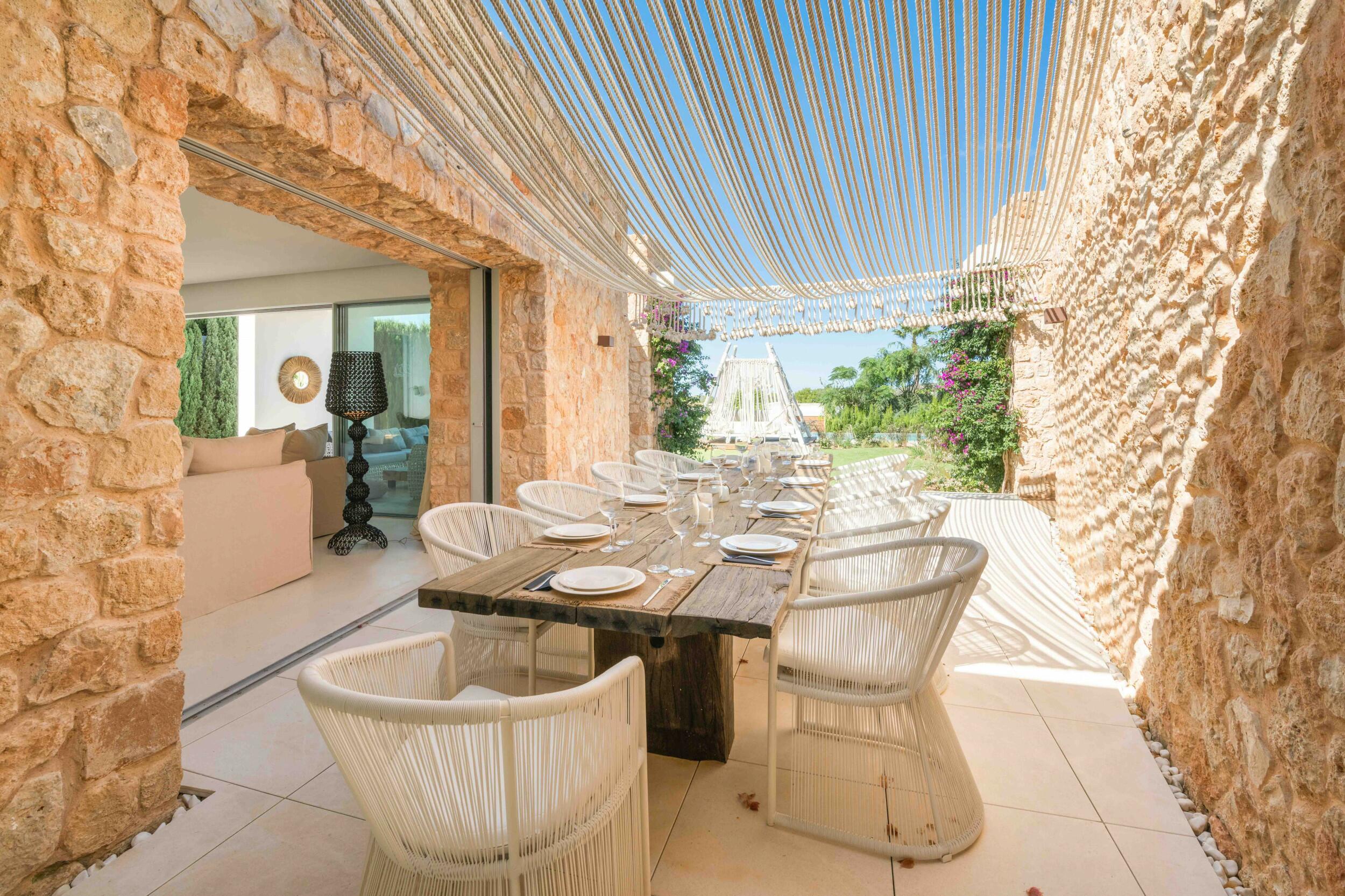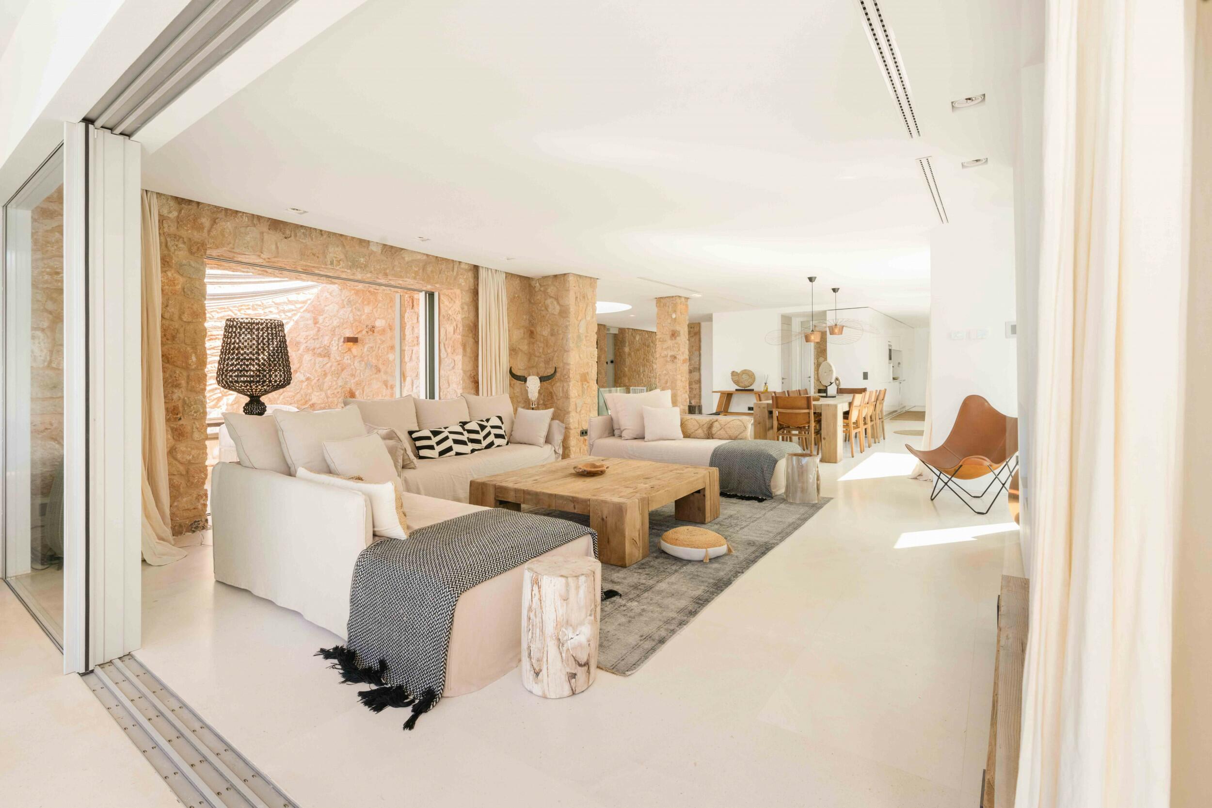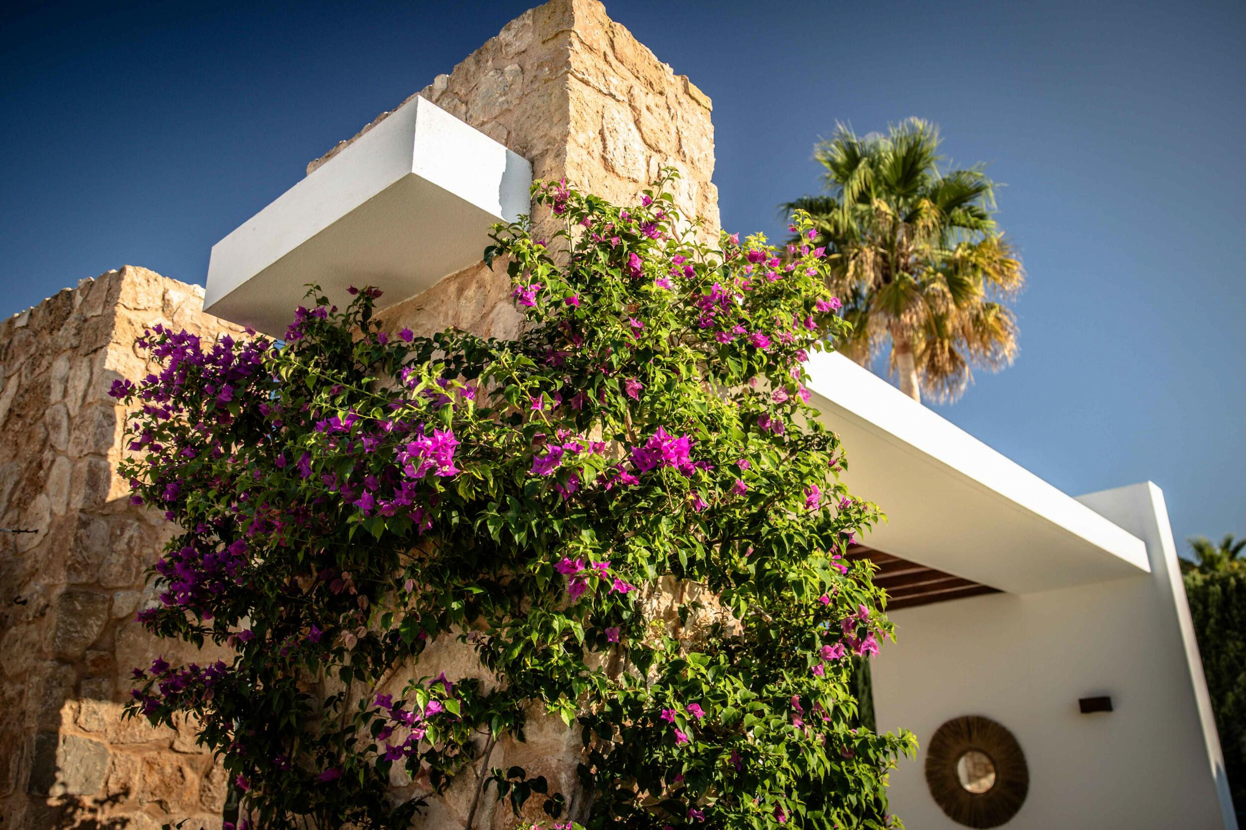 Eine wunderschön eingerichtete ibizenkische Villa in einem üppigen Garten