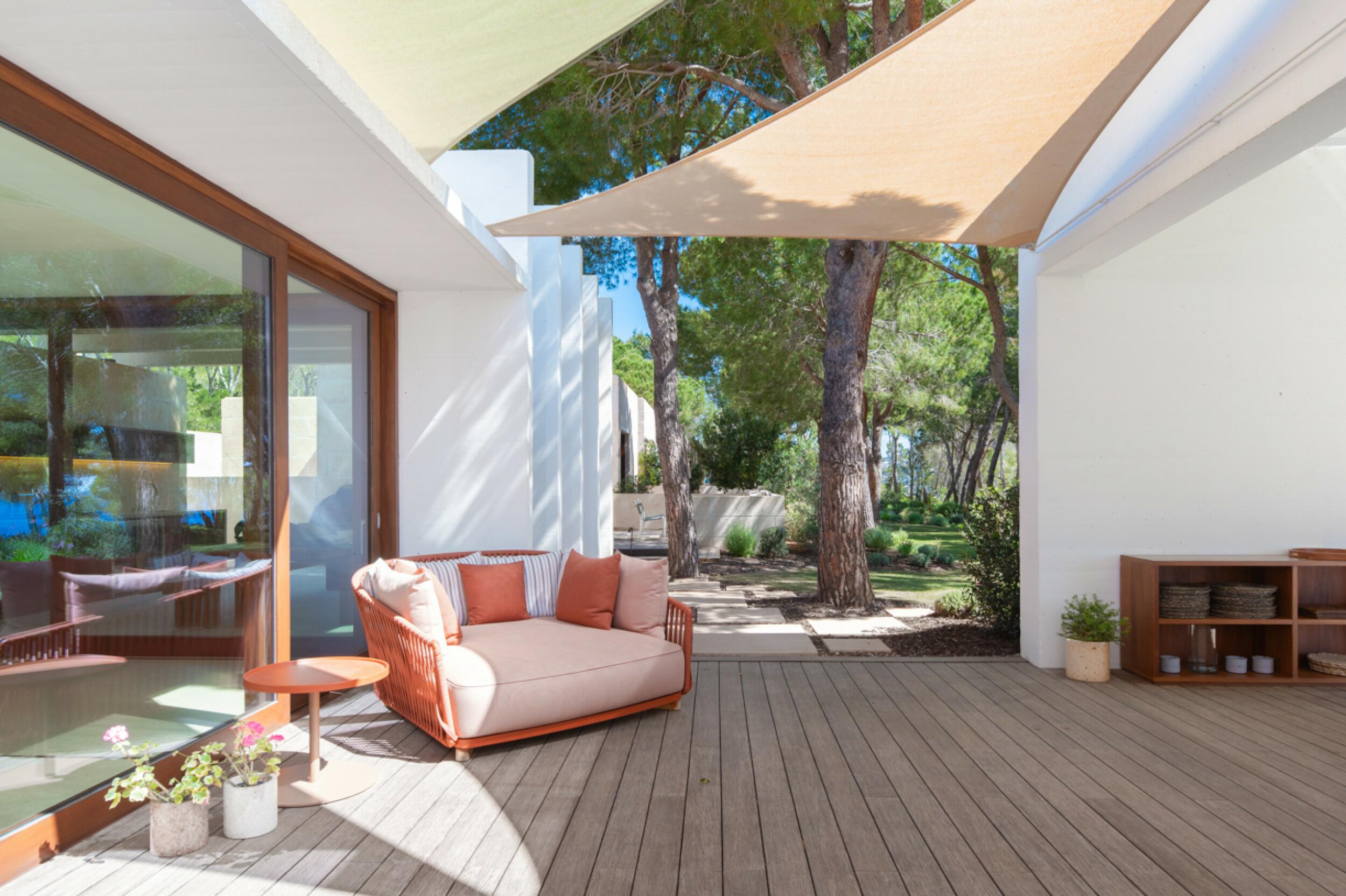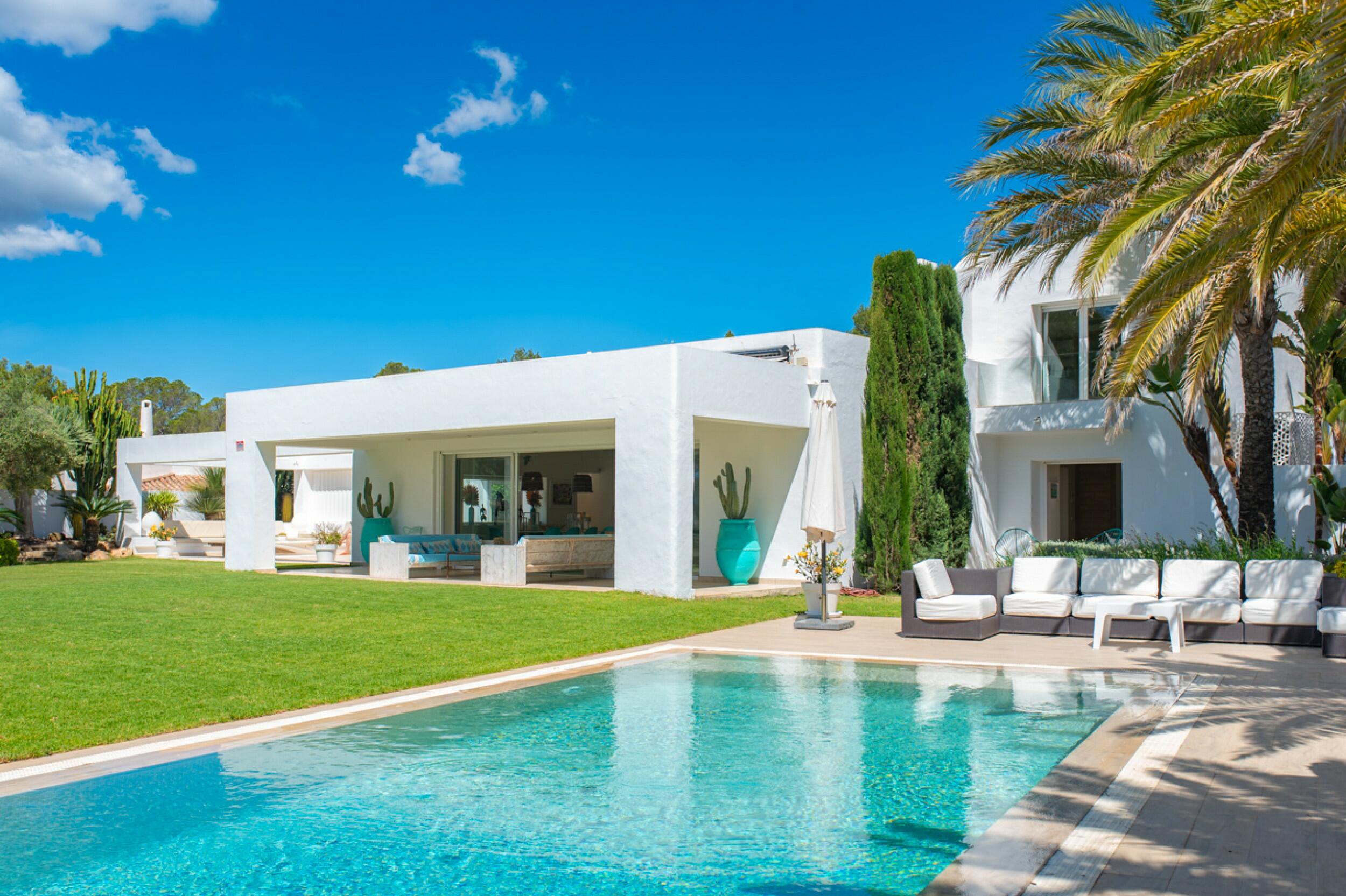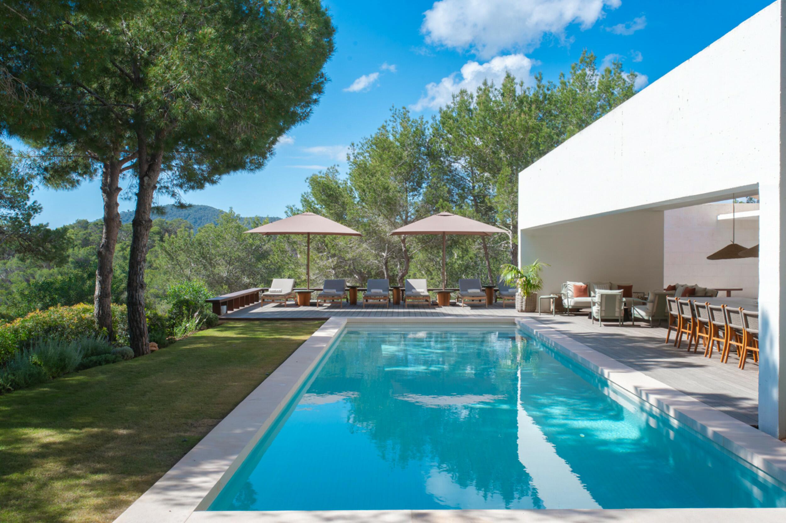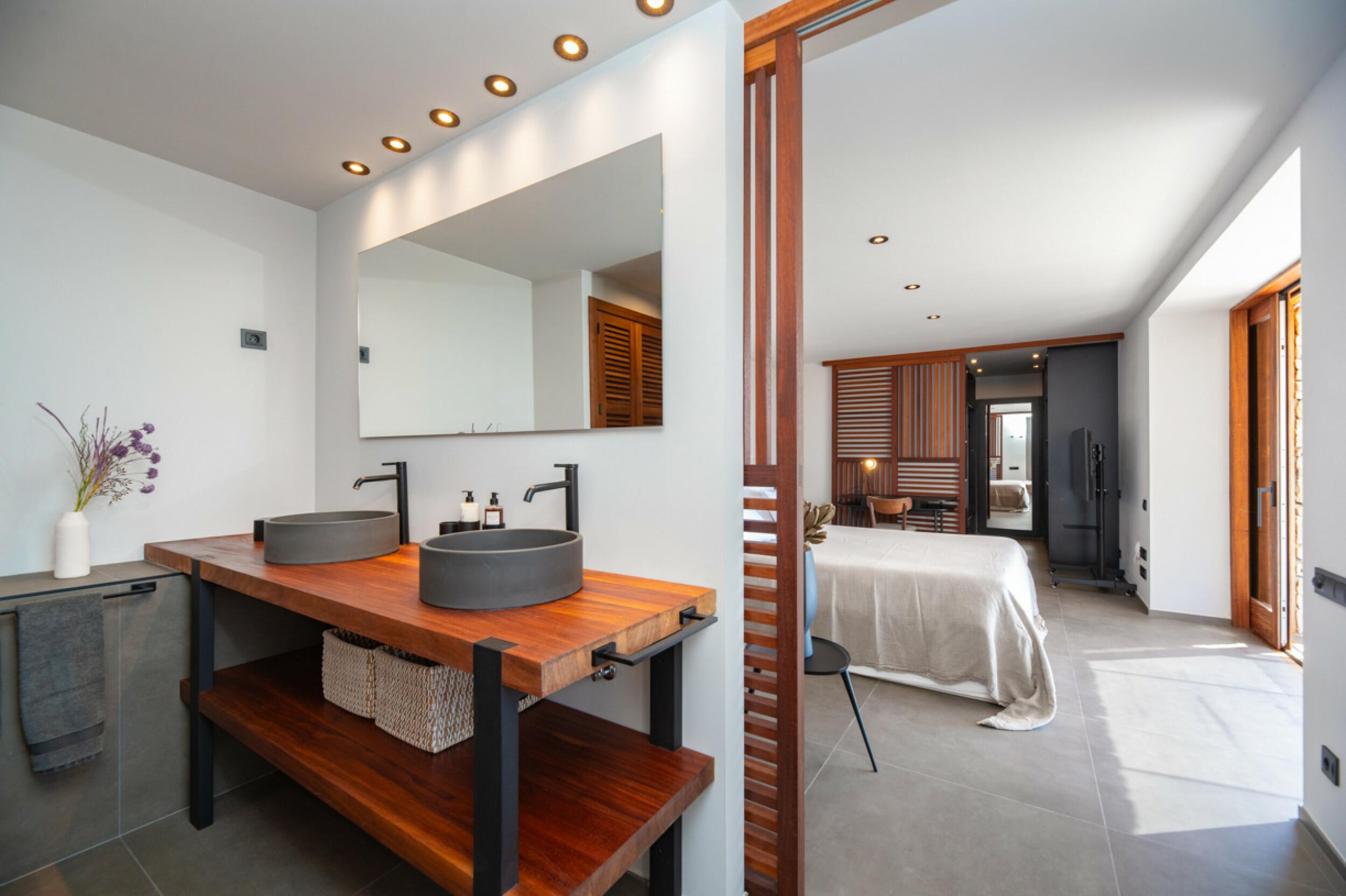 Moderne Ibiza-Villa in Porroig mit Rooftop-Bar, Gym und Salzwasserpool
