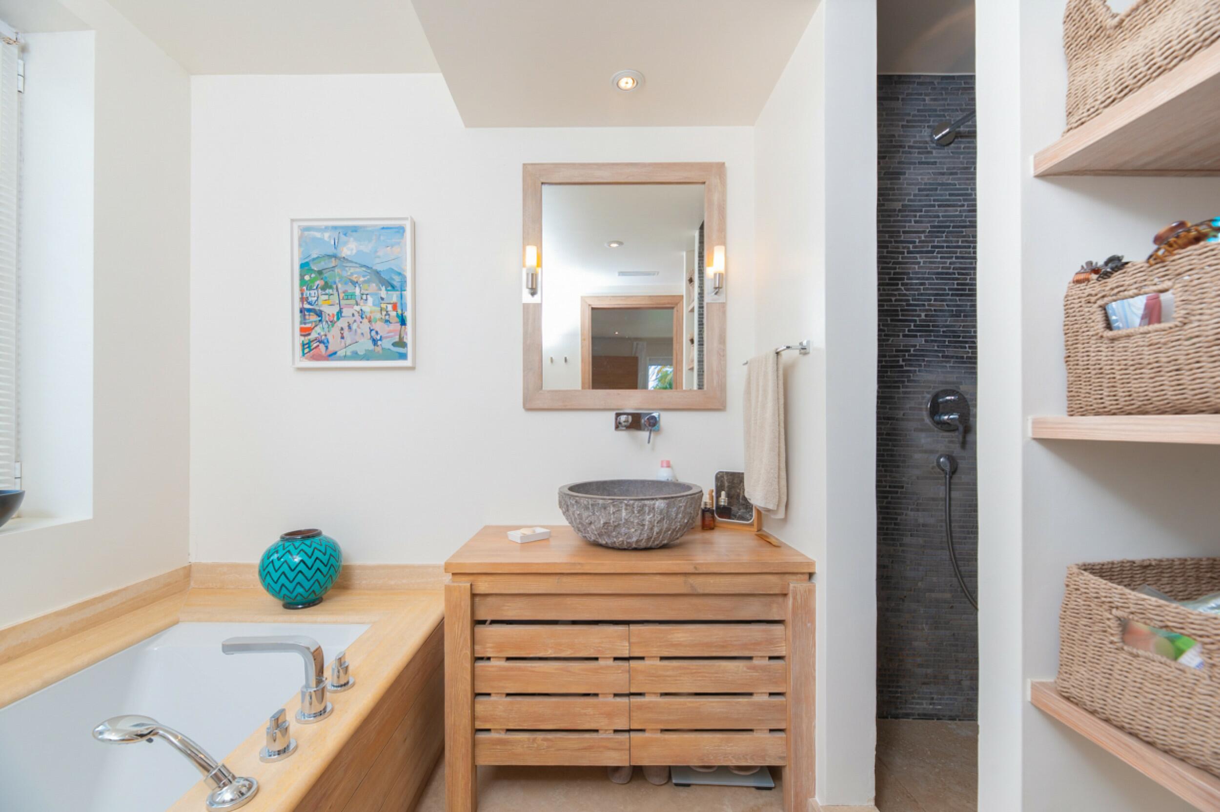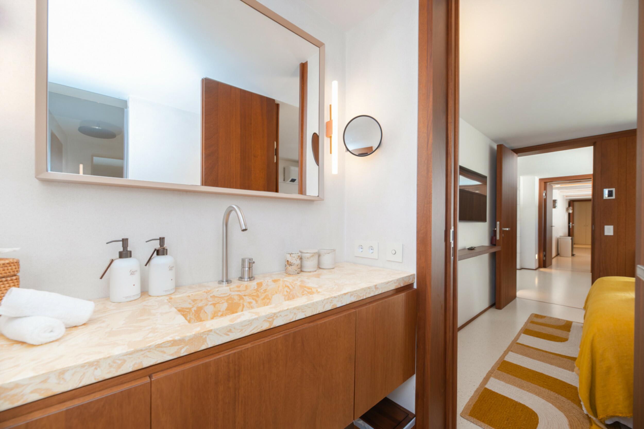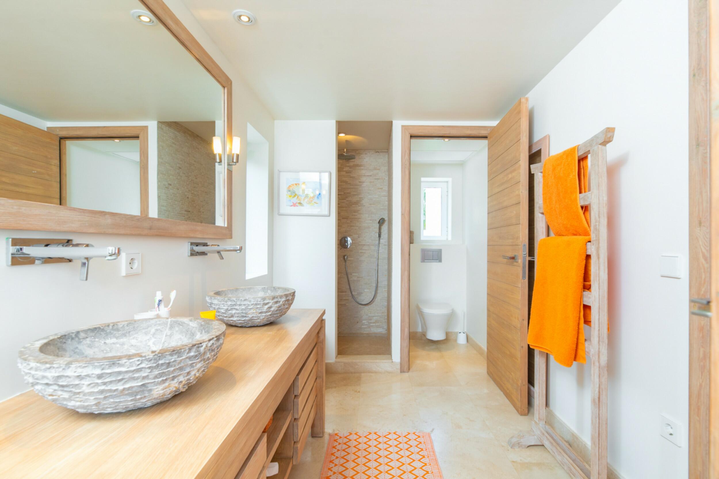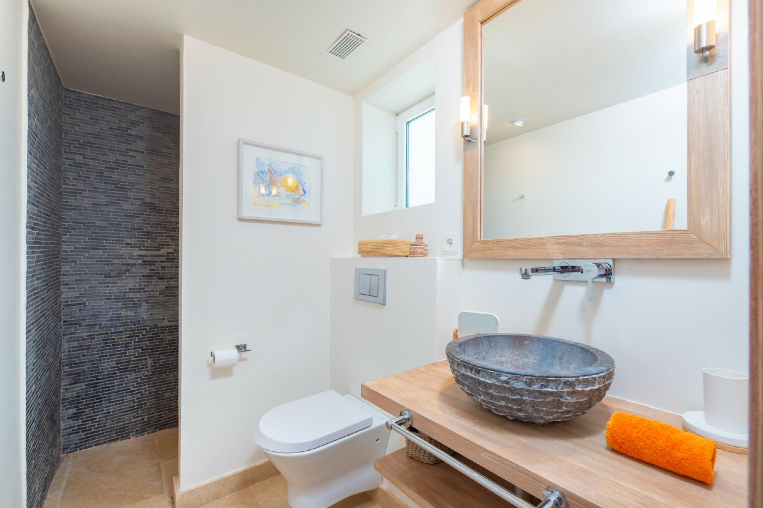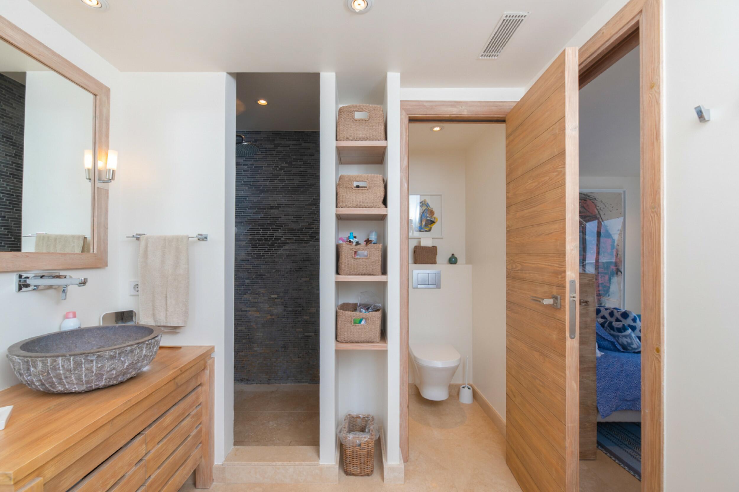 Moderne Ibiza-Villa in Porroig mit Rooftop-Bar, Gym und Salzwasserpool