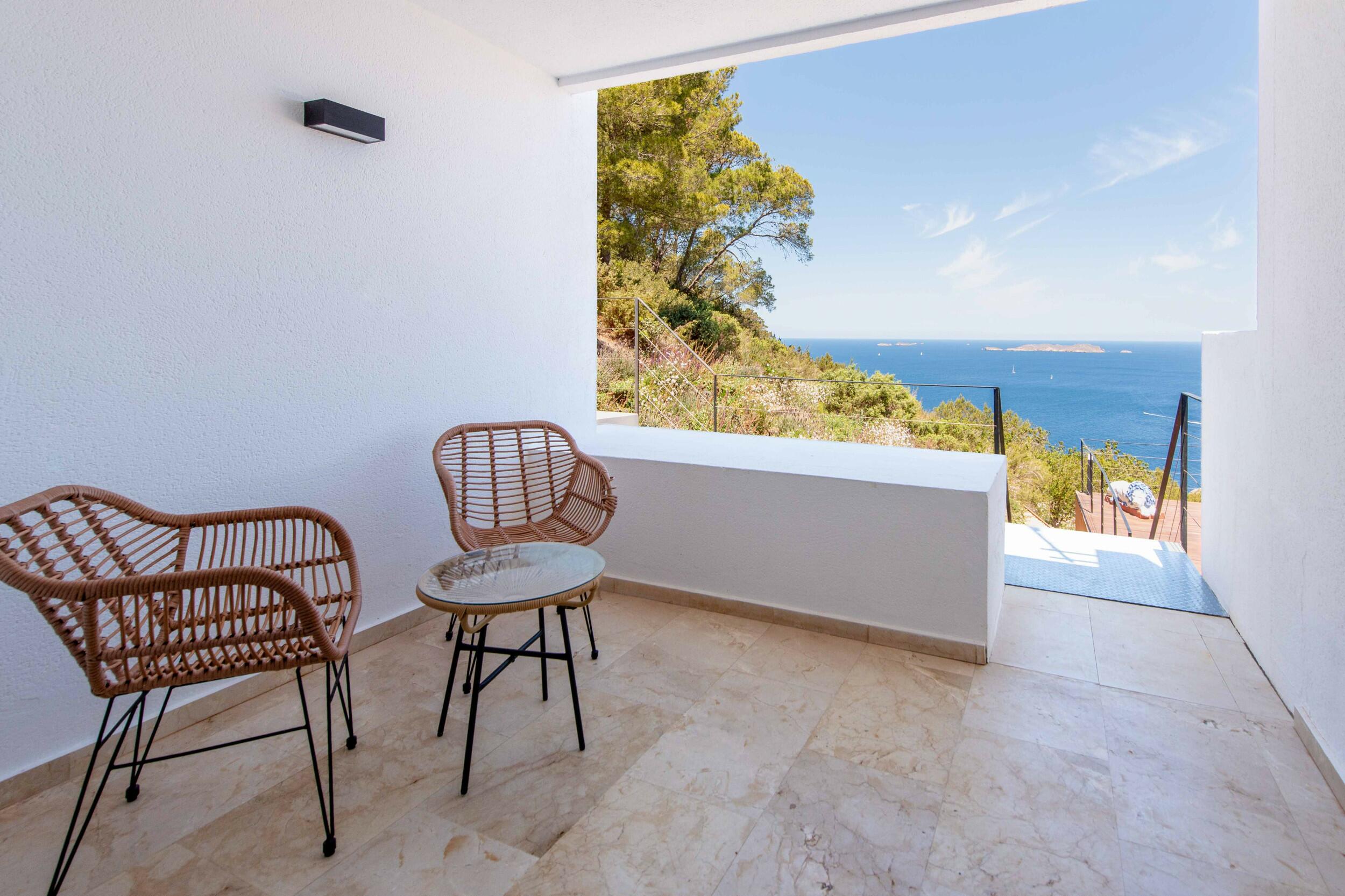 Villa mit weitem Meerblick in Cala Molí, nahe Cala Tarida & Cotton Beach Club
