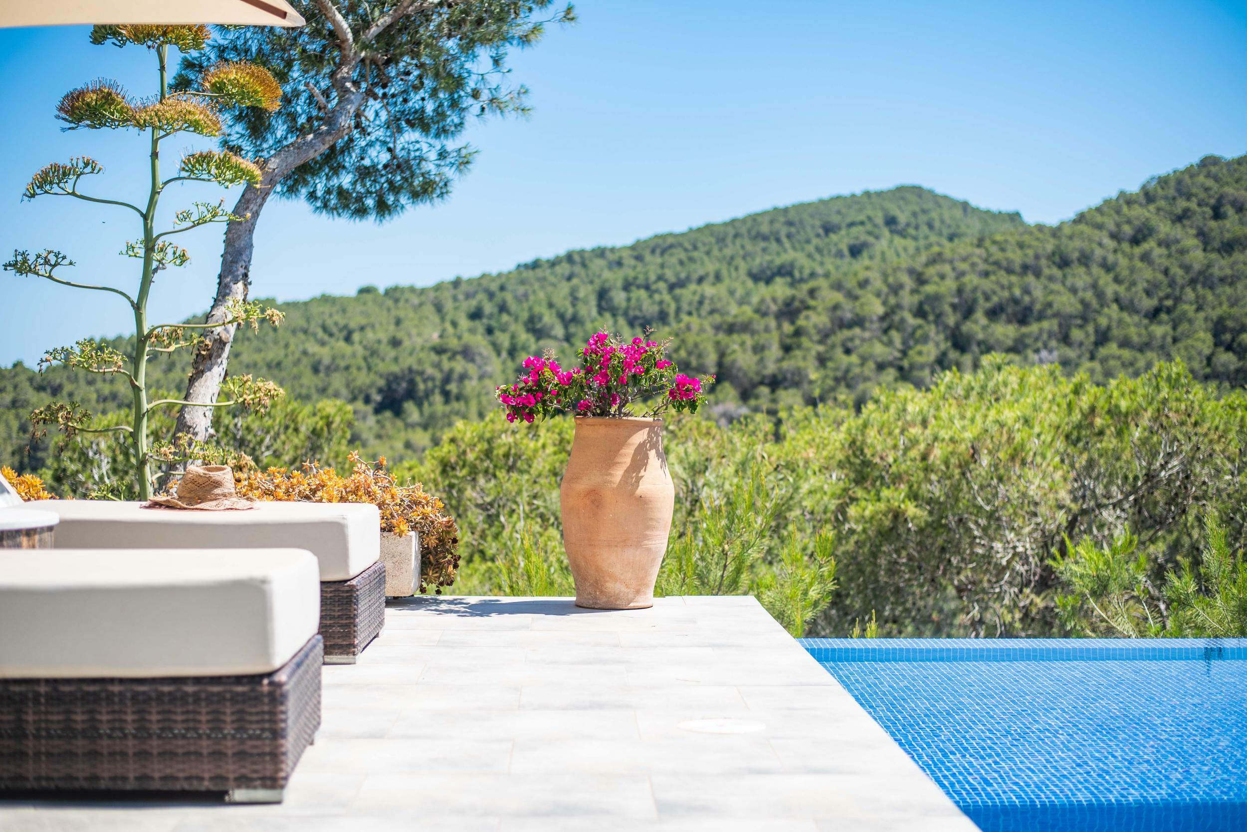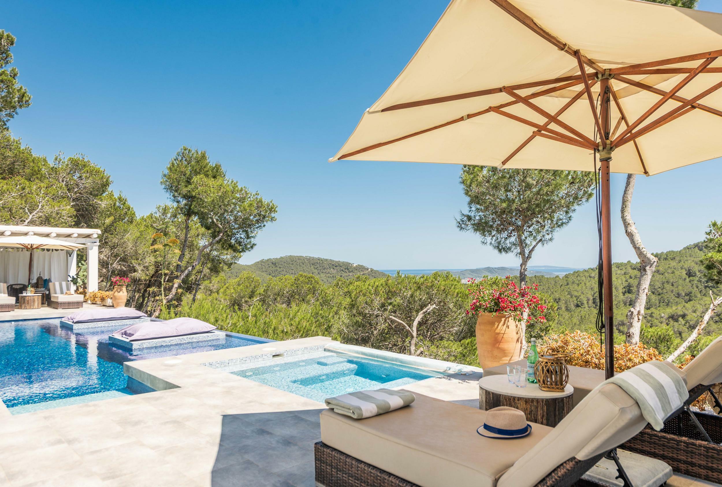 Moderne Hügelvilla auf Ibiza mit Infinity-Pool und Blick auf die Salinen