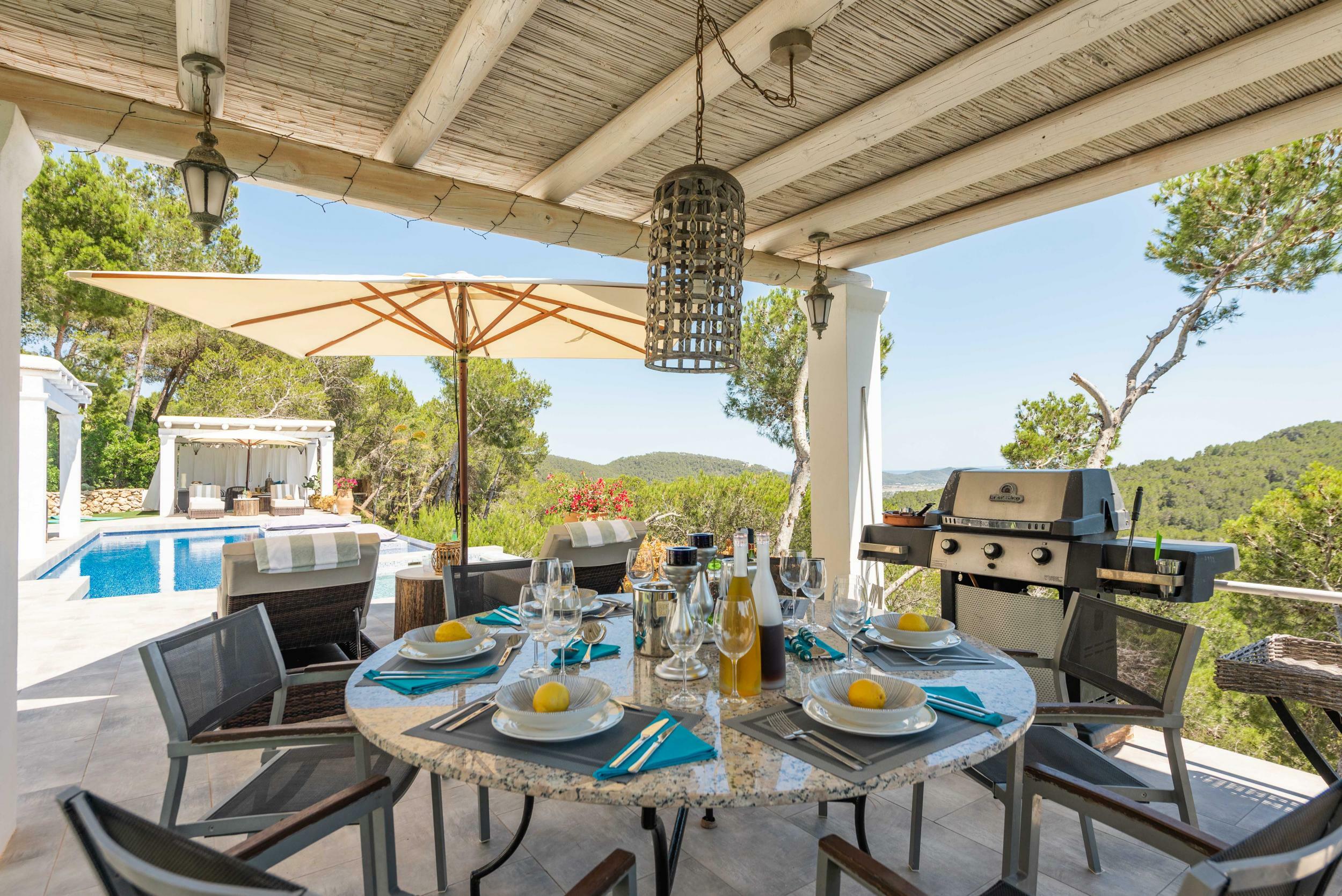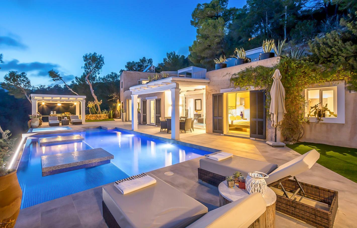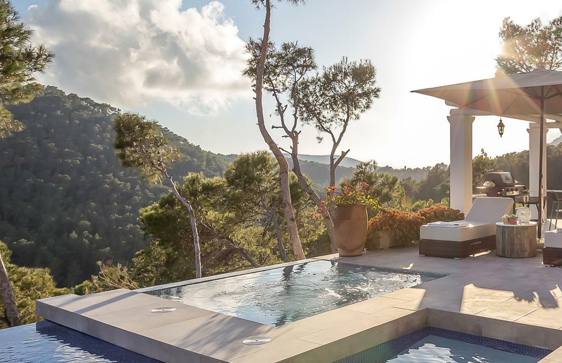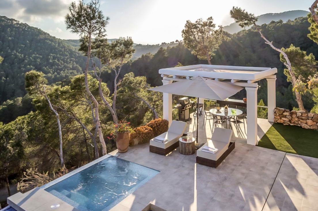Moderne Familienvilla in Nord-Ibiza mit Außenküche und Kinderbereich