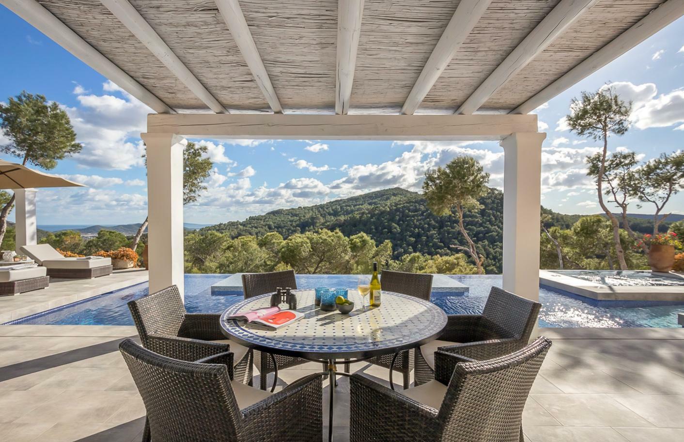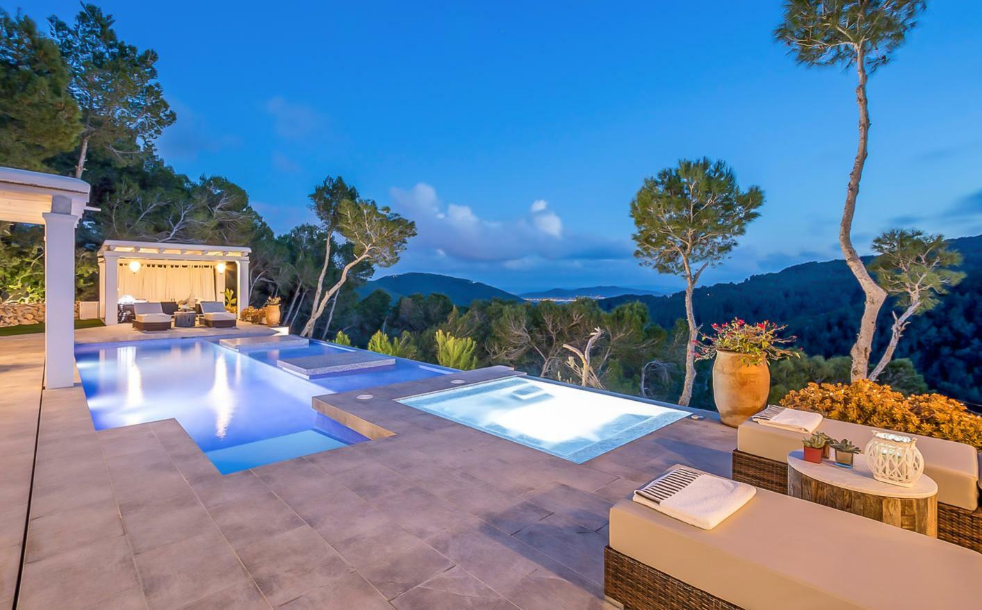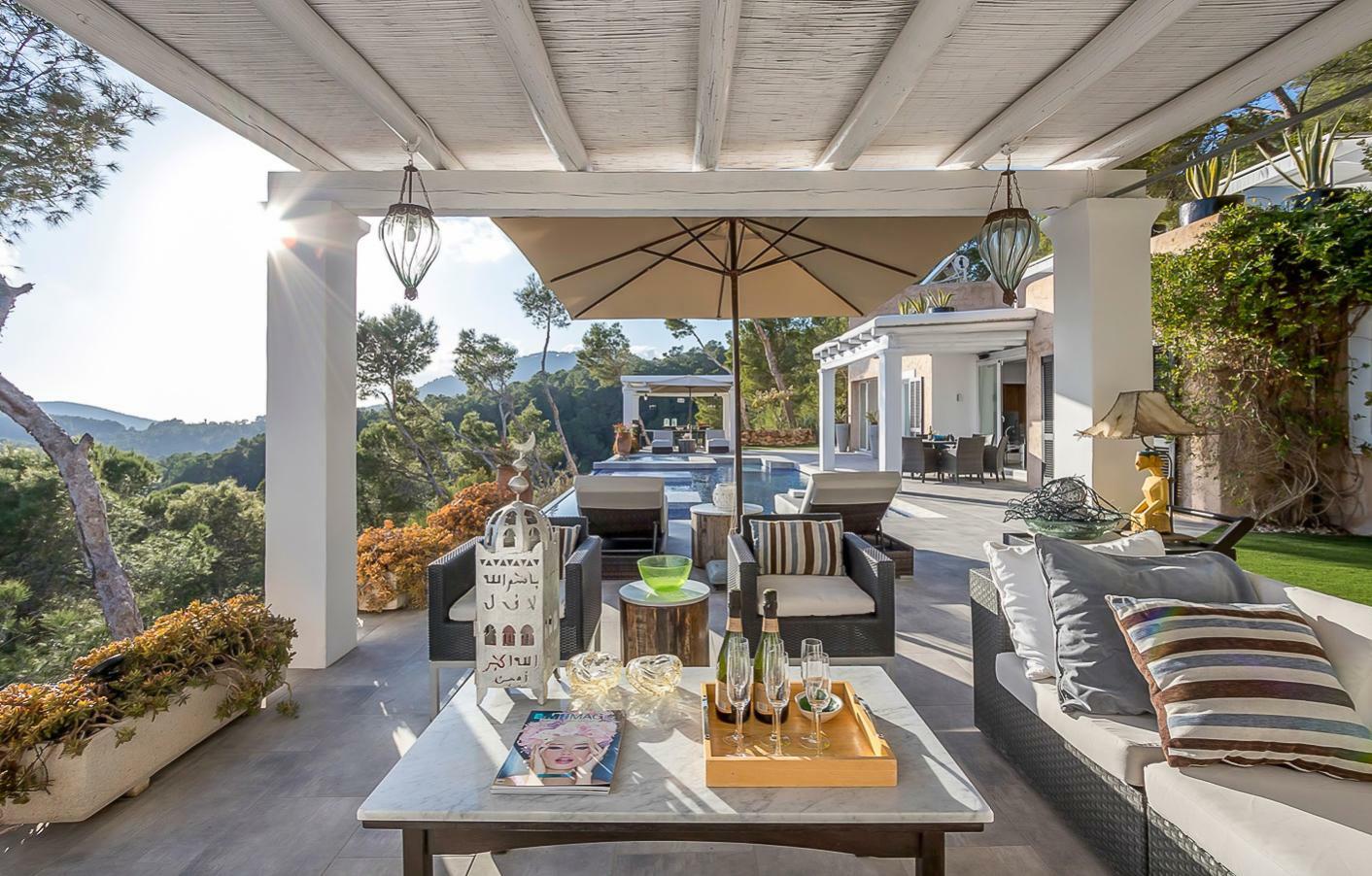 Moderne Familienvilla in Nord-Ibiza mit Außenküche und Kinderbereich