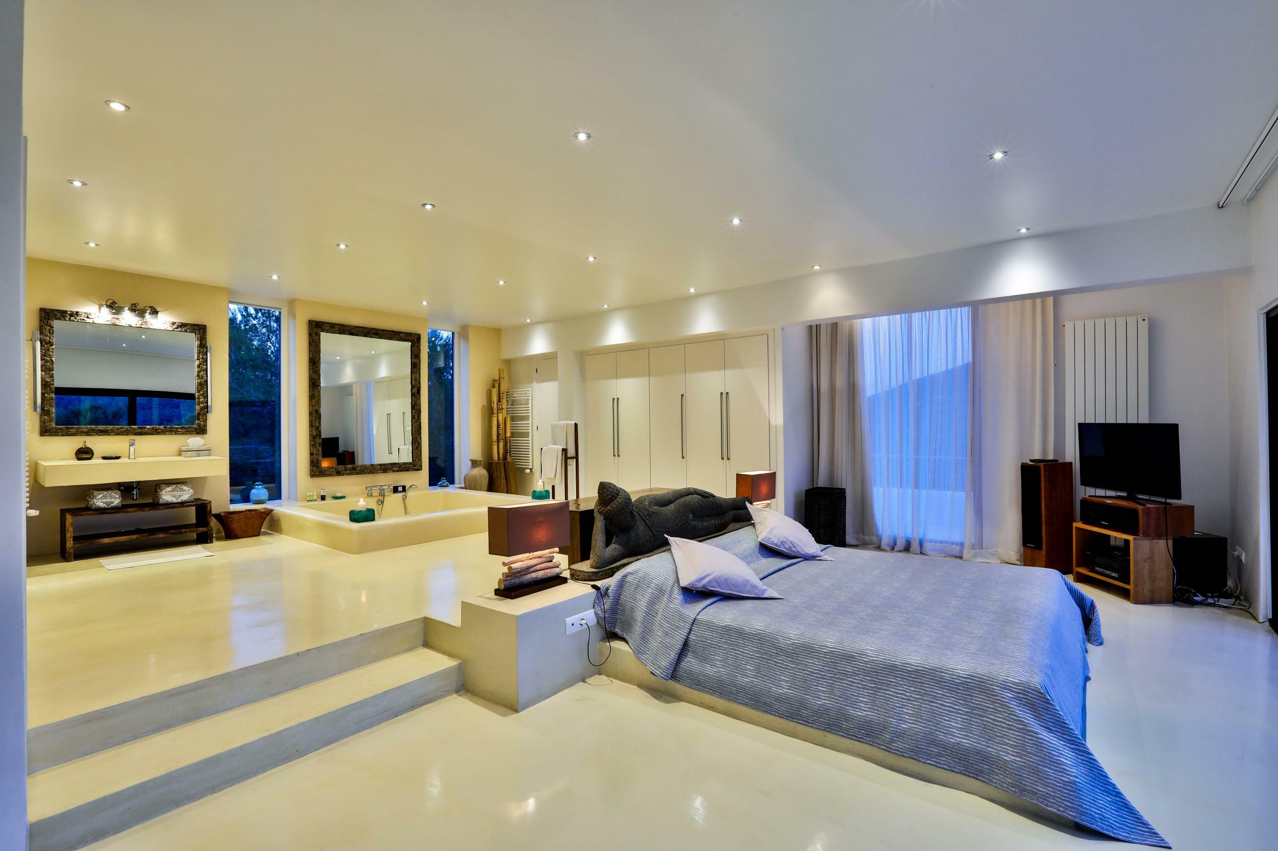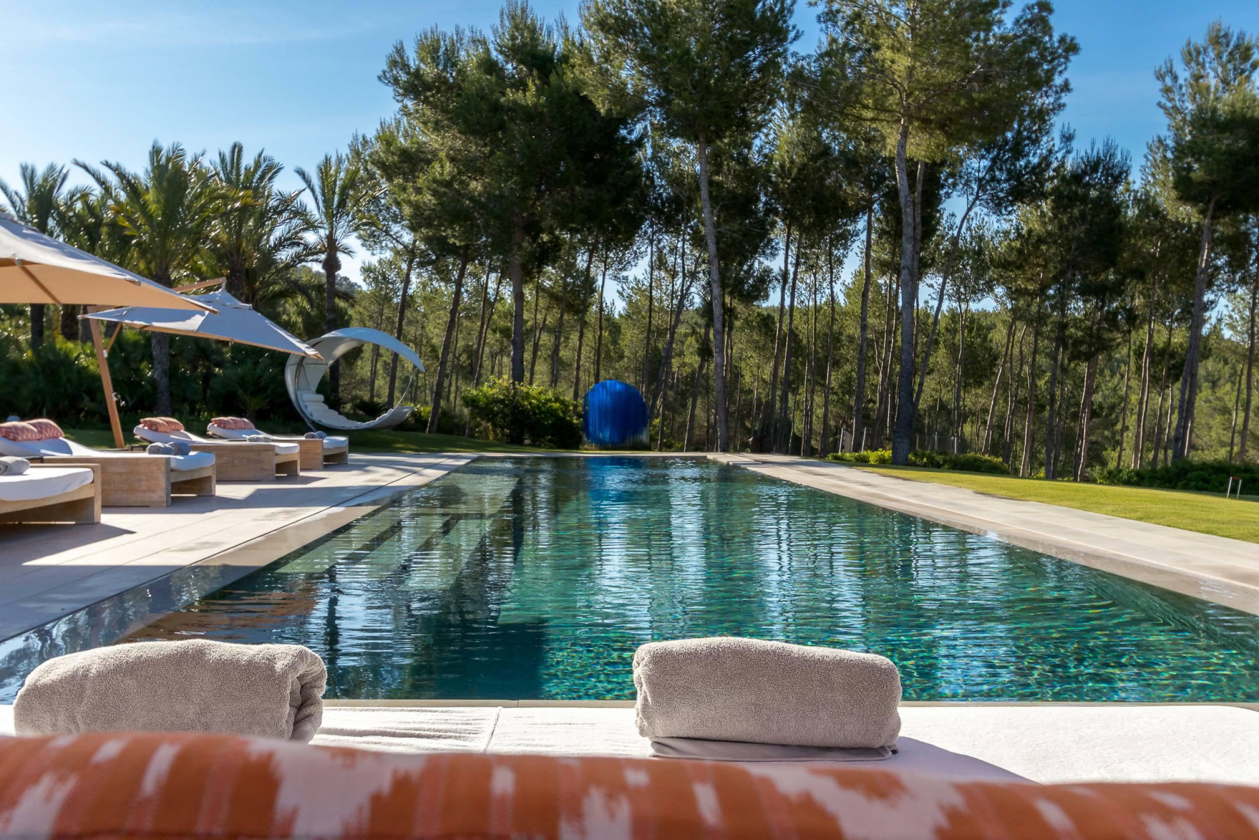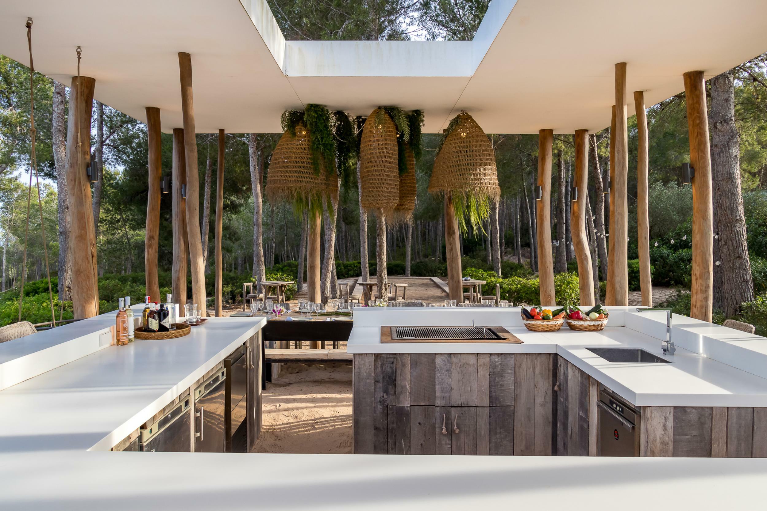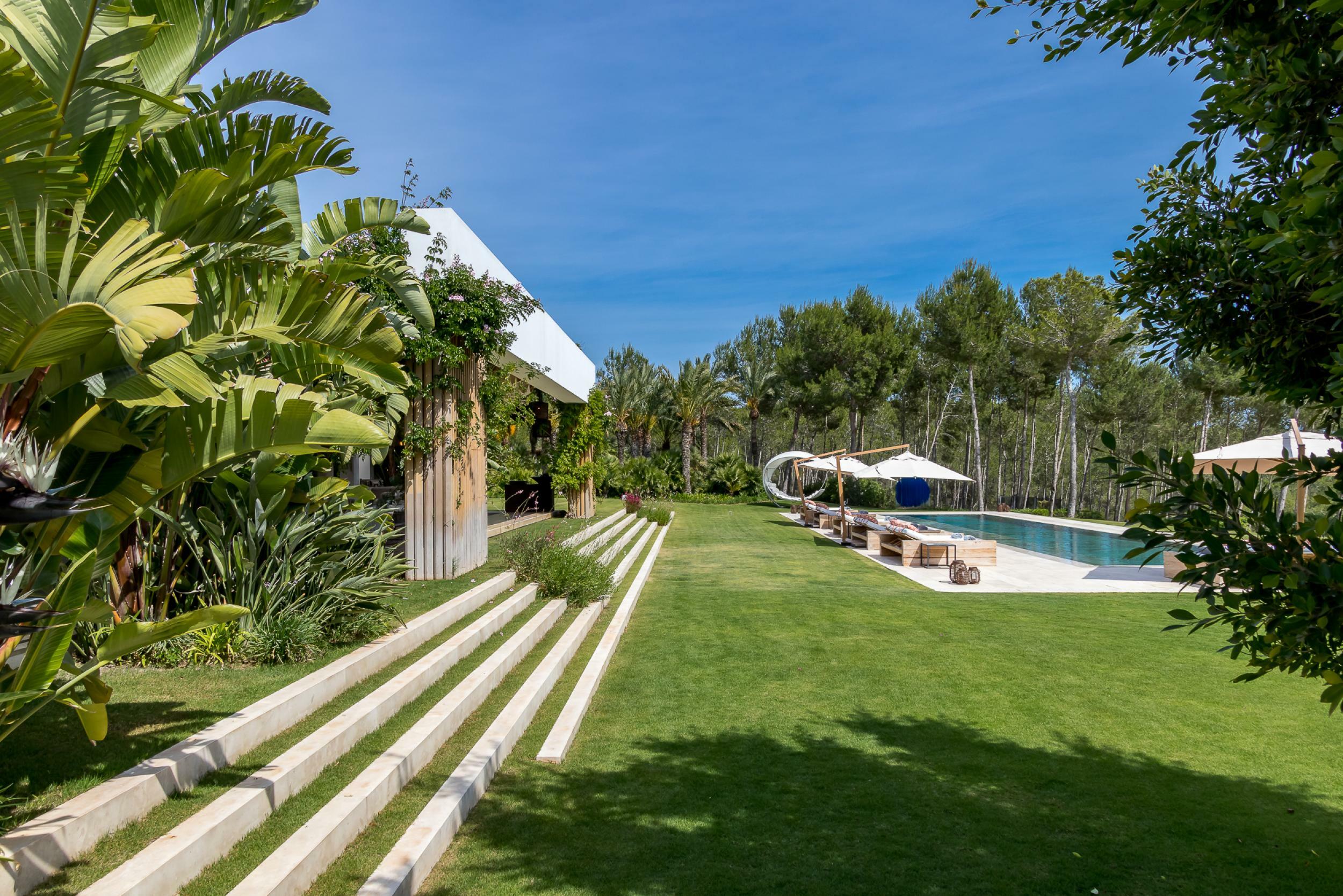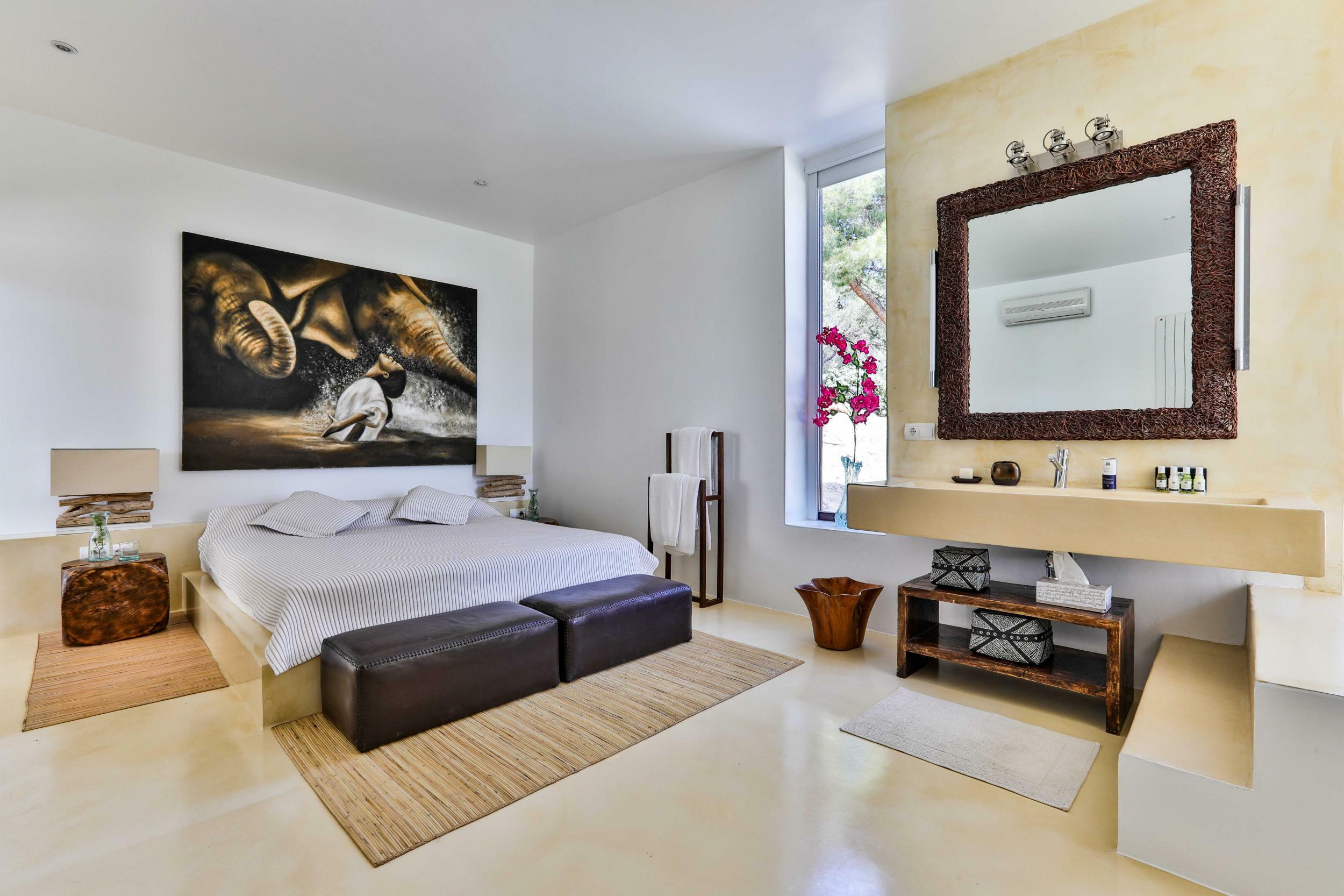 Die Unterkünfte in Cala Jondal ermöglichen eine ebenso perfekte 10- bis 15-minütige Fahrt nach Ibiza-Stadt, zum Flughafen in Sant Jordi sowie nur wenige Minuten zu den umliegenden Buchten und Fischerbuchten von Sa Caleta und Es Bol Nou, für die entspannenderen und intimen familienfreundlichen Strände. Ein typisches modernes modernes Haus zum Verkauf in Cala Jondal im Wert von 4.200.000 € würde ein 5.500 m2 großes Grundstück, eine beeindruckende Konstruktion von 359 m2 und vier Doppelzimmer mit eigenem Bad einnehmen. Dieses besondere Anwesen, Can Nena, bietet einen Blick auf die spektakuläre Insel Formentera und verfügt über eine große Terrasse, einen 12×5 großen Infinity-Pool, einen Speisesaal im Freien und eine Reihe von Ruhezonen, in denen man die Aussicht genießen kann.