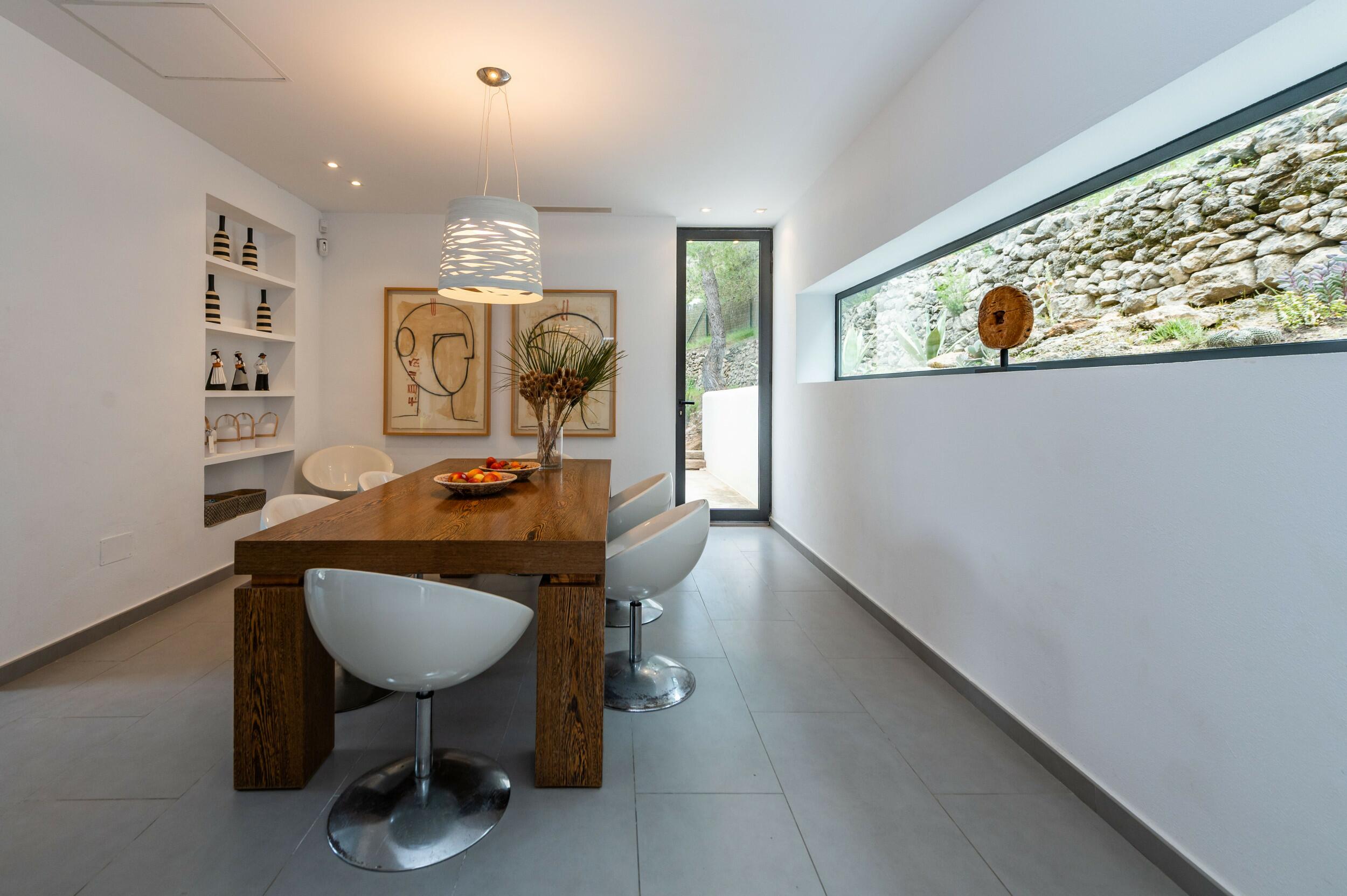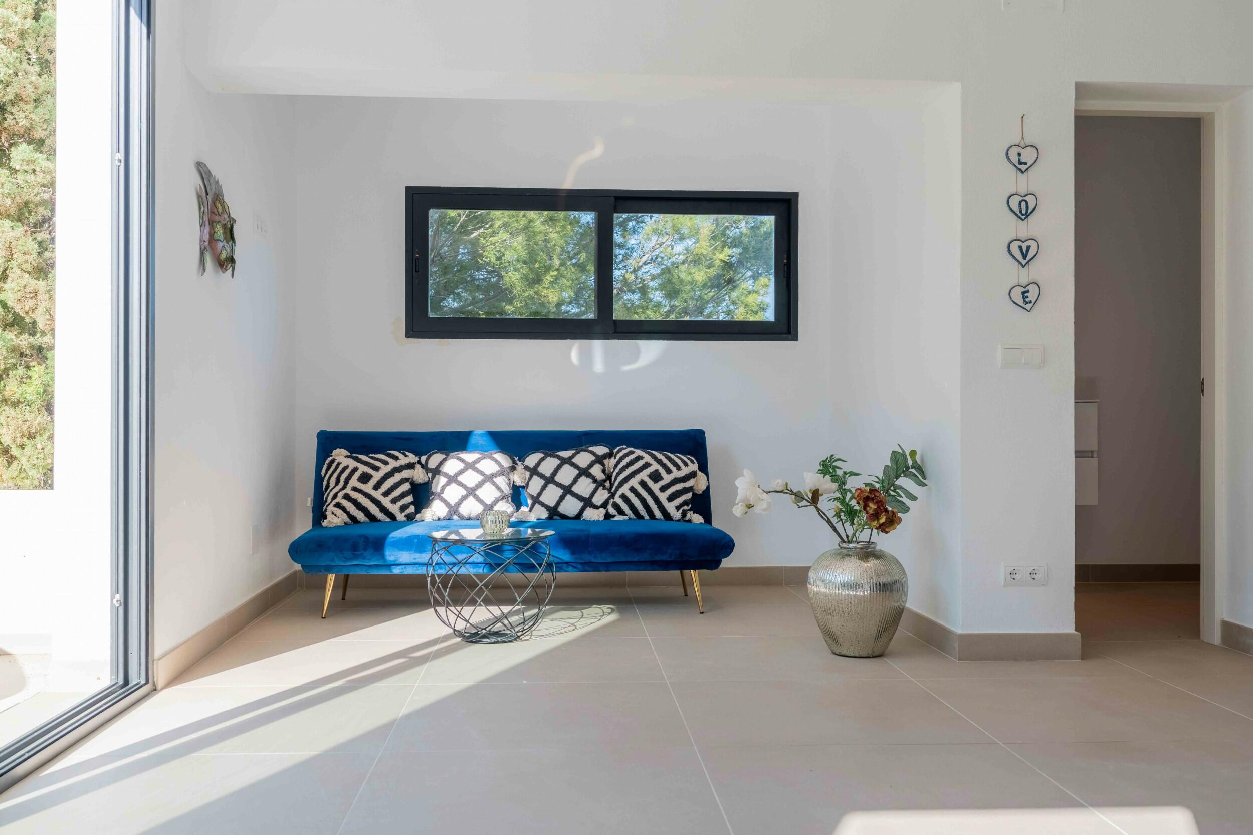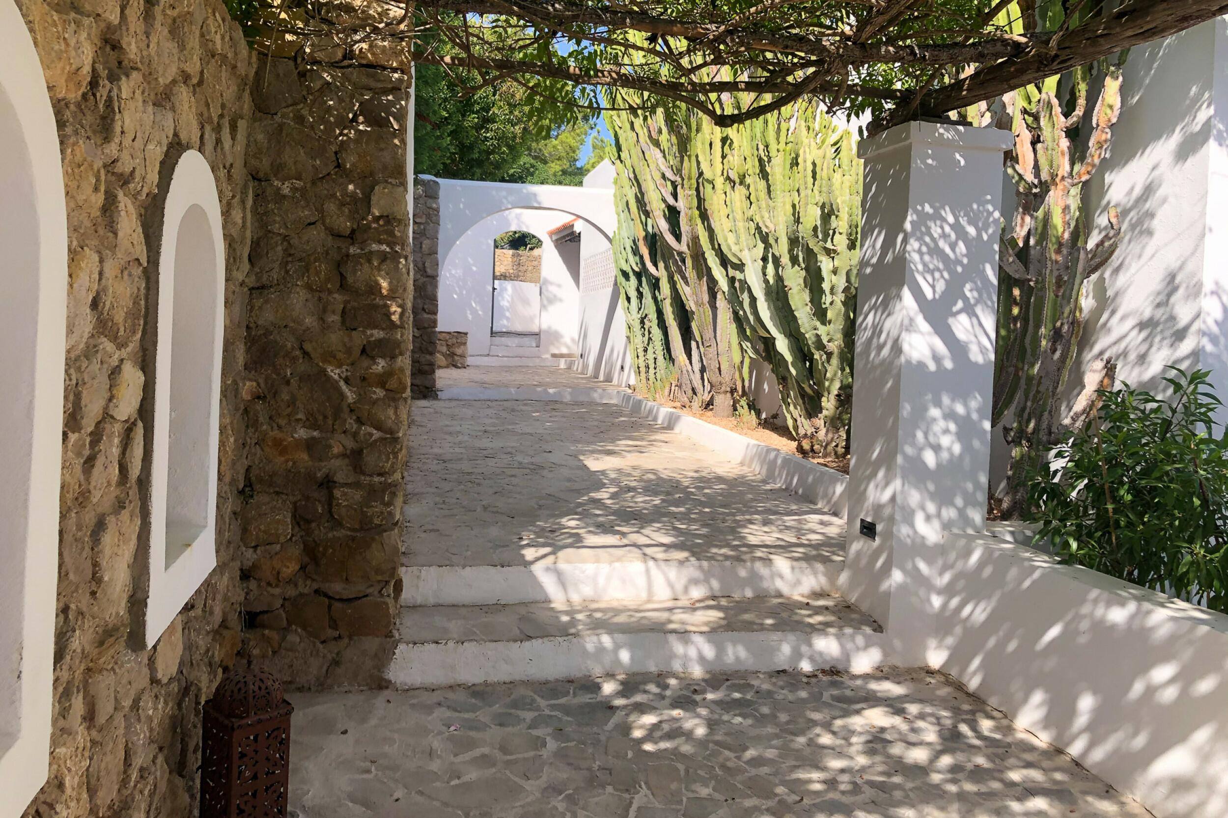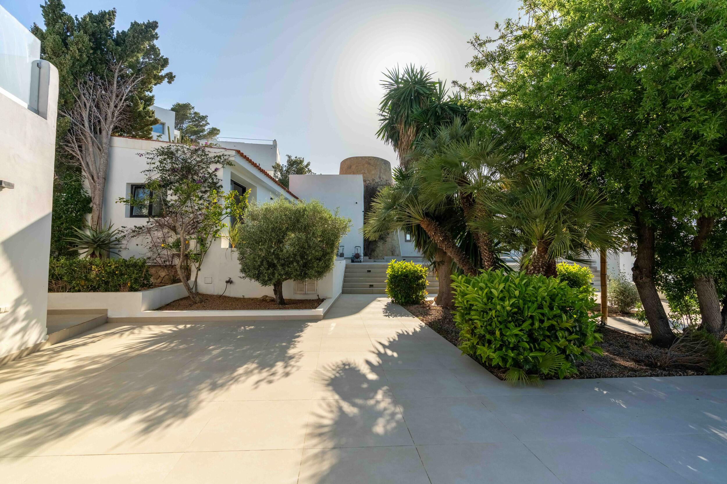Nur wenige Schritte von Cala Molí entfernt, einem der ruhigsten und natürlichsten Strände der Insel, genießt diese Villa eine wirklich privilegierte Lage an der begehrten Westküste Ibizas. Ihre nordwestliche Ausrichtung ermöglicht weite Ausblicke auf das Meer und spektakuläre Sonnenuntergänge, die jeden Abend den Horizont färben. Obwohl sie in eine ruhige Umgebung eingebettet ist, ist die Immobilie perfekt mit ausgewählten Restaurants, charmanten Buchten und wichtigen Dienstleistungen verbunden und bietet so eine perfekte Balance zwischen Privatsphäre und Nähe.