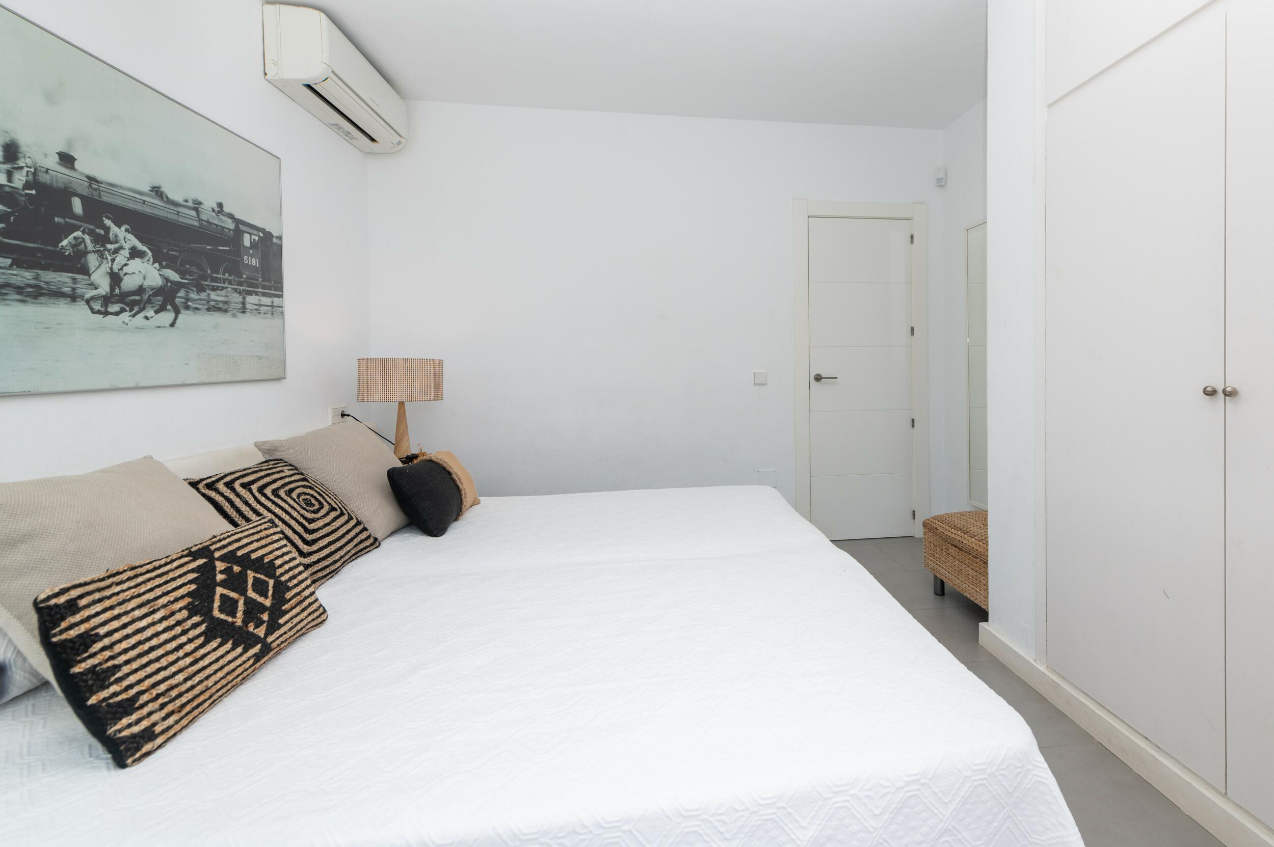 Im zweiten Stock befinden sich zwei elegante Doppelzimmer, beide mit eigenem Bad, während das dritte Stockwerk der luxuriösen Hauptsuite gewidmet ist, die ein privates Badezimmer und Zugang zu einer Terrasse mit freiem Meerblick und Sonnenuntergang bietet. Von dieser Terrasse führt eine Treppe zum Solarium, einem exklusiven Chill-Out-Bereich, von dem aus man den Horizont zwischen Himmel und Meer betrachten kann. Alle Schlafzimmer verfügen über Einbauschränke, die Funktionalität und Diskretion in das Innendesign bringen.