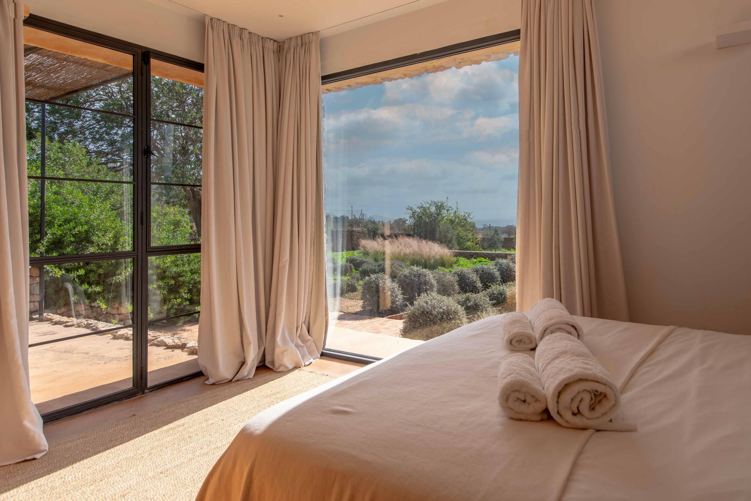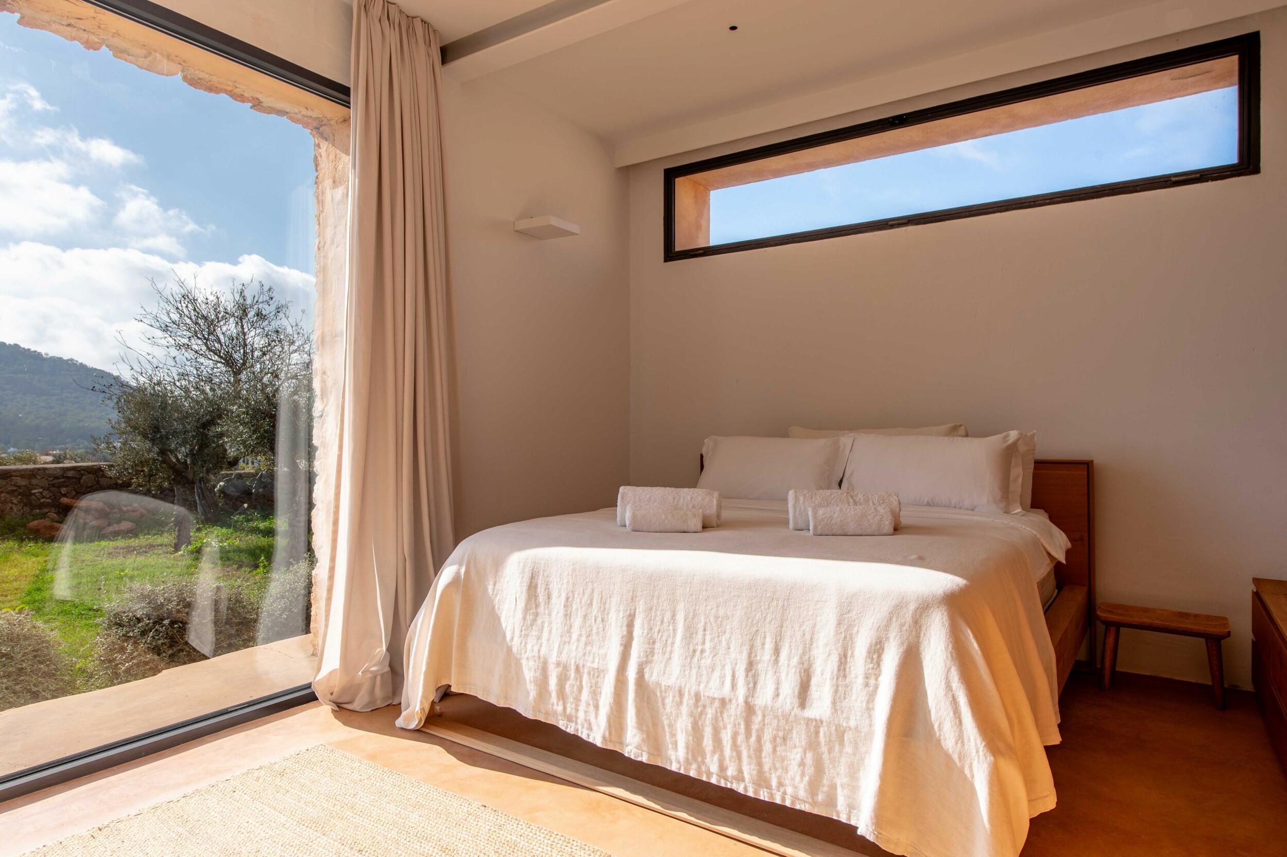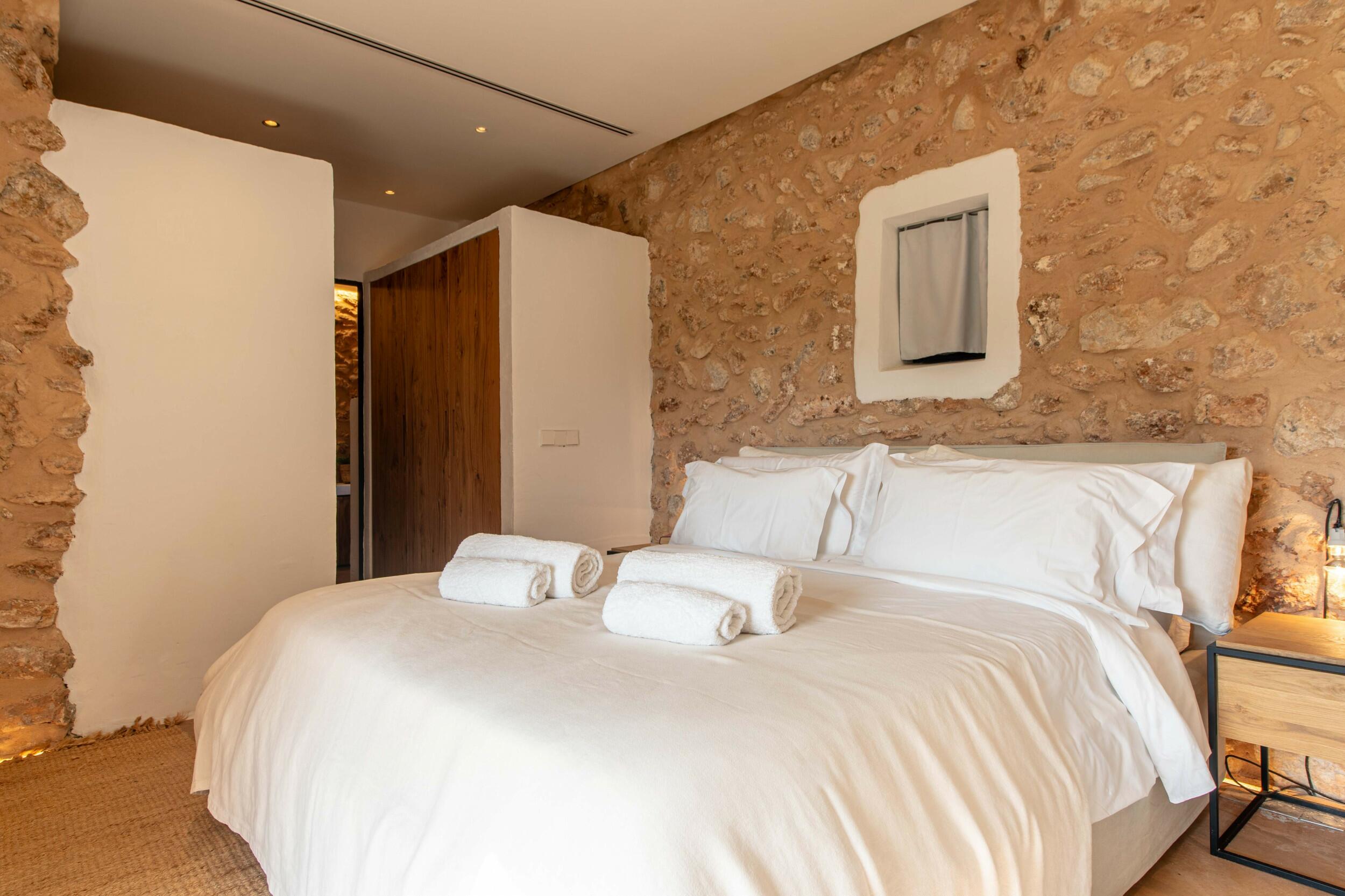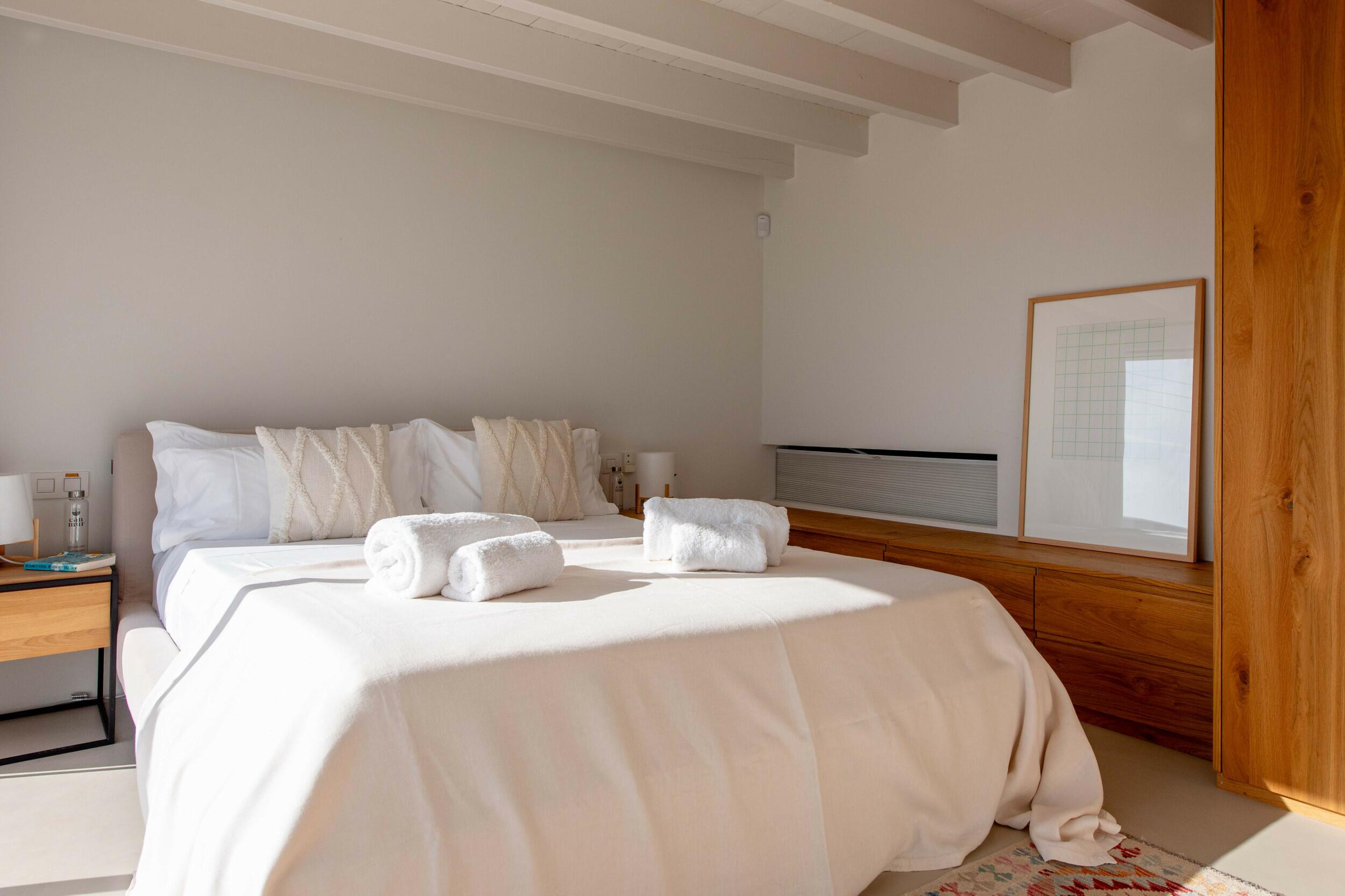 Nahegelegene Highlights sind Cala d’Hort, bekannt für seine magnetischen Ausblicke auf Es Vedrà bei Sonnenuntergang; die zum UNESCO-Weltkulturerbe gehörende Dalt Vila, ein Labyrinth aus historischem Charme und Panoramaterrassen; und die lebendige Marina-Atmosphäre in der Nähe von Ibiza-Stadt.