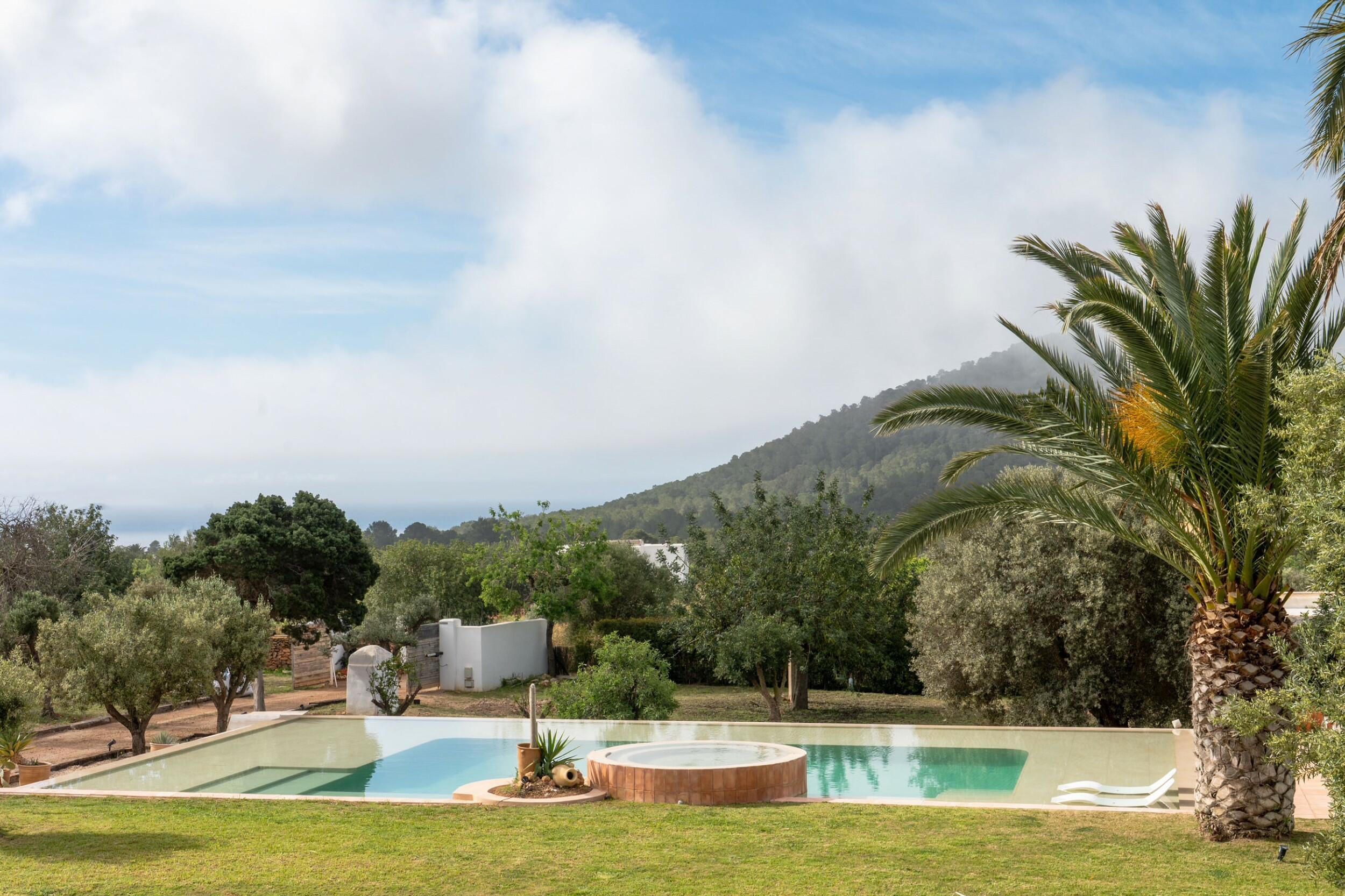 • Überlauf-Swimmingpool mit zentralem Jacuzzi und Fernblick auf das Meer bis nach Formentera