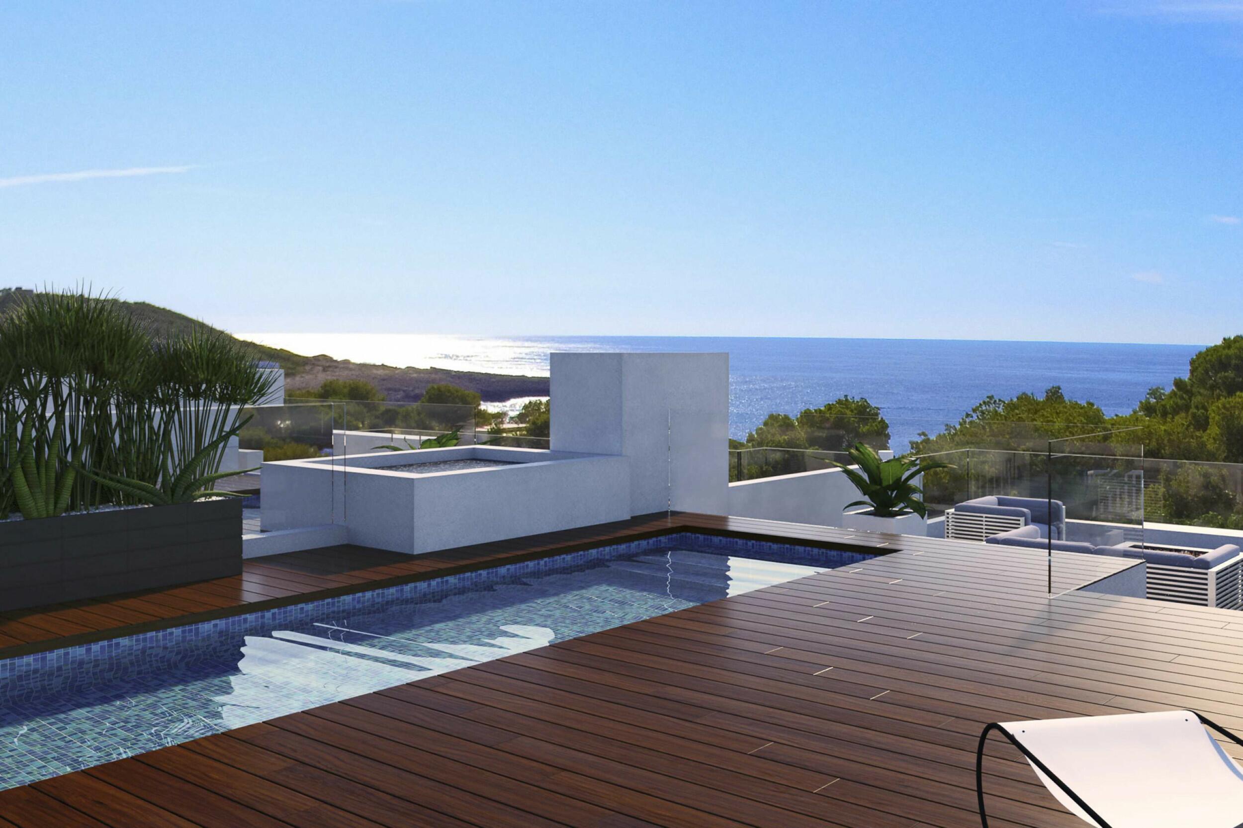 Immobilien zum Verkauf in Portinatx, wie Villa Marlin Portinatx bietet ein modernes Haus, nur 5 Minuten zu Fuß vom Strand entfernt. Die 1.114 m2 große Immobilie ist neu gebaut und von avantgardistischer Architektur und Design. Dieses Haus ist nach Osten zum Meer hin ausgerichtet und bietet einen 180-Grad-Blick und wunderschöne Sonnenaufgänge. Der Bau wurde vor kurzem abgeschlossen und umfasst auch einen schönen Infinity-Pool von 66 m2.