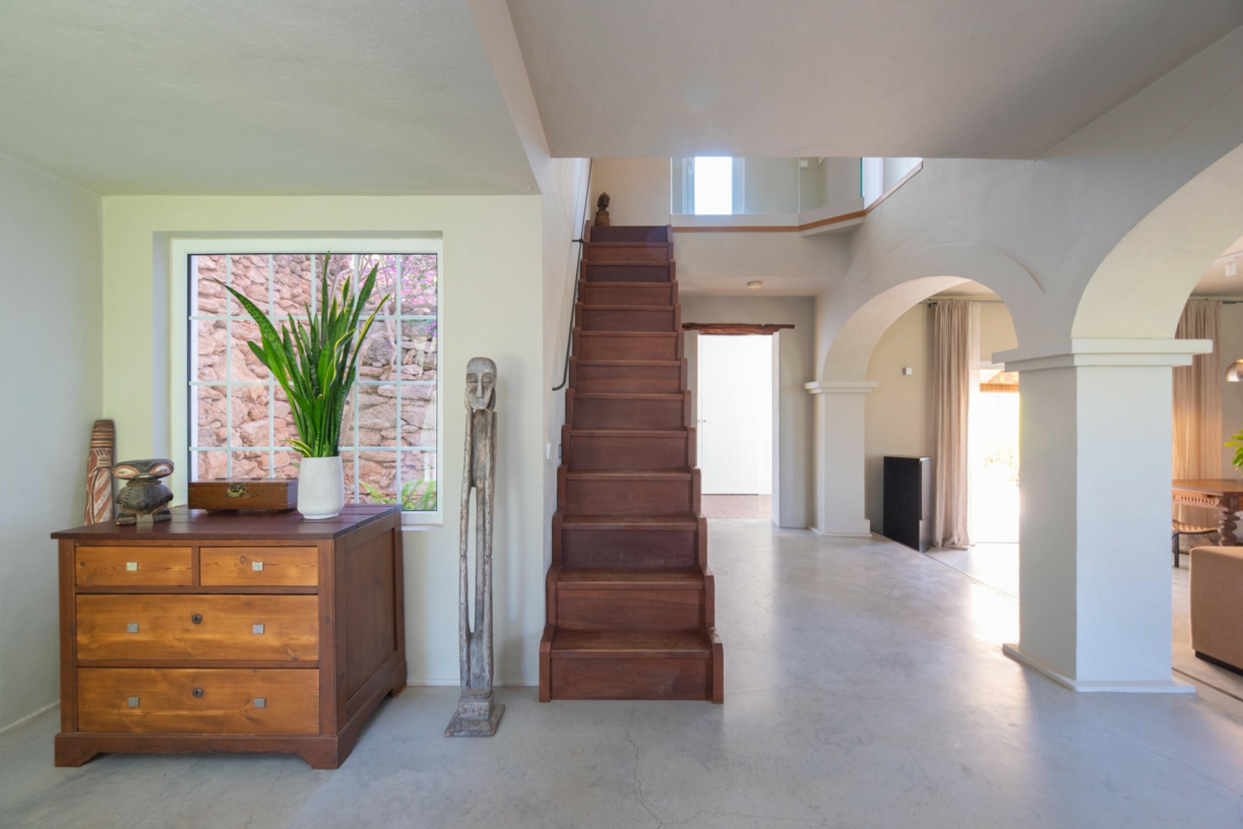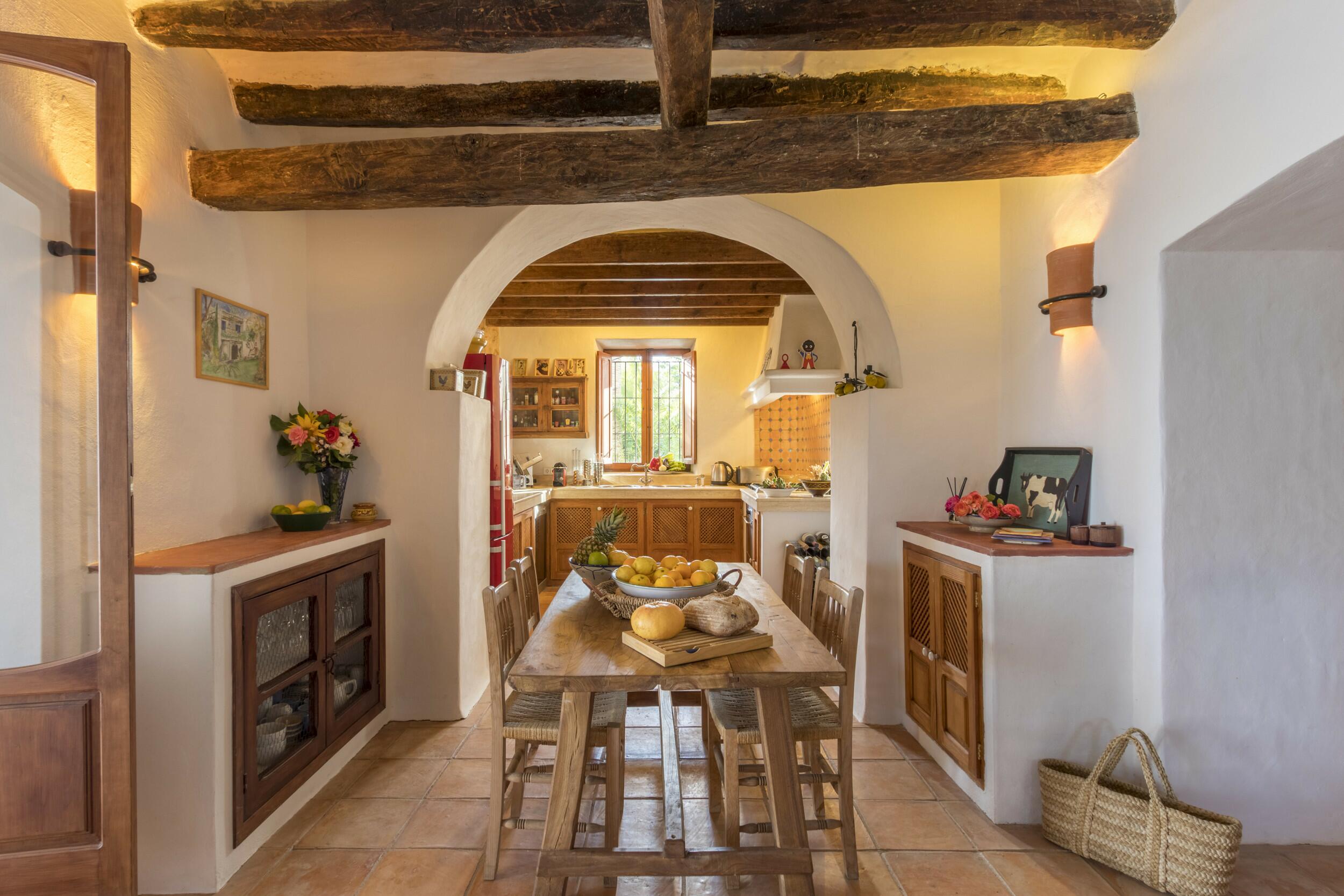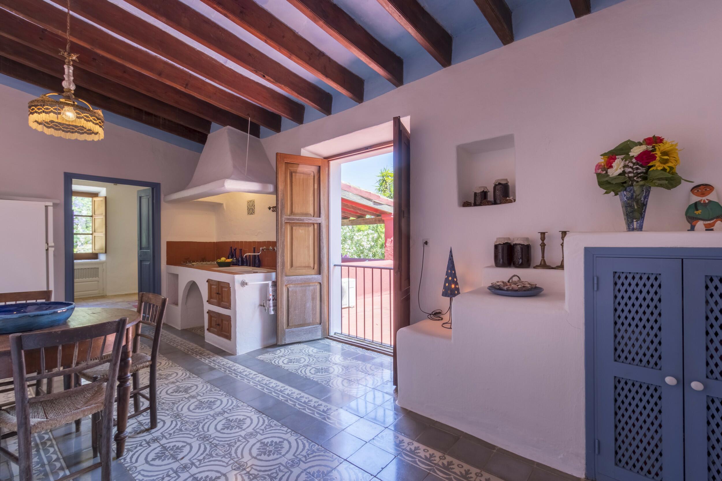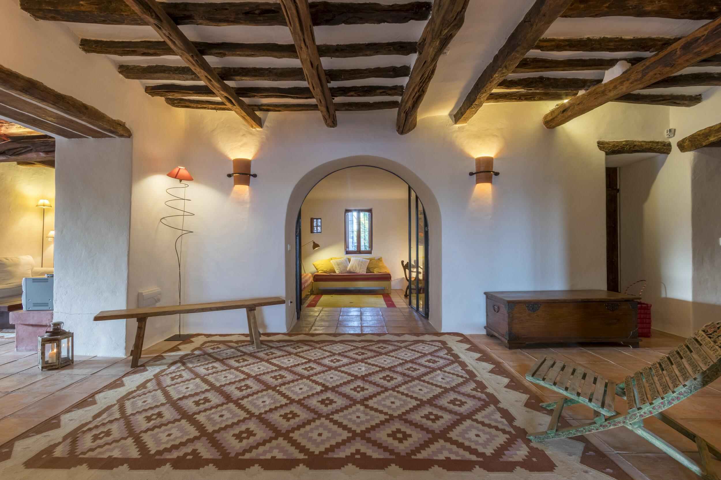 Dieses ganz besondere Anwesen, das eine Gesamtfläche von 32.000 m2 und ein Haus von 251 m2 hat eine schöne und imposante weiße Fassade im Bauernstil. Traditionell wurden diese Häuser von den Bauern und Viehzüchtern Ibizas gebaut, um in der Nähe ihres Landes zu leben. Sie zeichnen sich durch kleine quadratische Fenster und geschwungene Linien an den Enden der Dächer und Wände aus.