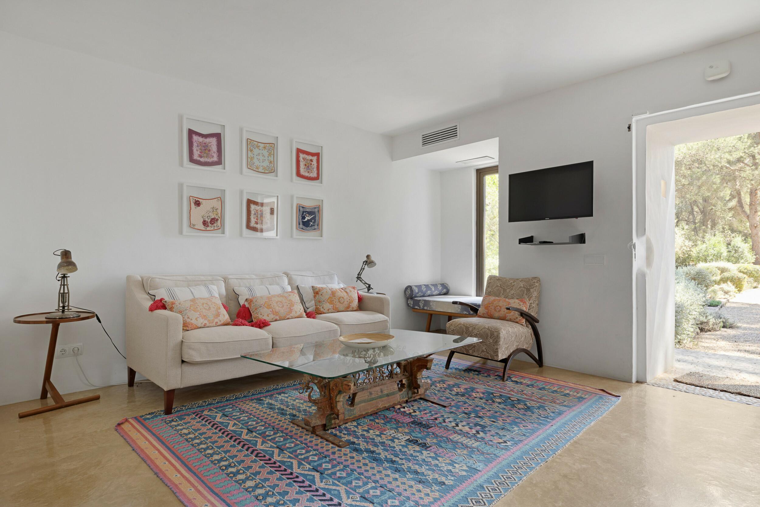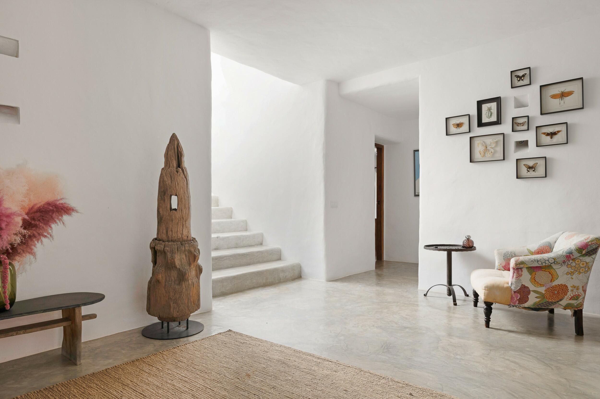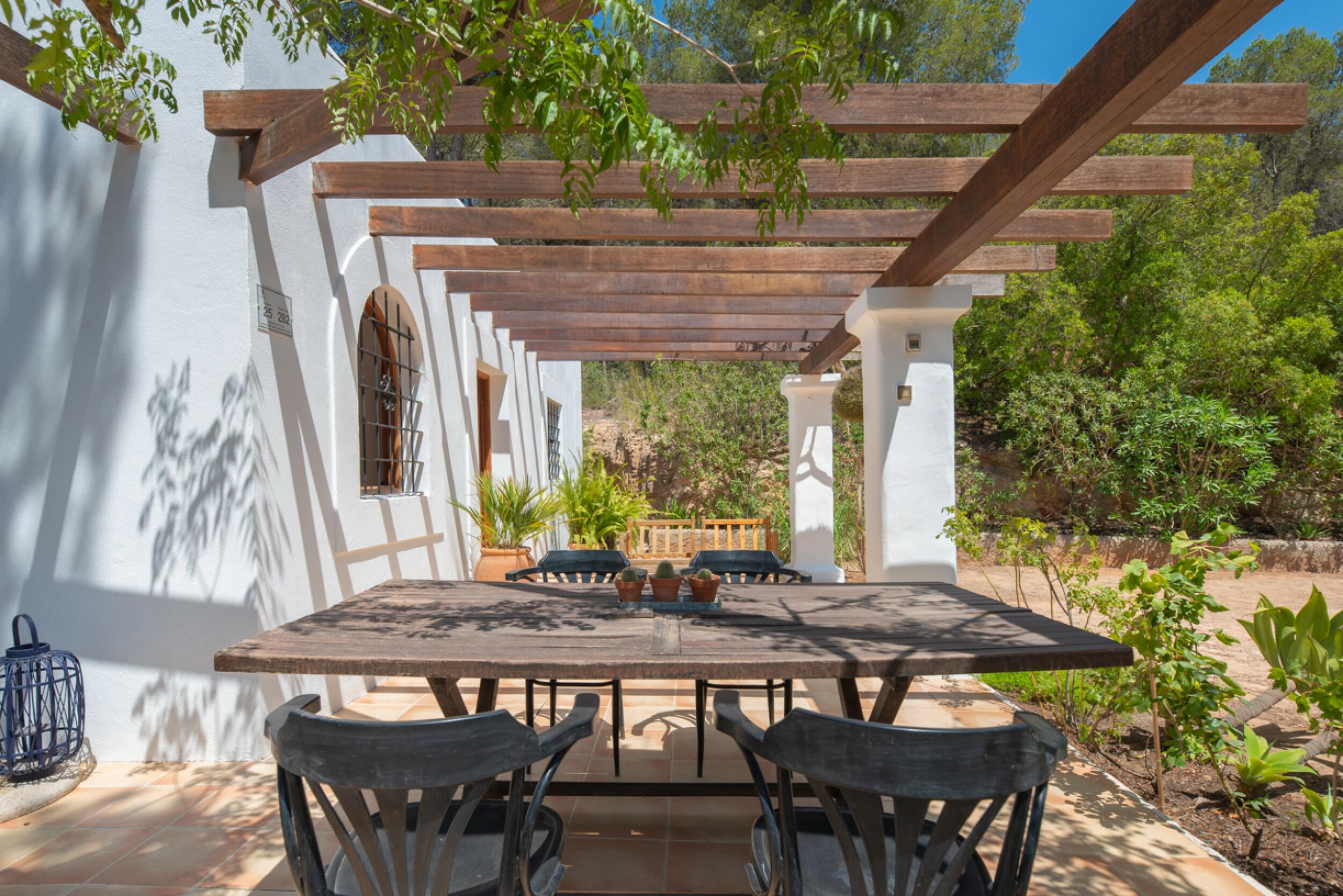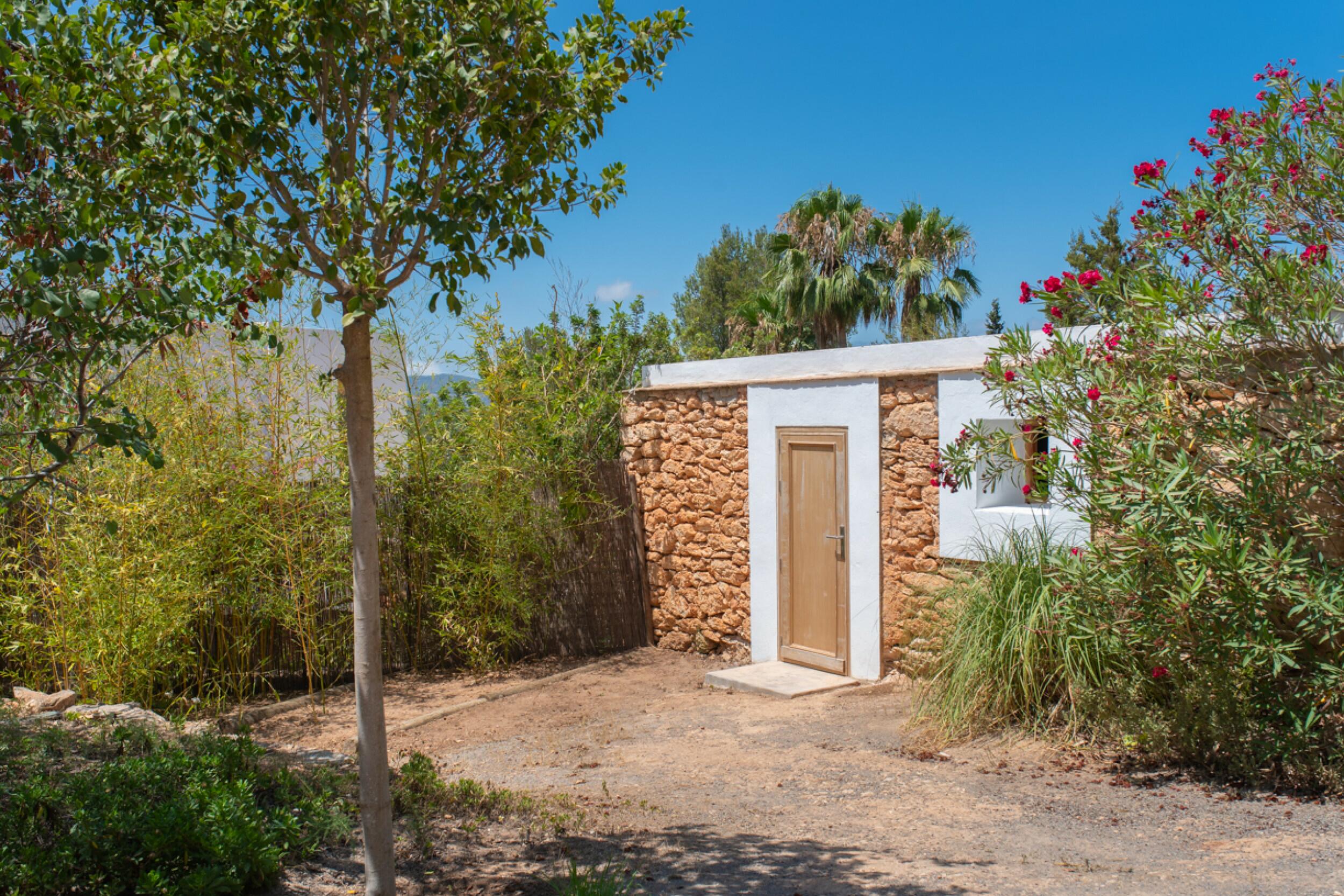 Dieses ganz besondere Anwesen, das eine Gesamtfläche von 32.000 m2 und ein Haus von 251 m2 hat eine schöne und imposante weiße Fassade im Bauernstil. Traditionell wurden diese Häuser von den Bauern und Viehzüchtern Ibizas gebaut, um in der Nähe ihres Landes zu leben. Sie zeichnen sich durch kleine quadratische Fenster und geschwungene Linien an den Enden der Dächer und Wände aus.