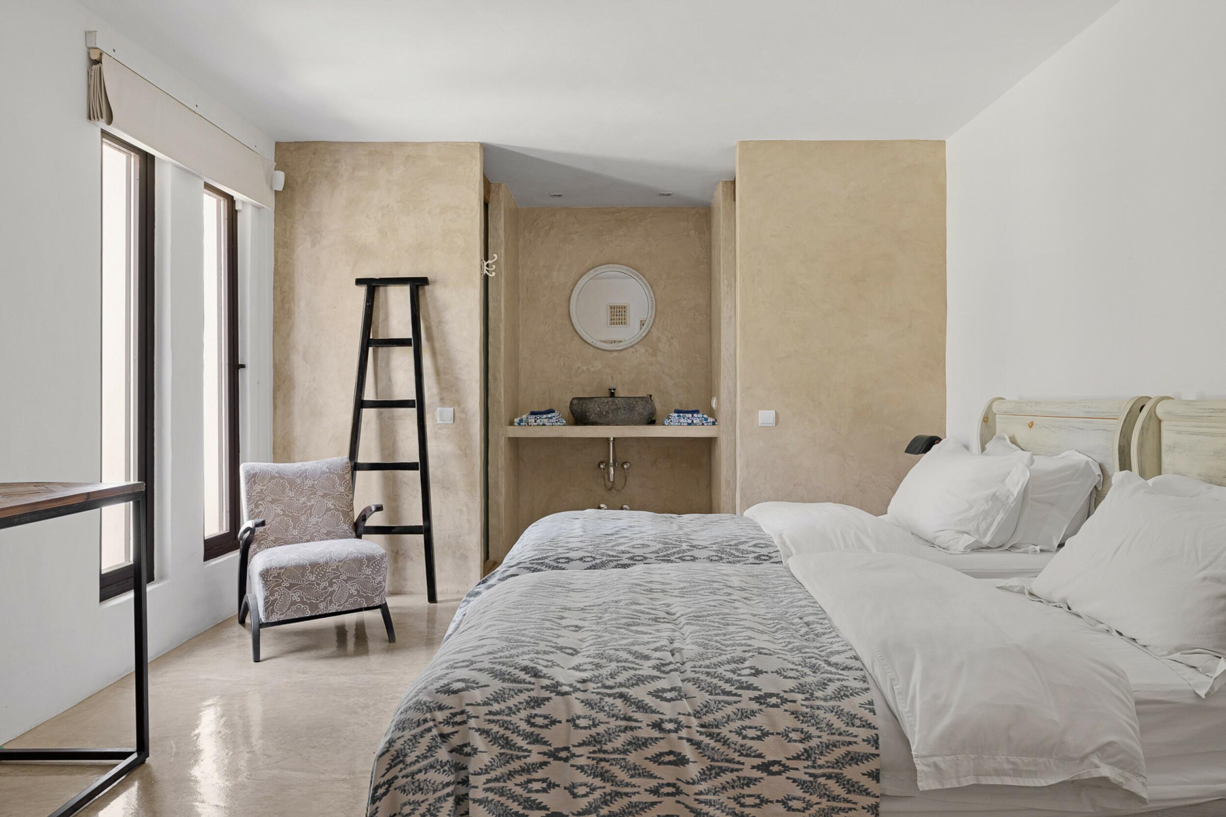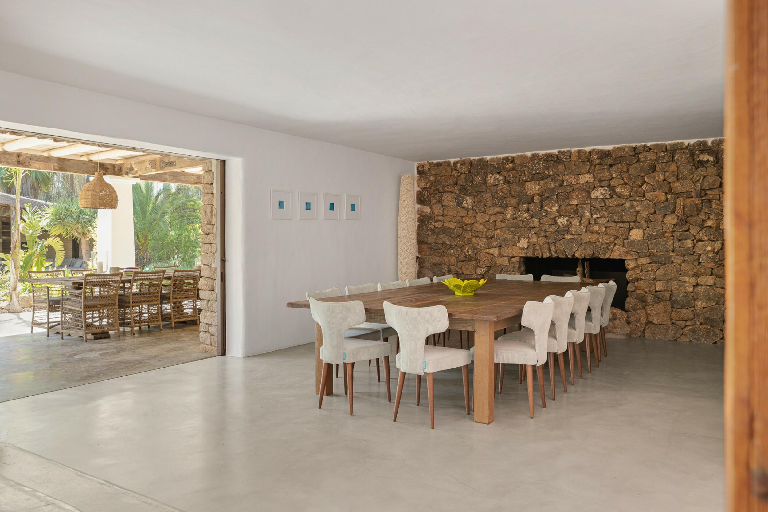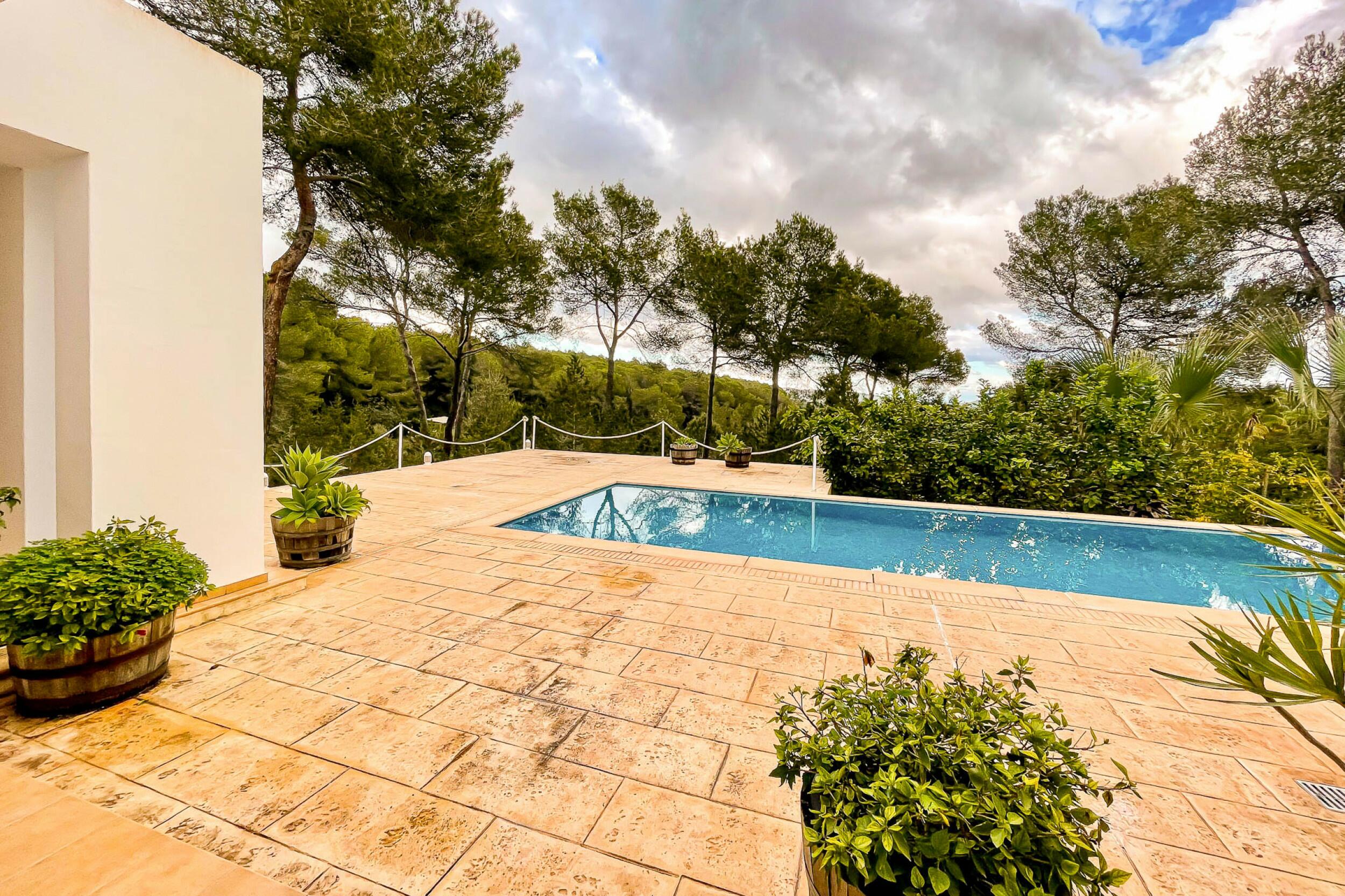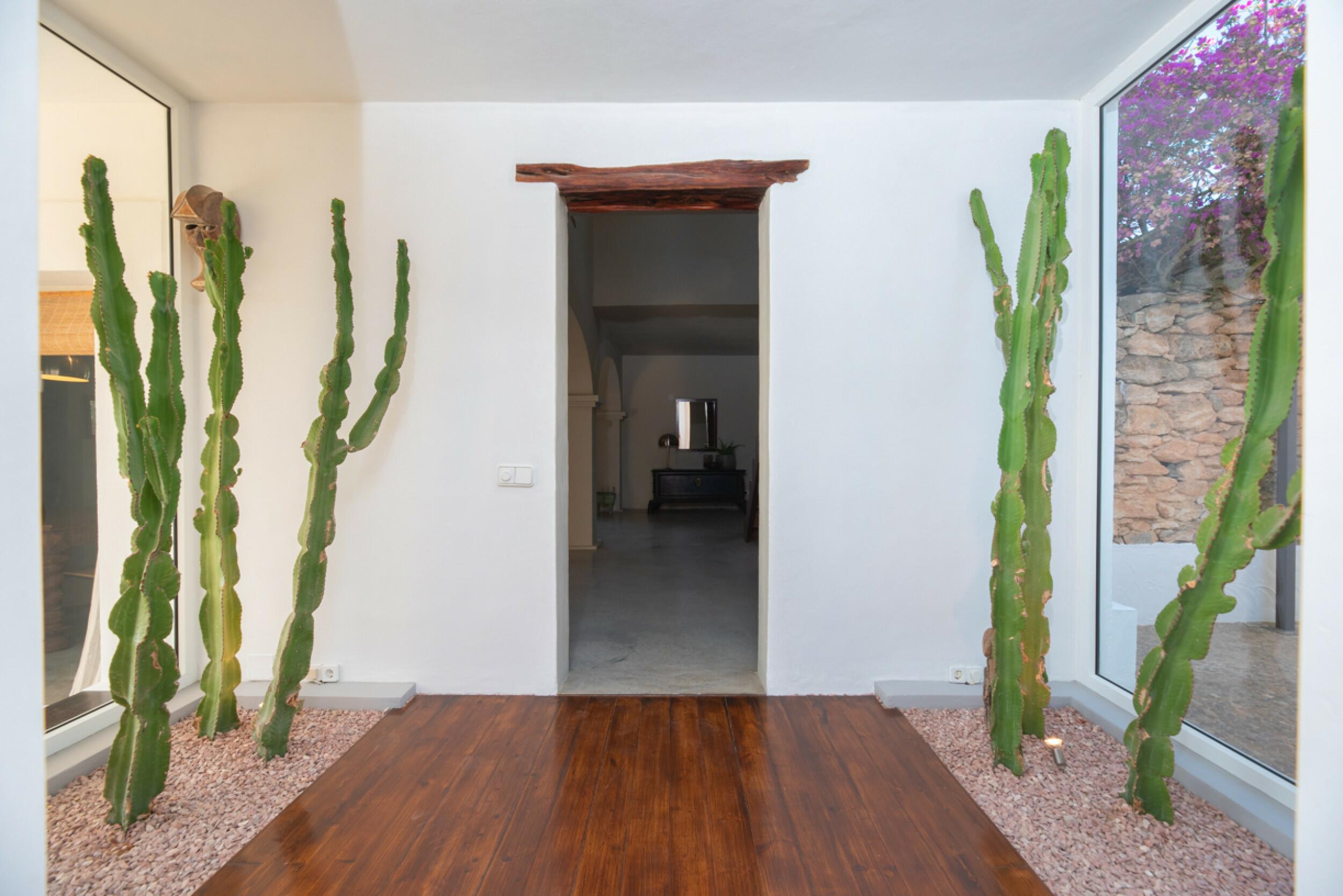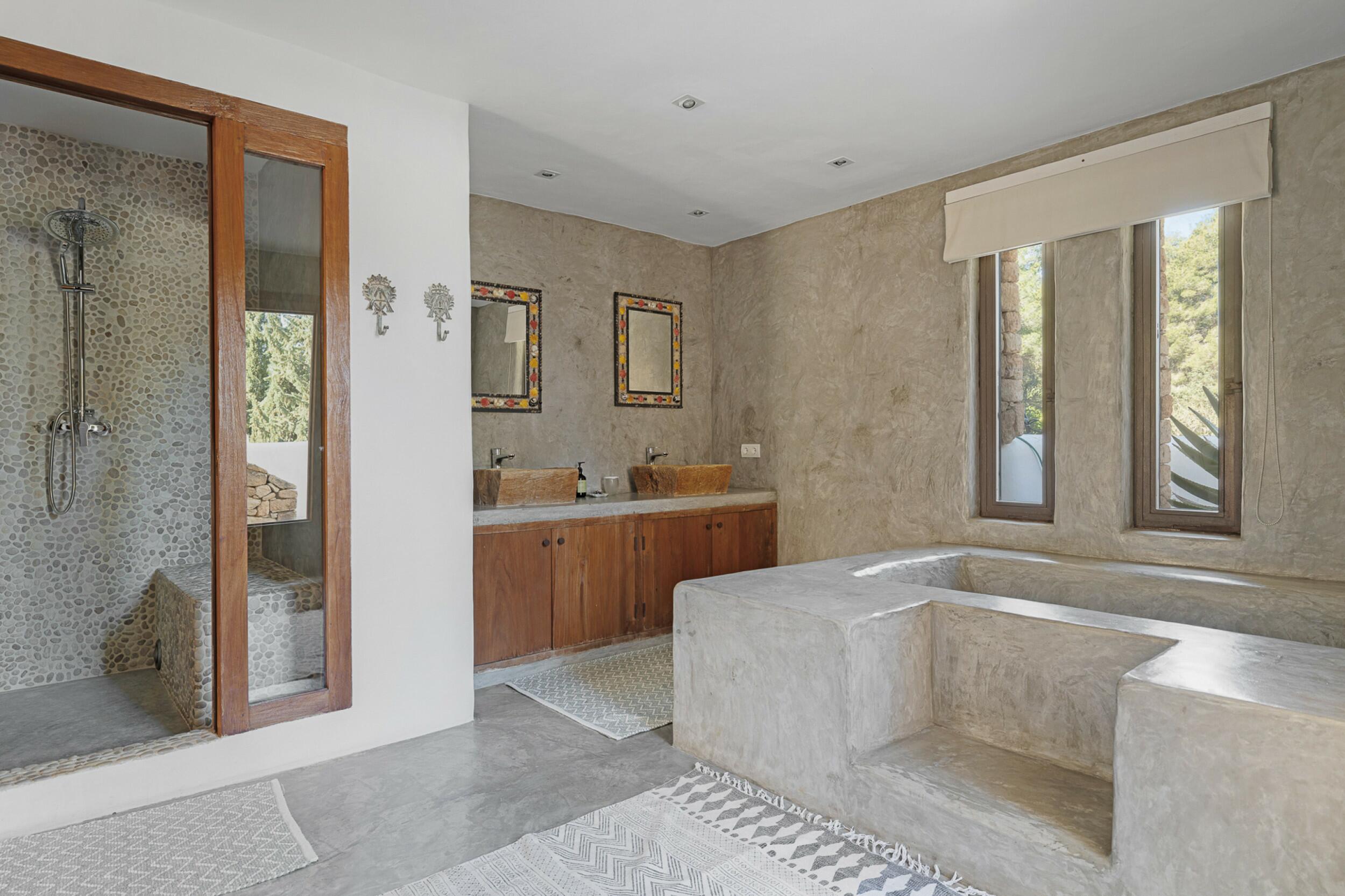 Dieses ganz besondere Anwesen, das eine Gesamtfläche von 32.000 m2 und ein Haus von 251 m2 hat eine schöne und imposante weiße Fassade im Bauernstil. Traditionell wurden diese Häuser von den Bauern und Viehzüchtern Ibizas gebaut, um in der Nähe ihres Landes zu leben. Sie zeichnen sich durch kleine quadratische Fenster und geschwungene Linien an den Enden der Dächer und Wände aus.