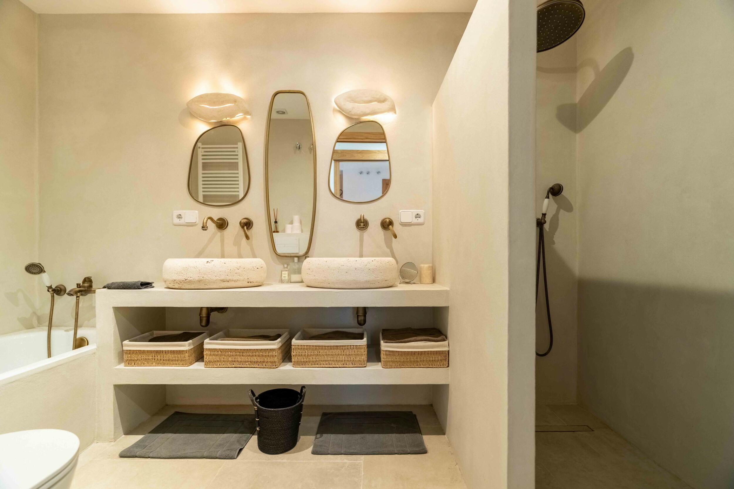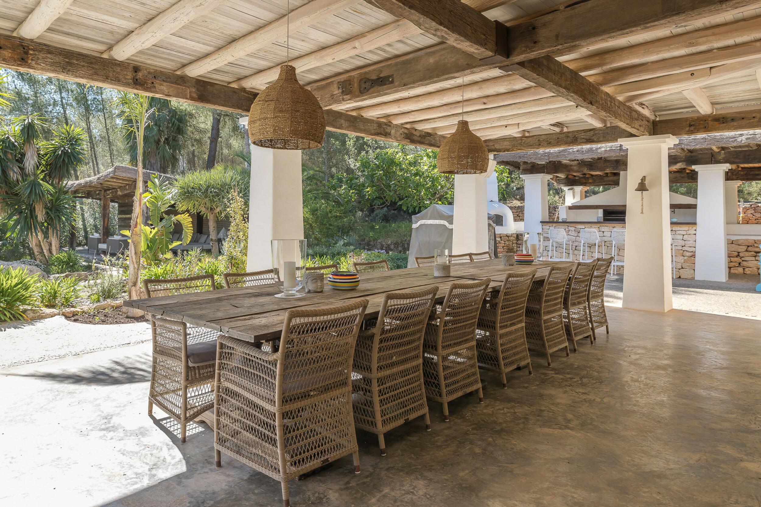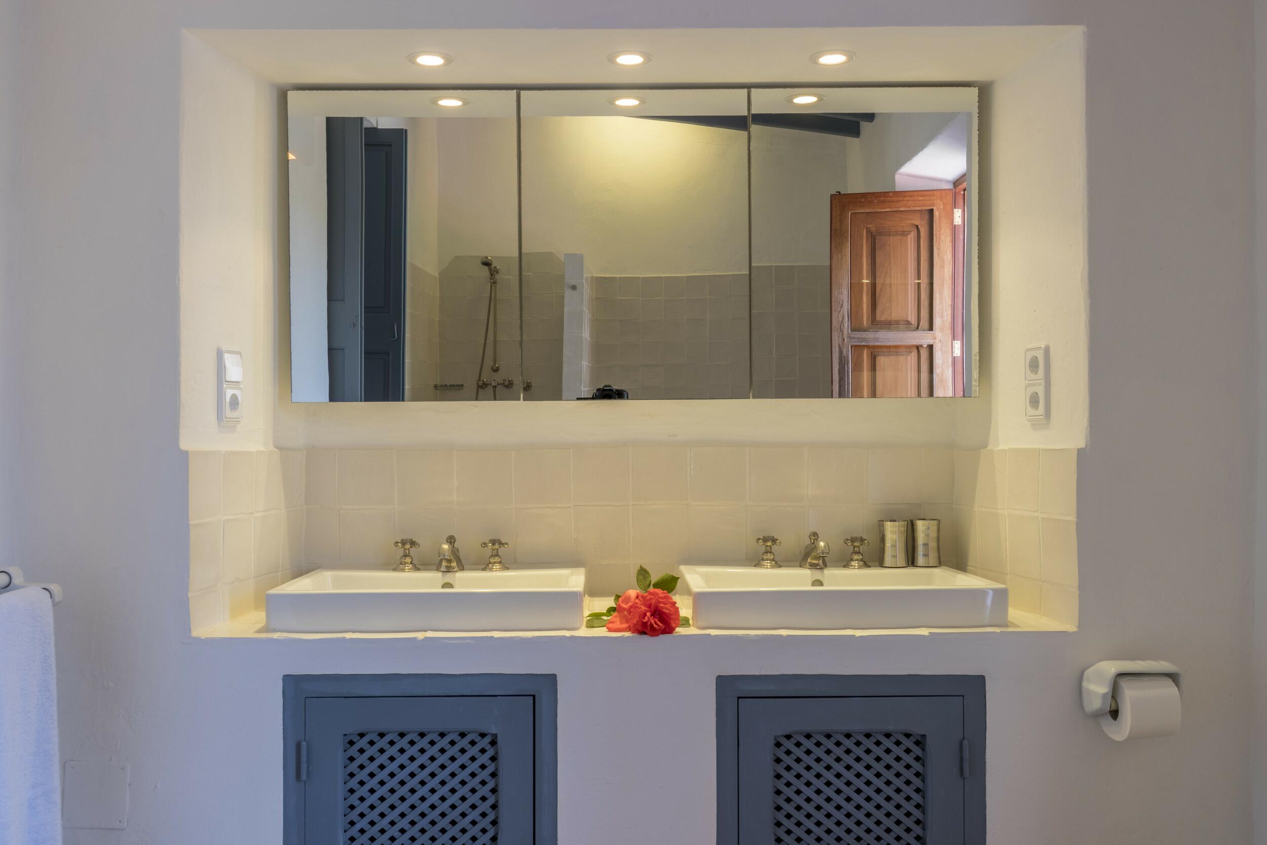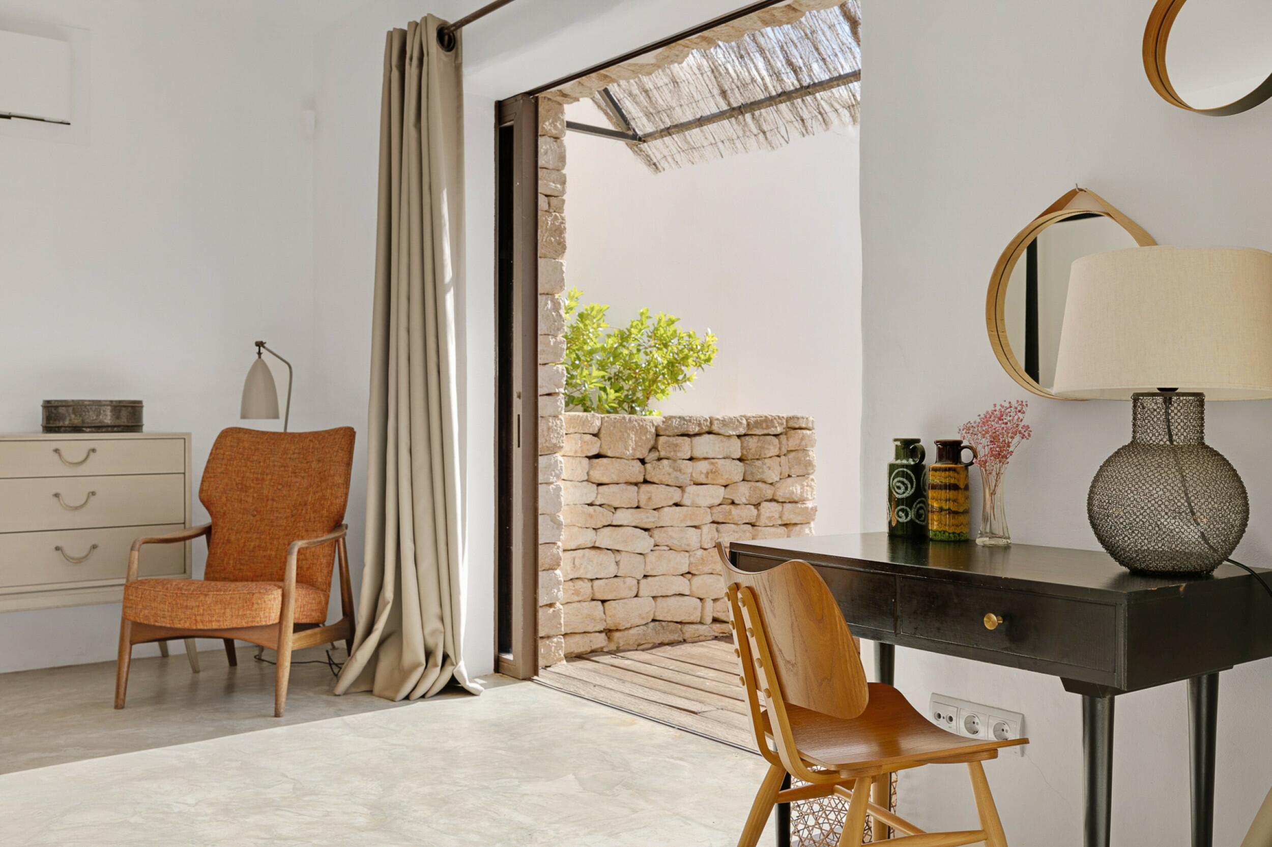 Dieses ganz besondere Anwesen, das eine Gesamtfläche von 32.000 m2 und ein Haus von 251 m2 hat eine schöne und imposante weiße Fassade im Bauernstil. Traditionell wurden diese Häuser von den Bauern und Viehzüchtern Ibizas gebaut, um in der Nähe ihres Landes zu leben. Sie zeichnen sich durch kleine quadratische Fenster und geschwungene Linien an den Enden der Dächer und Wände aus.